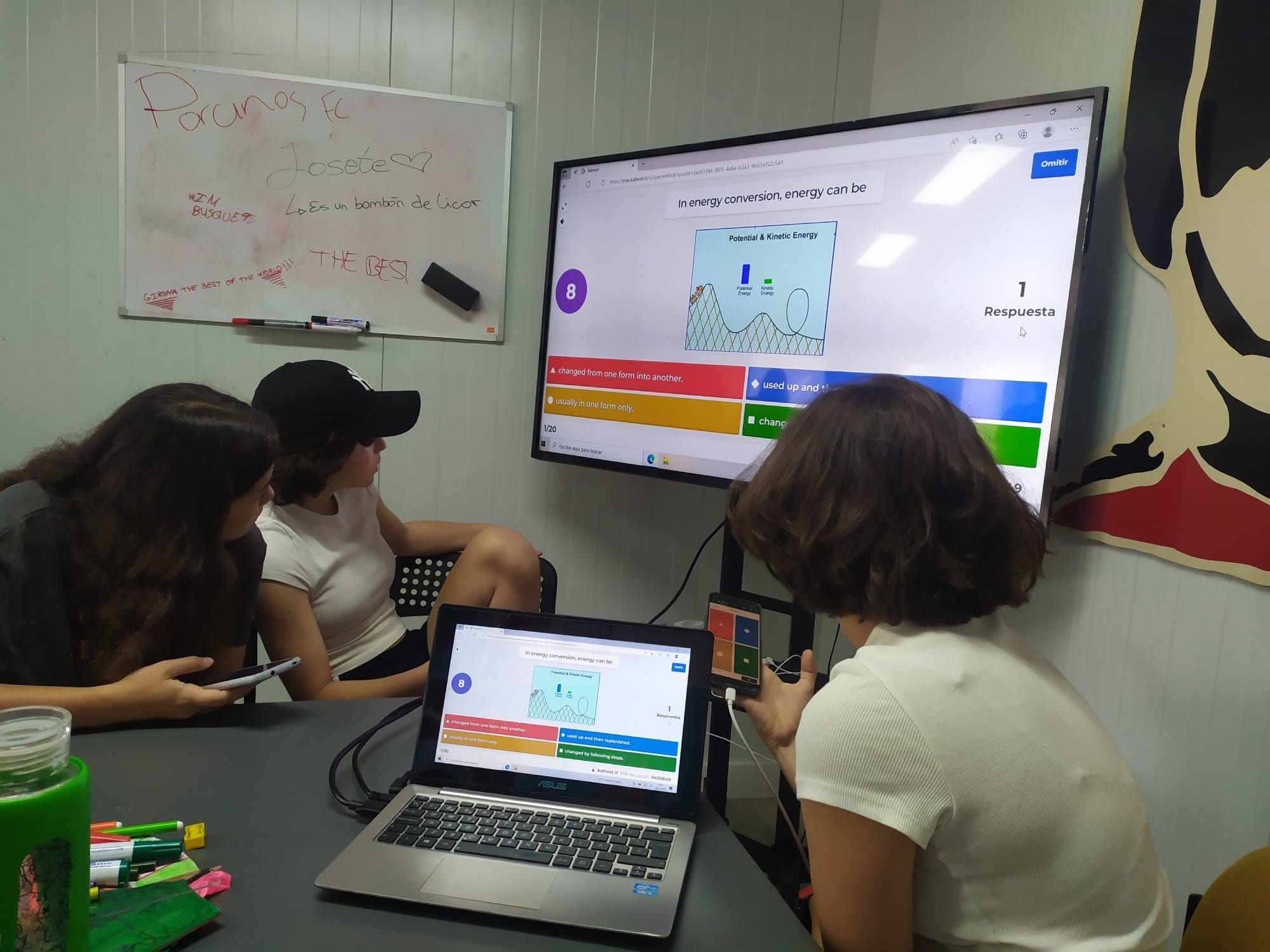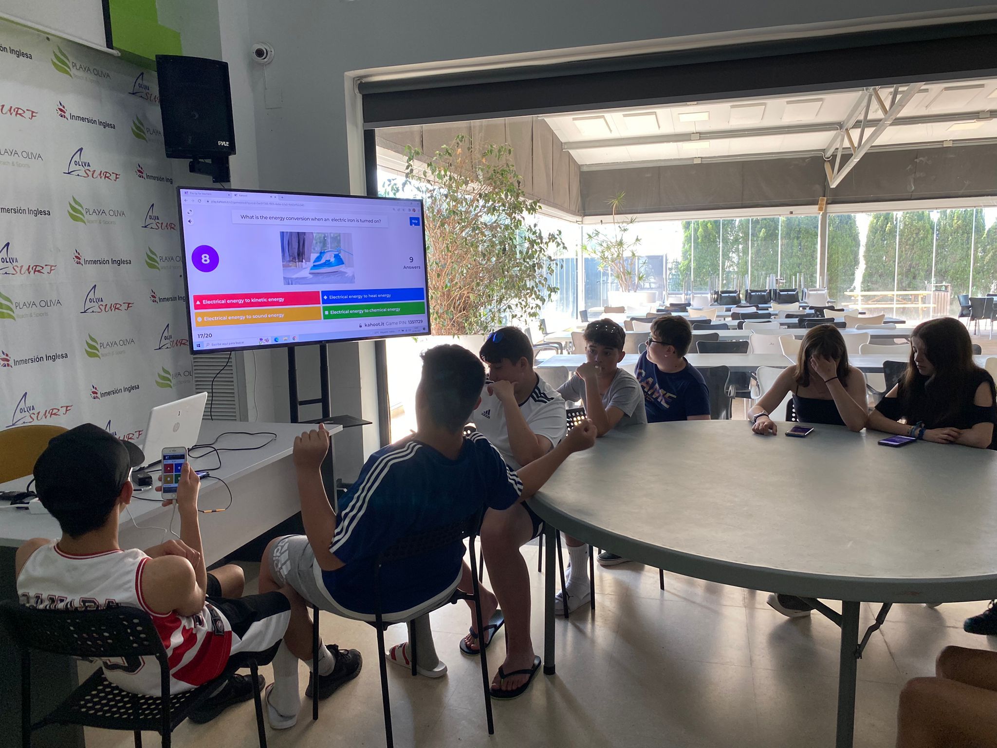 Llegó el último día con temática la energía. Durante la primera hora y media de la mañana los alumnos pasan a las aulas en sus grupos y participan en un Kahoot de la energía. Una vez se familiarizan con el funcionamiento del kahoot, cada grupo tiene que pensar en cinco preguntas y respuestas (3 incorrectas y una correcta) sobre el tema de la energía para crear entre todos un Kahoot de 20 preguntas. Esta actividad es genial porque los alumnos/as ponen muchos conocimientos y habilidades en práctica.