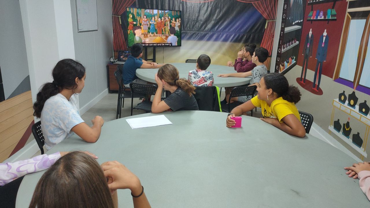 Por último, los niños disfrutaron de una película en inglés (con subtítulos también en inglés) después de la cena para relajarse un poco después de un intenso día de actividades. Posteriormente continuamos con la rutina de la noche para ir a la cama a descansar.