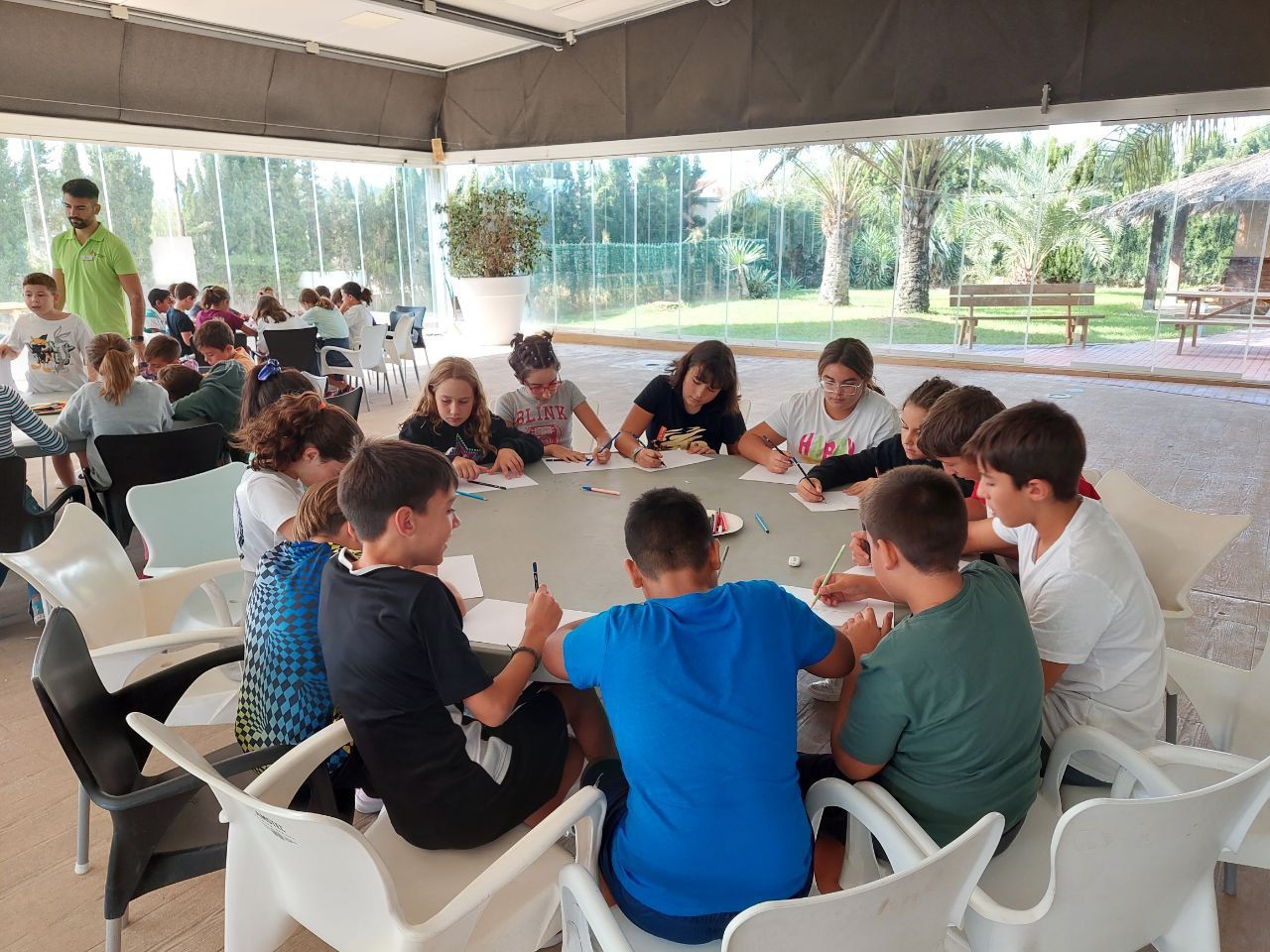 Al finalizar las actividades la aire libre, los niños han tenido la oportunidad de descansar mientras veían una película. Después, los alumnos disfrutaron del tiempo libre, subieron a sus habitaciones en donde, siguiendo con la rutina del día, se ducharon para luego ir a la cena.
