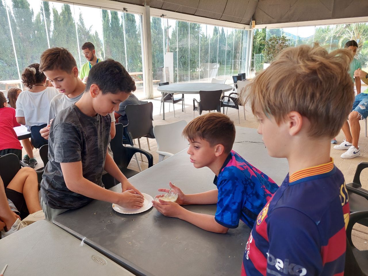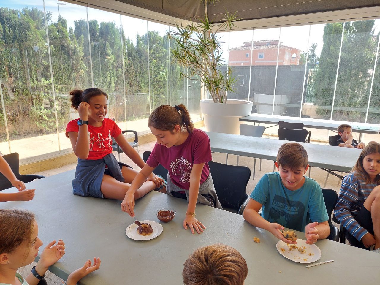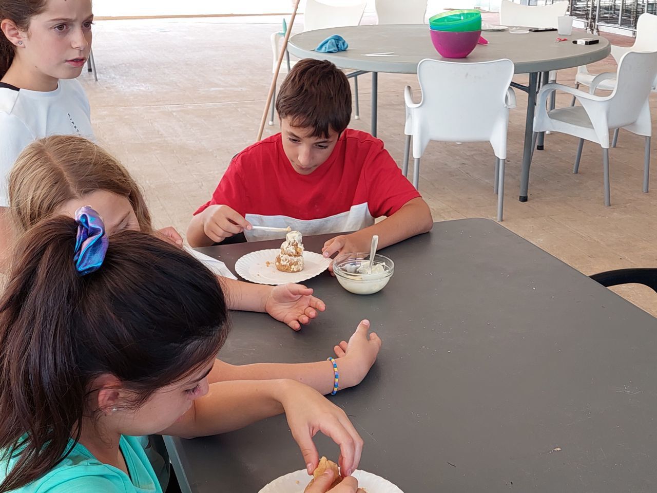En la siguiente actividad "cooking workshop" los niños se han divertido creando sus propios postres a partir de ingredientes sencillos. Partiendo de una misma base, los alumnos divididos en grupos han creado diferentes diseños que han presentado luego a sus profesores del centro, quienes han podido probar los postres y dar su opinión.