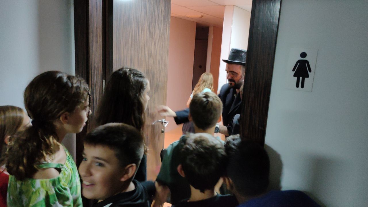 Después de la cena, los niños se sumergieron en el misterioso ambiente de "Asylum", basado en los míticos personajes de ciudad gótica. Los alumnos, en grupos, han tenido que ir buscando en todas las instalaciones del hotel hasta encontrar a todos y cada uno de los personajes de la historia para hablar con ellos y descubrir su enfermedad. ¡Ha sido toda una aventura!