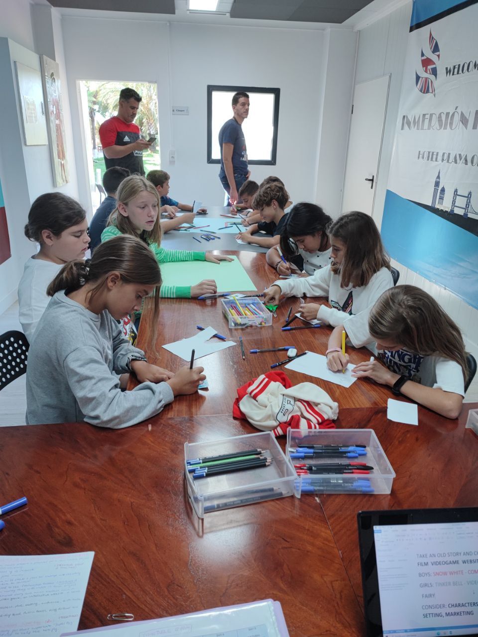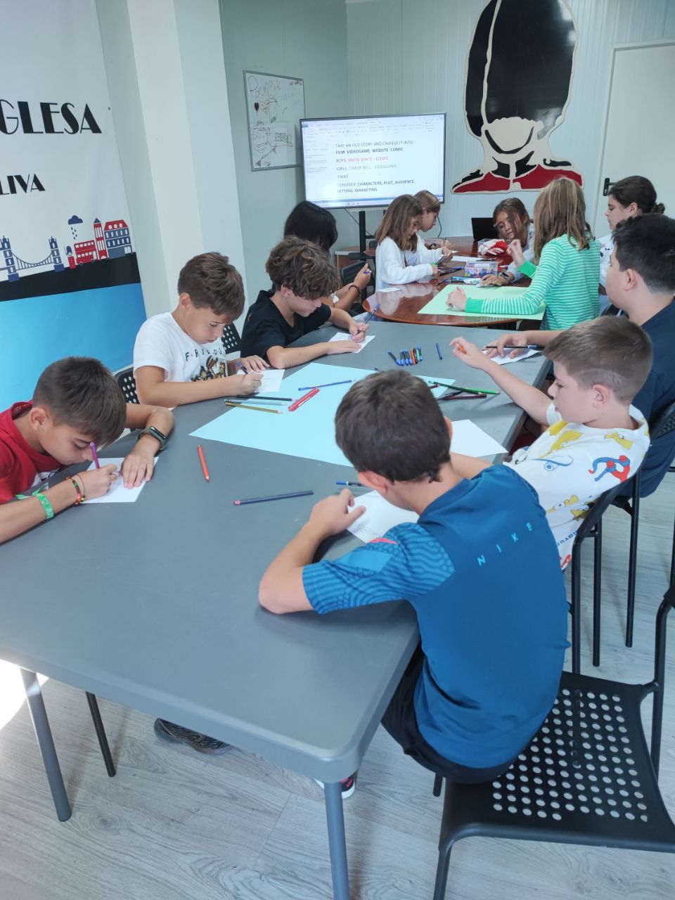En este segundo día los niños han despertado con mucha ilusión y con ganas de aprender y de divertirse. Han aprendido mucho acerca del proceso -que en inglés llamamos "remediation", en el cual, una historia, que puede ser de tradición oral o bien plasmada de manera escrita, trasciende el medio y se convierte en una película, una obra de teatro o un videojuego! Los alumnos han sido muy creativos y han creado un "Memory Map" con historias conocidas y otras creadas por ellos mismos!