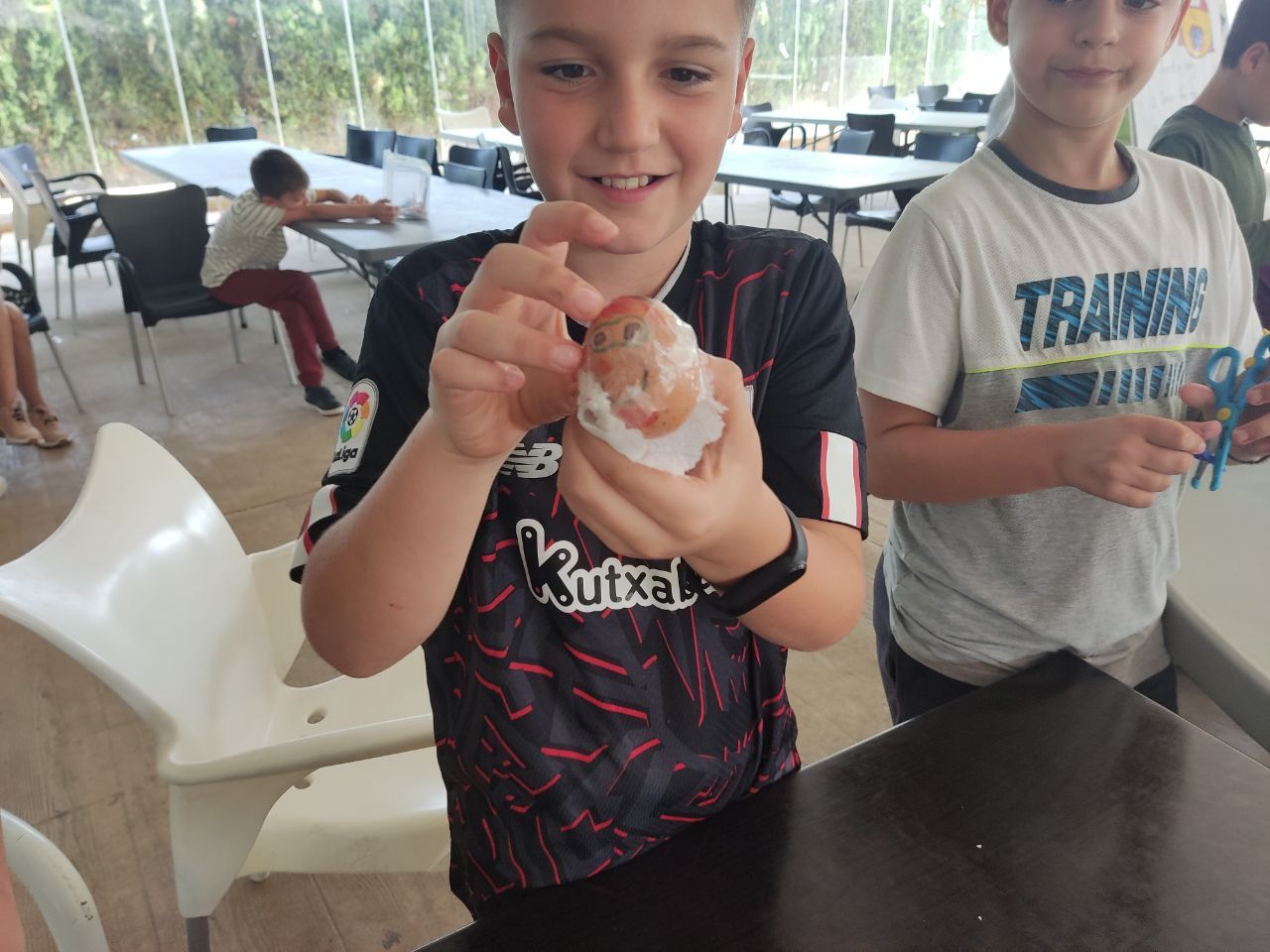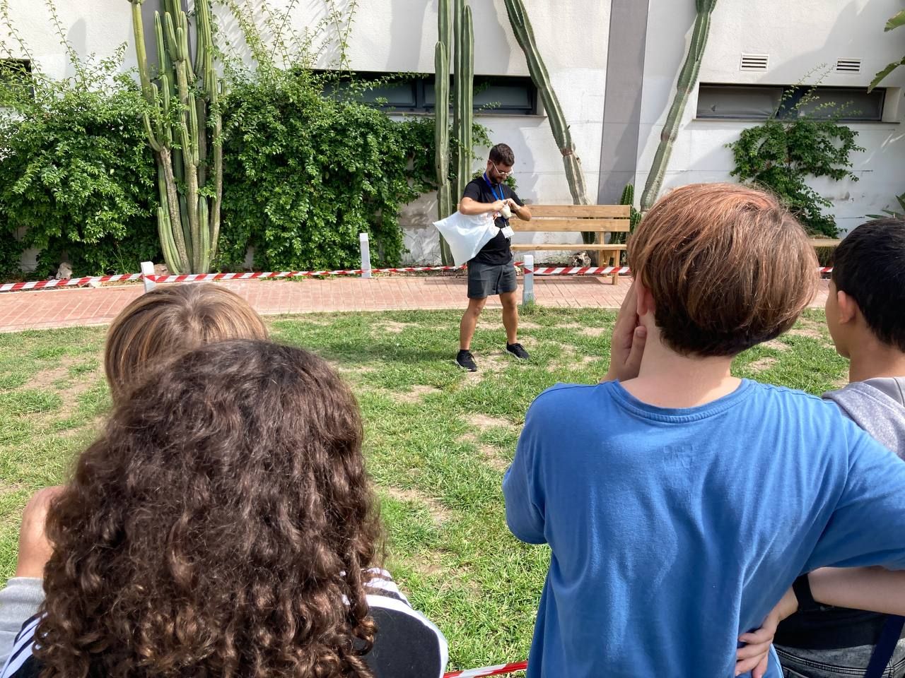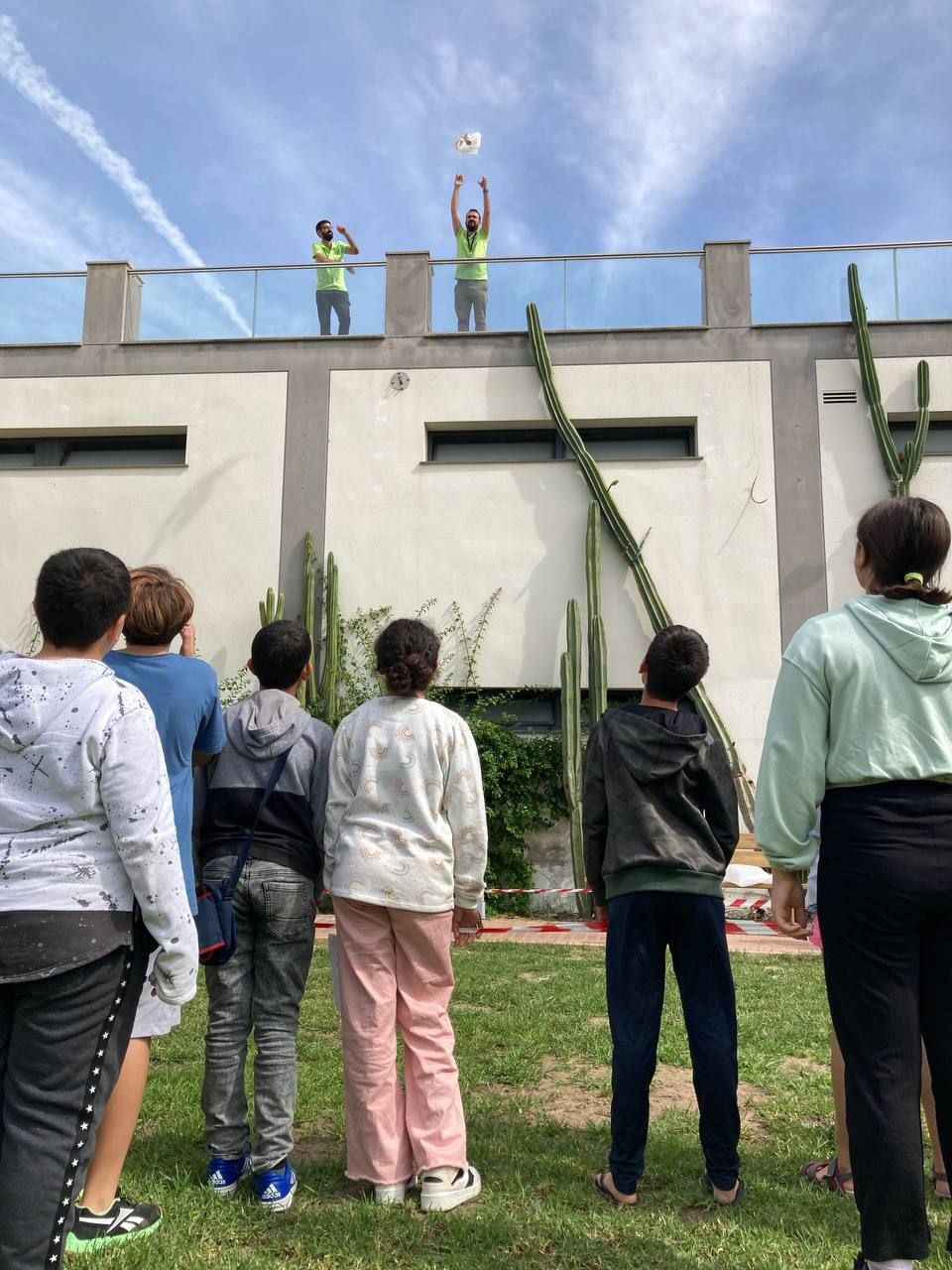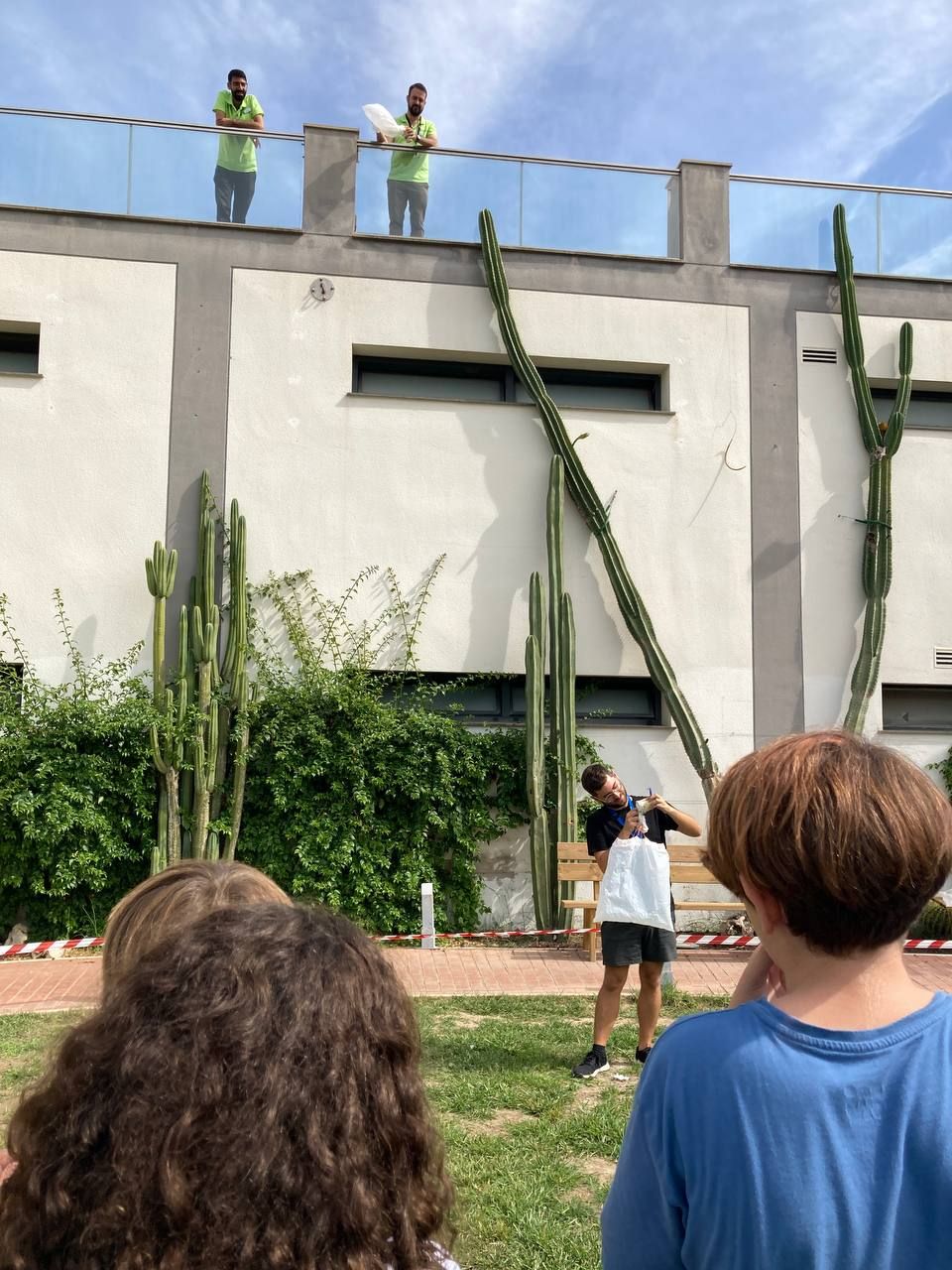 En el siguiente bloque de la mañana, todos los participantes del programa se han reunido en una de las áreas comunes del hotel para realizar la actividad "Super Egg". En ella, se entrega un huevo a cada grupo de trabajo y los alumnos deben crear un personaje a partir de este y construir un paracaídas. Lo más emocionante llega cuando deben lanzar el huevo desde el tejado.