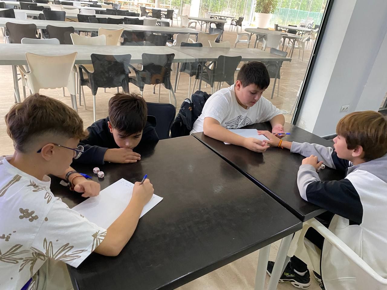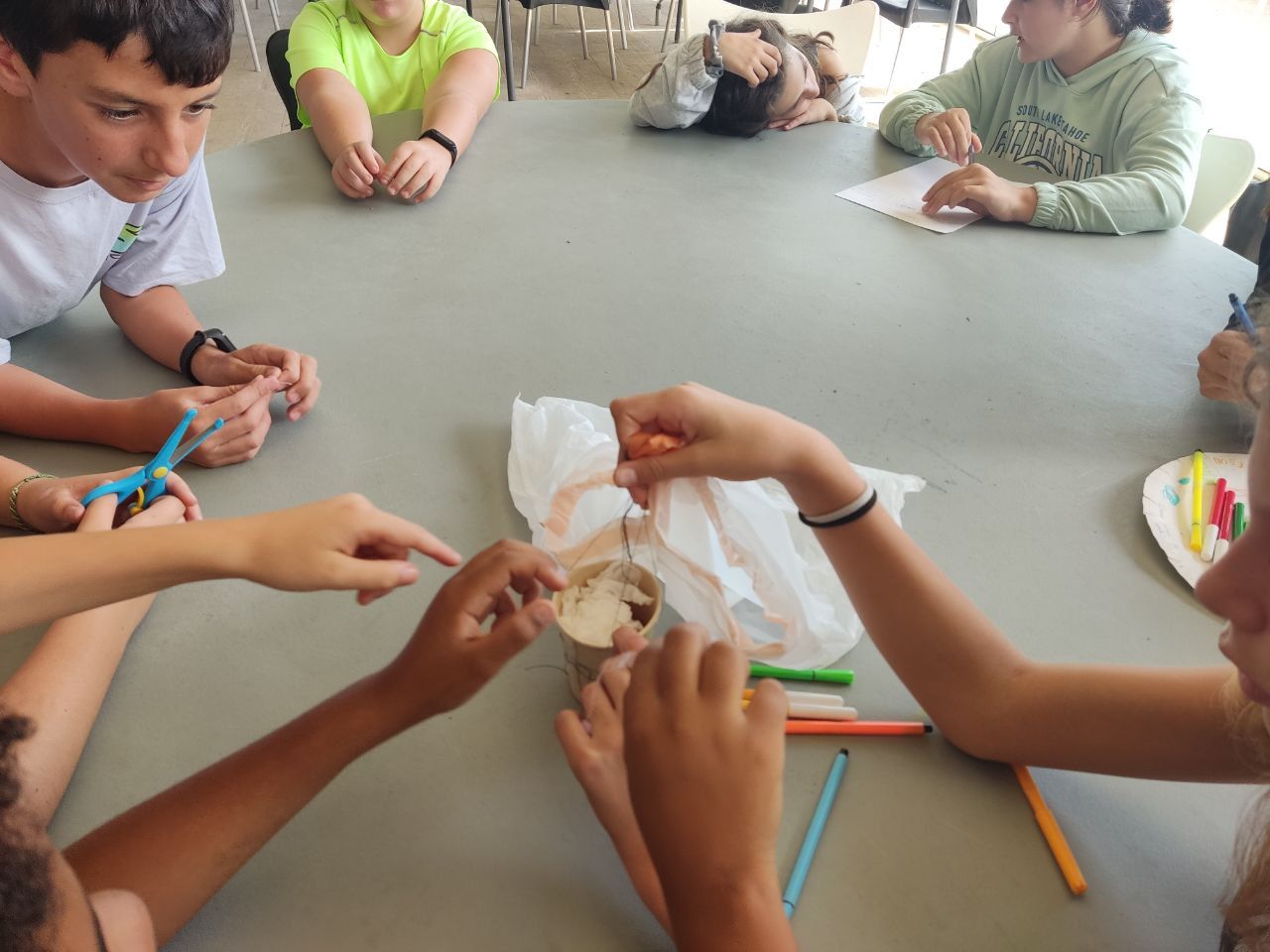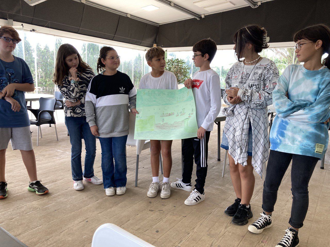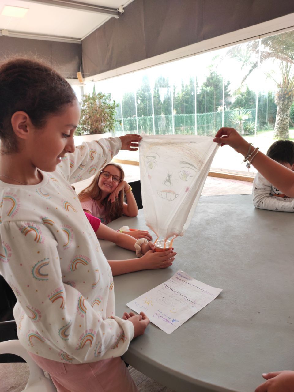 En el siguiente bloque de la mañana, todos los participantes del programa se han reunido en una de las áreas comunes del hotel para realizar la actividad "Super Egg". En ella, se entrega un huevo a cada grupo de trabajo y los alumnos deben crear un personaje a partir de este y construir un paracaídas. Lo más emocionante llega cuando deben lanzar el huevo desde el tejado.