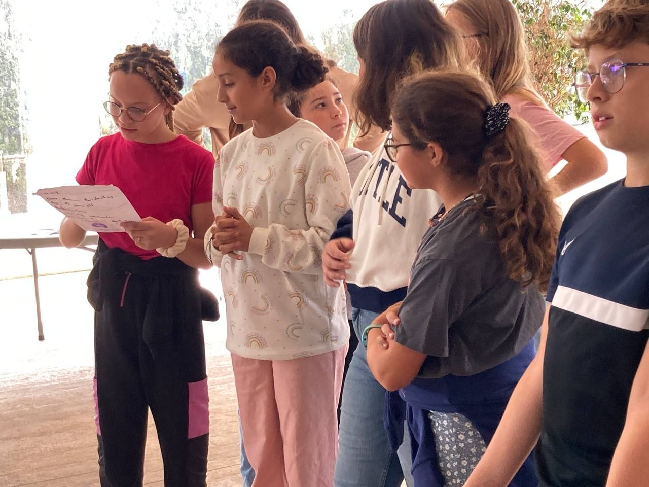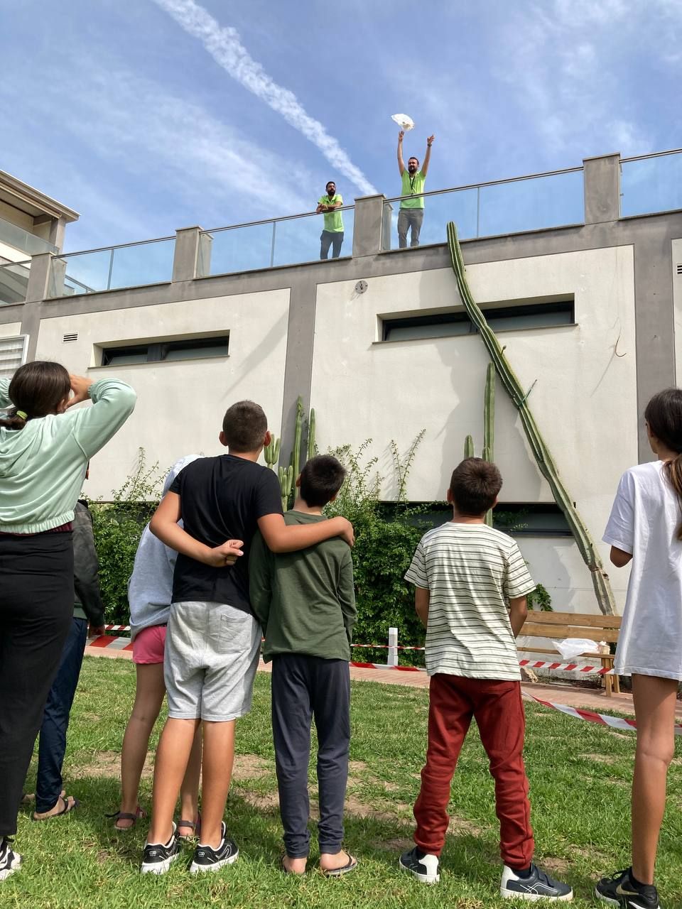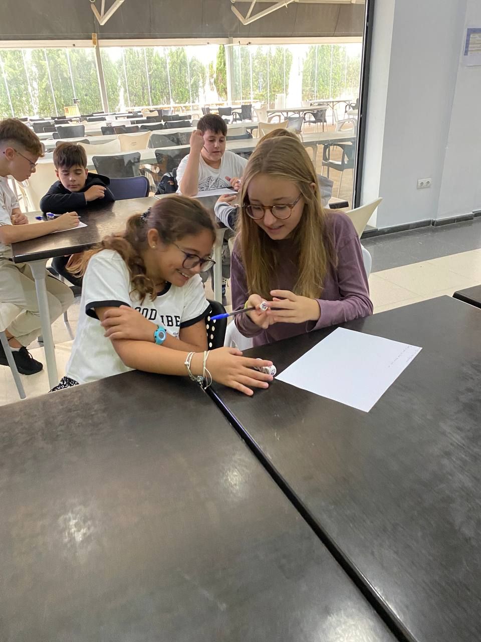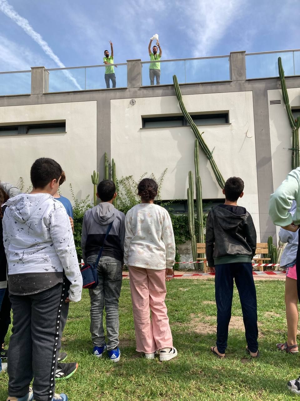 En el siguiente bloque de la mañana, todos los participantes del programa se han reunido en una de las áreas comunes del hotel para realizar la actividad "Super Egg". En ella, se entrega un huevo a cada grupo de trabajo y los alumnos deben crear un personaje a partir de este y construir un paracaídas. Lo más emocionante llega cuando deben lanzar el huevo desde el tejado.