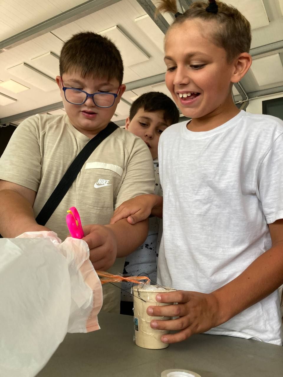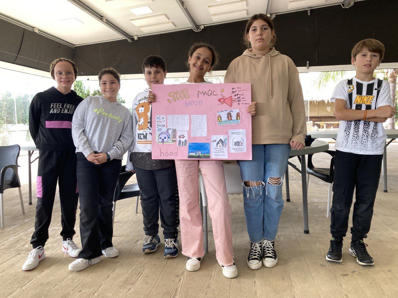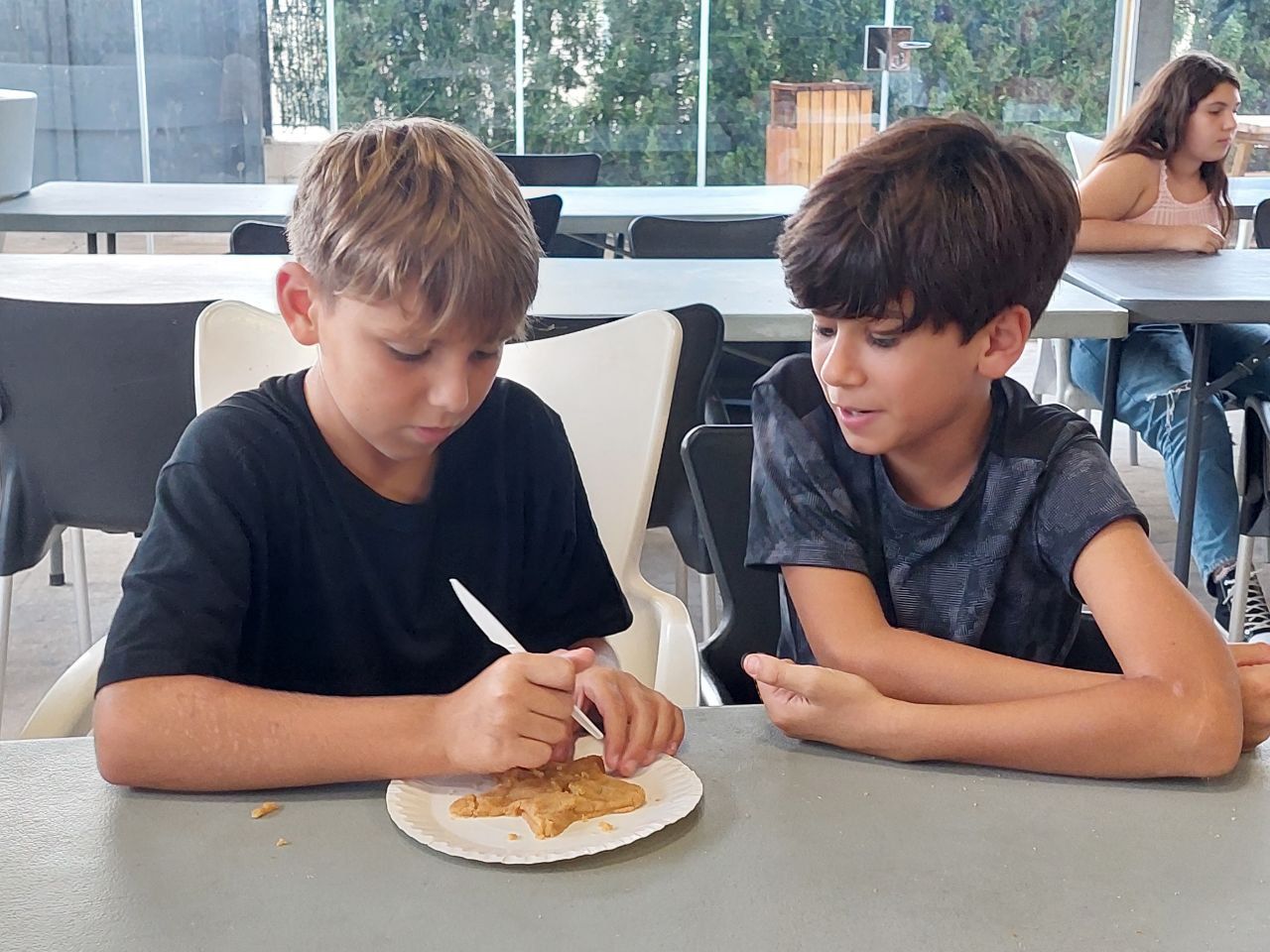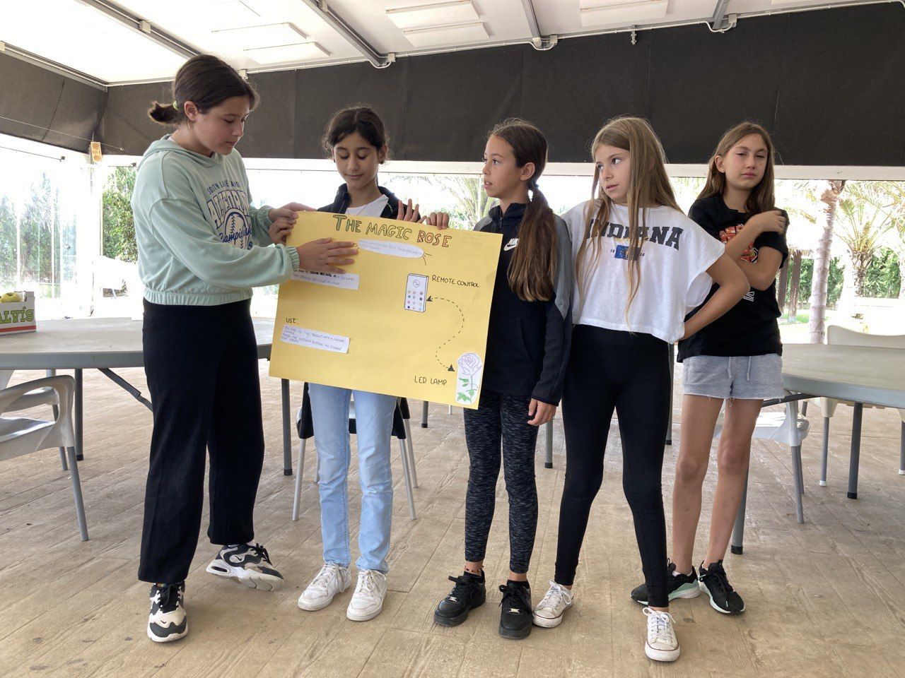 En el siguiente bloque de la mañana, todos los participantes del programa se han reunido en una de las áreas comunes del hotel para realizar la actividad "Super Egg". En ella, se entrega un huevo a cada grupo de trabajo y los alumnos deben crear un personaje a partir de este y construir un paracaídas. Lo más emocionante llega cuando deben lanzar el huevo desde el tejado.