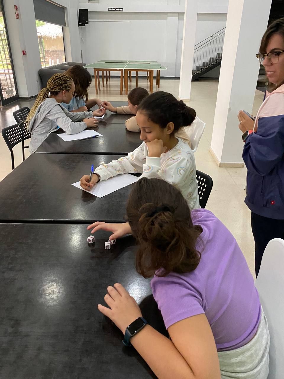 Después de la comida, los alumnos han disfrutado siguiendo las coreografías de diferentes bailes alrededor del mundo. Además, han tenido algo de tiempo para preparar una presentación para el "Talent Show", la última actividad de la noche.
