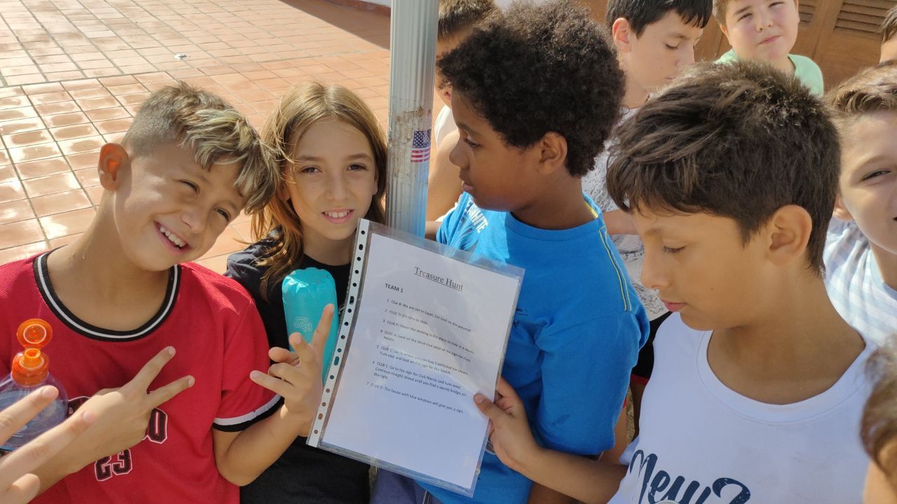 En este día los niños se han levantado con mucha ilusión, con ganas de aprender y de divertirse. Al igual que el día anterior, la previsión metereológica vaticinaba lluvias para la tarde. Así que hemos comenzado la mañana -después del desayuno, con la actividad "Treasure Hunt". Los alumnos se han desplazado a la playa para descubrir pistas escondidas en una divertida búsqueda del tesoro.