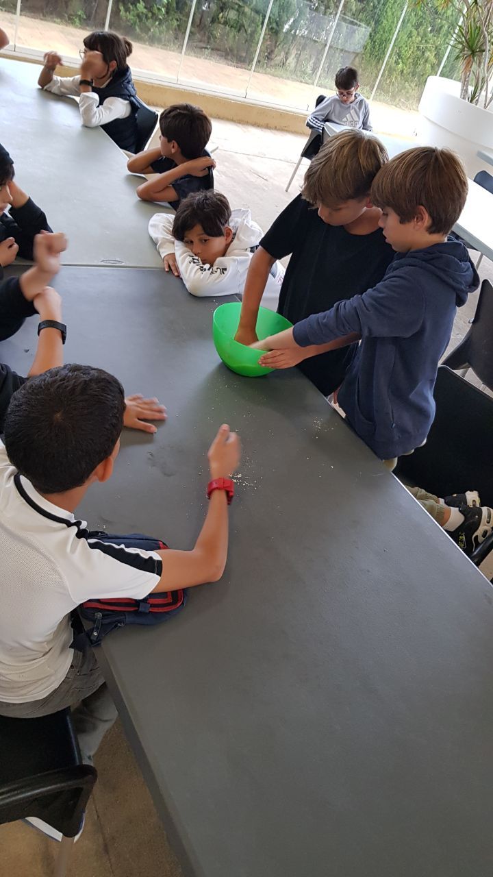 Al terminar de hacer sus máscaras, los niños lavaron sus manos, comieron y después de un rato de tiempo libre, desarrollaron la actividad "Cooking workshop". En este espacio, los niños aprenden primero a seguir las instrucciones en inglés de una receta para crear un postre, y luego usan toda su creatividad para darle una forma para que destaque entre los otros postres.