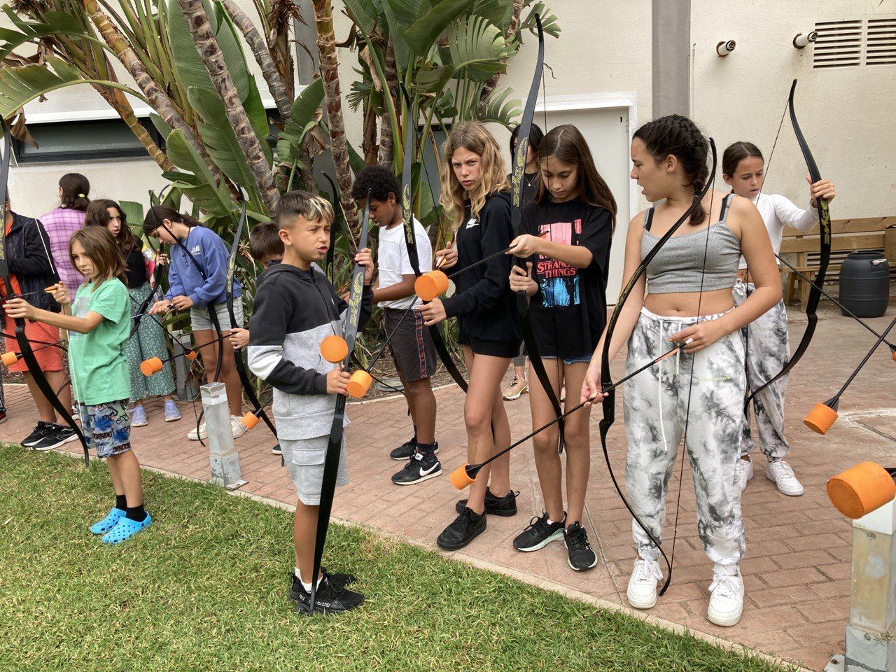Después del "snack" y un corto descanso, los niños se divirtieron a lo grande en el segundo bloque de la mañana con la actividad "archery". Al igual que Robin Hood, los participantes del programa han tenido la oportunidad de probar sus aptitudes con el arco y la flecha. Las flechas tienen la punta cubierta con goma espuma y son completamente seguras para los más pequeños.