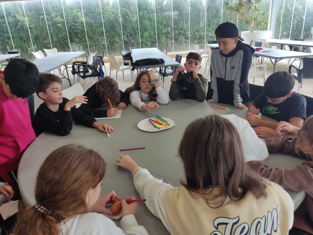 Después de presentar sus historias, los niños han realizado la actividad "Super Egg". A cada grupo de trabajo se le hace entrega de un huevo (crudo) que deben cuidar. Usando su imaginación han de crear un personaje usando al huevo como base. Lo decoran, crean una historia y posteriormente un paracaídas, para que finalmente sea lanzado desde un lugar alto, normalmente desde el tejado. Solo los mejores diseños sobreviven. Los huevos que no han sobrevivido han recibido un "sentido" homenaje.