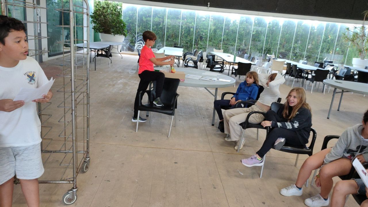 Después de la comida, los alumnos han desarrollado sus habilidades expresivas en el taller "Theatre". Usando como base una obra de teatro tradicional en inglés, los niños crean sus propios disfraces y realizan una lectura dramatizada de la obra.
