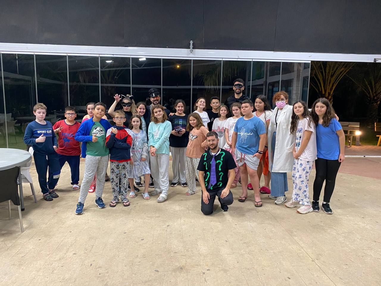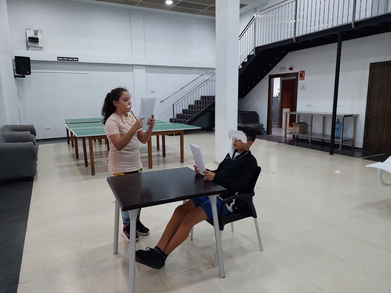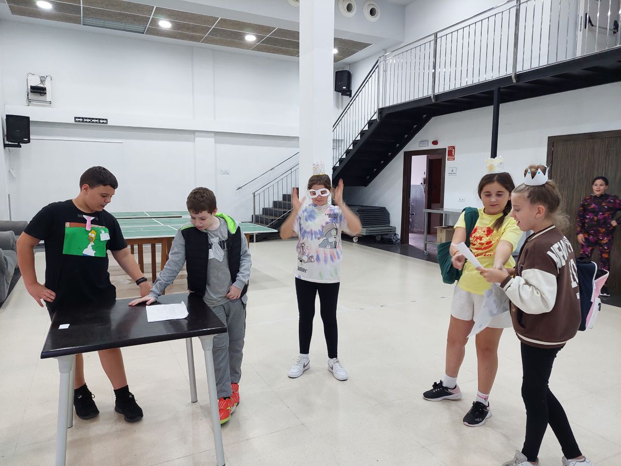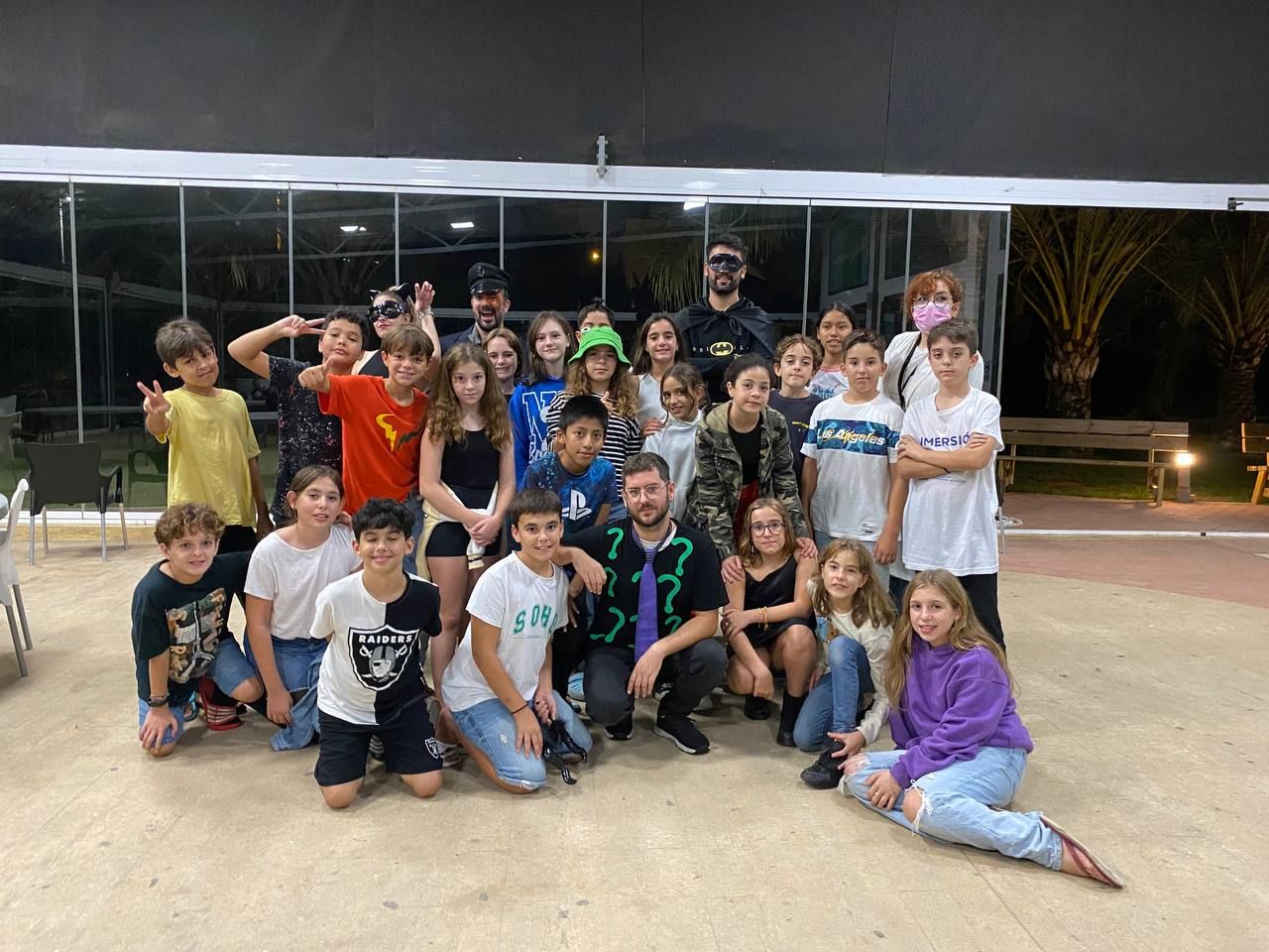 Después de la cena, los alumnos han desarrollado la actividad "Gotham Asylum". Los profesores de la inmersión disfrazados como personajes de "Gotham City" se distribuyen en diferentes zonas del hotel. Los niños deben encontrarles y después de una conversación en inglés, descubrir que enfermedad mental tiene el personaje. Es toda una aventura para los niños y a la vez una oportunidad para practicar su comunicación oral en inglés.