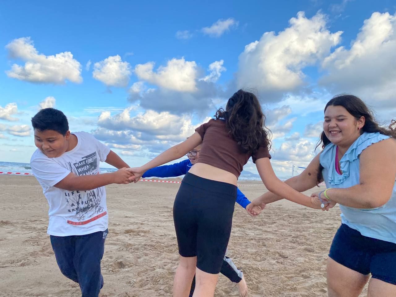 Después de la comida y de las actividades preparadas por los profesores de los centros participantes, los niños tienen la oportunidad de ir a la playa para realizar diversas actividades lúdicas, siempre dirigidas en inglés por los profesores de la inmersión. Este es un espacio para que los niños puedan ejercitarse y divertirse a partes iguales.