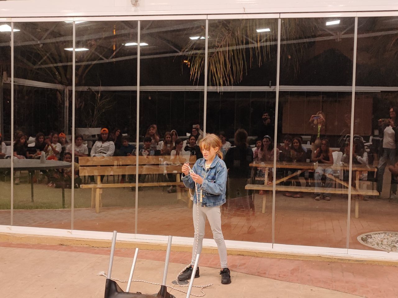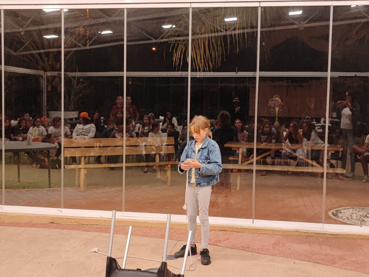 Después de la cena y del tiempo de descanso, llegó el momento que los niños estaban esperando. Las presentaciones fueron variadas y los alumnos disfrutaron tanto como artistas como público, animándose los unos a los otros en todo momento. Hubo coreografías, percusión con vasos al mejor estilo "stomp" y bailes urbanos en grupos e individuales. Incluso alguien se atrevió a hacer "cow roping", característico de los vaqueros del oeste americano, en donde atrapan vacas con una cuerda -esta vez una silla hizo de vaca. ¡Ha sido un tiempo inolvidable!