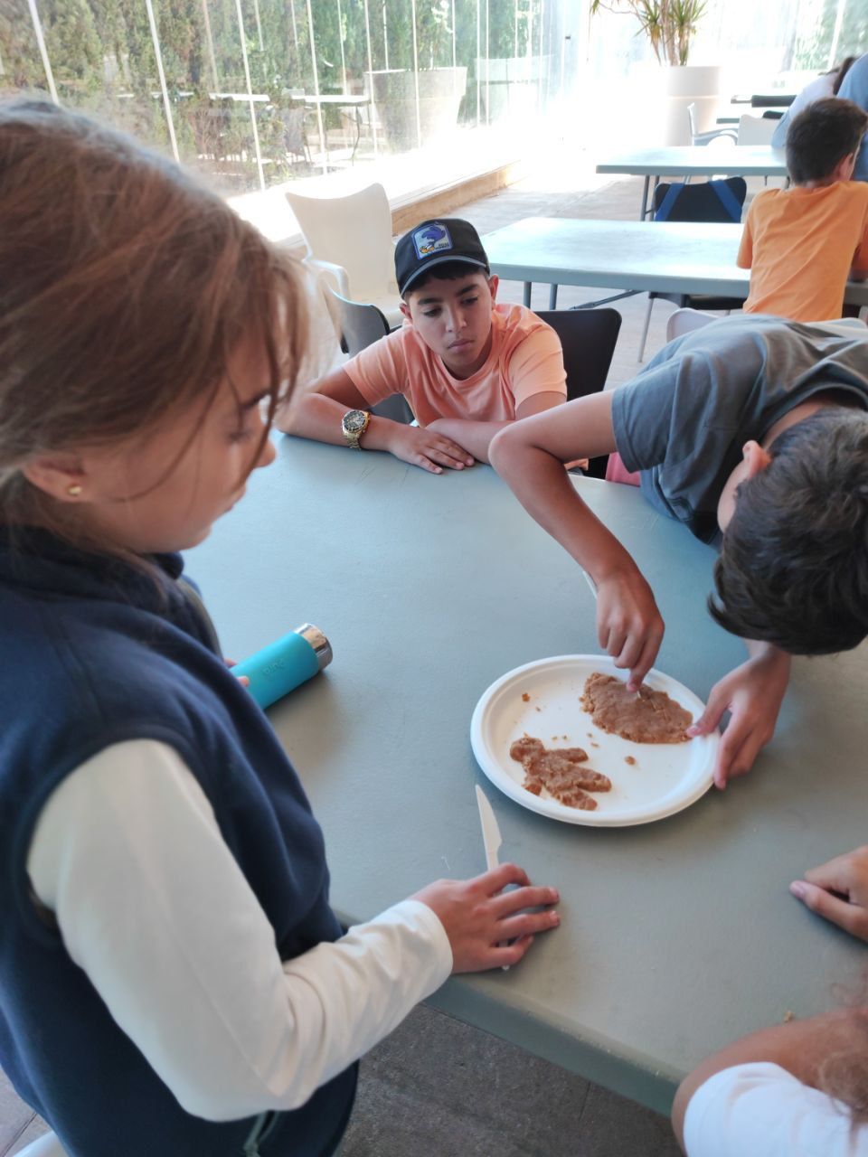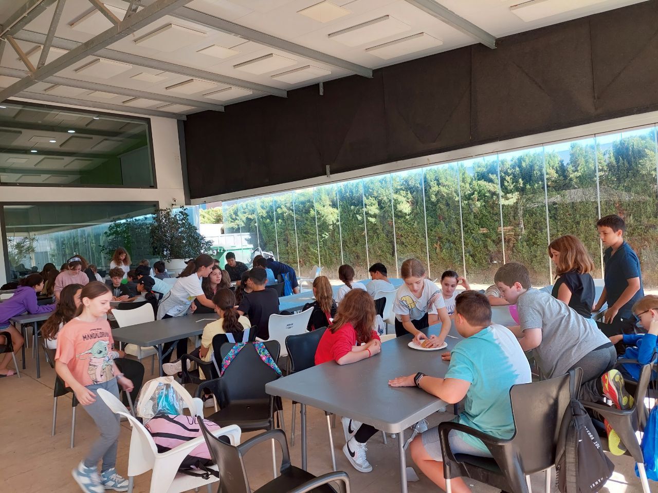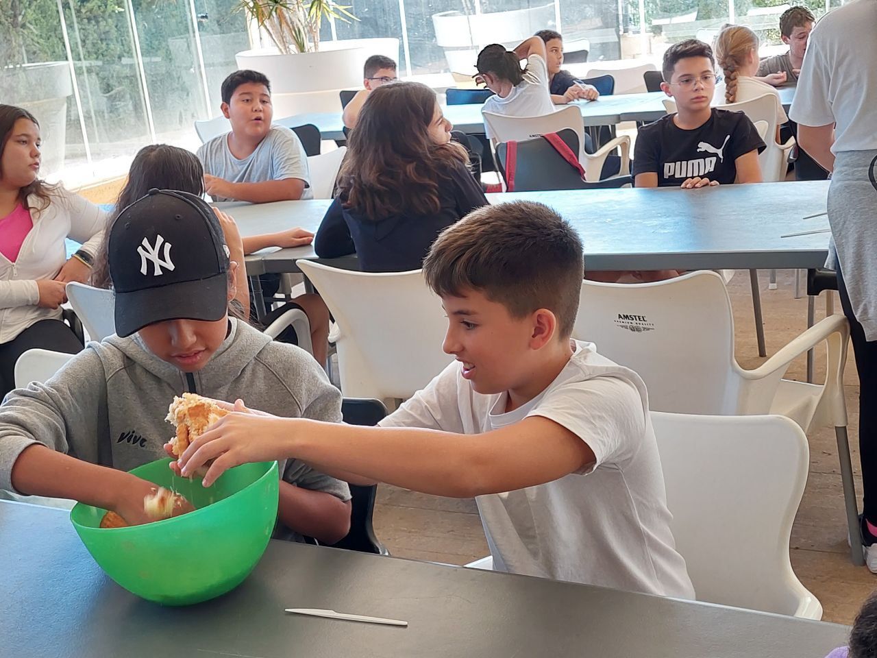 Después del "snack de la mañana, los niños han podido la oportunidad de demostrar sus capacidades culinarias en la actividad "cooking workshop". A partir de ingredientes básicos y siguiendo instrucciones en inglés, los alumnos por grupos, deben crear sus propios postres. Ha sido un tiempo muy entretenido.