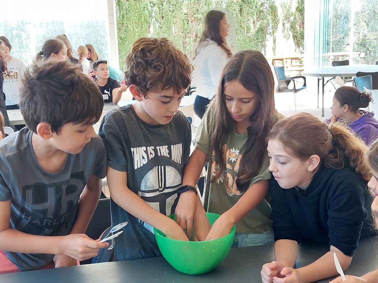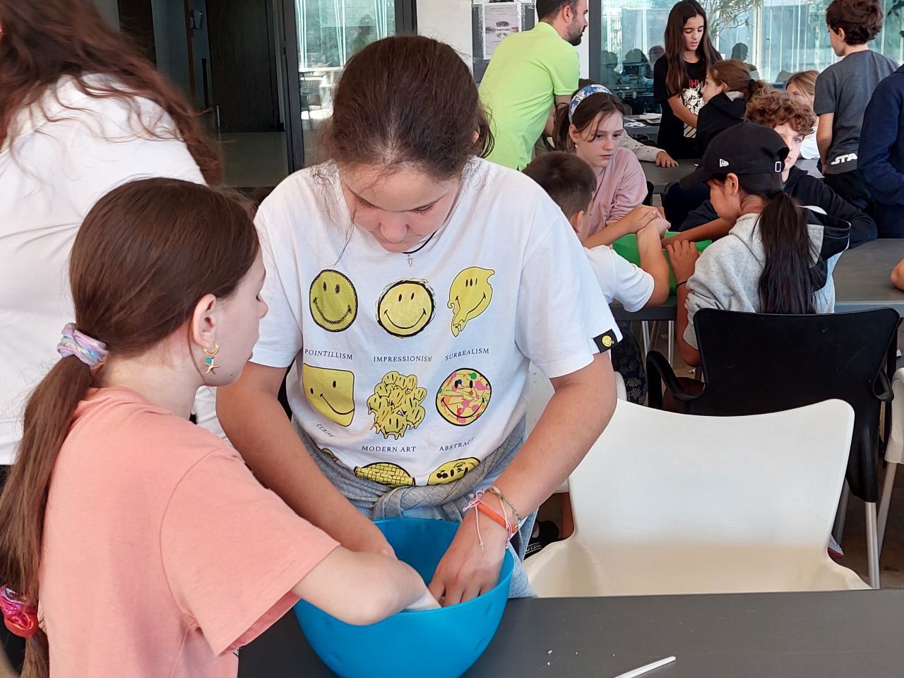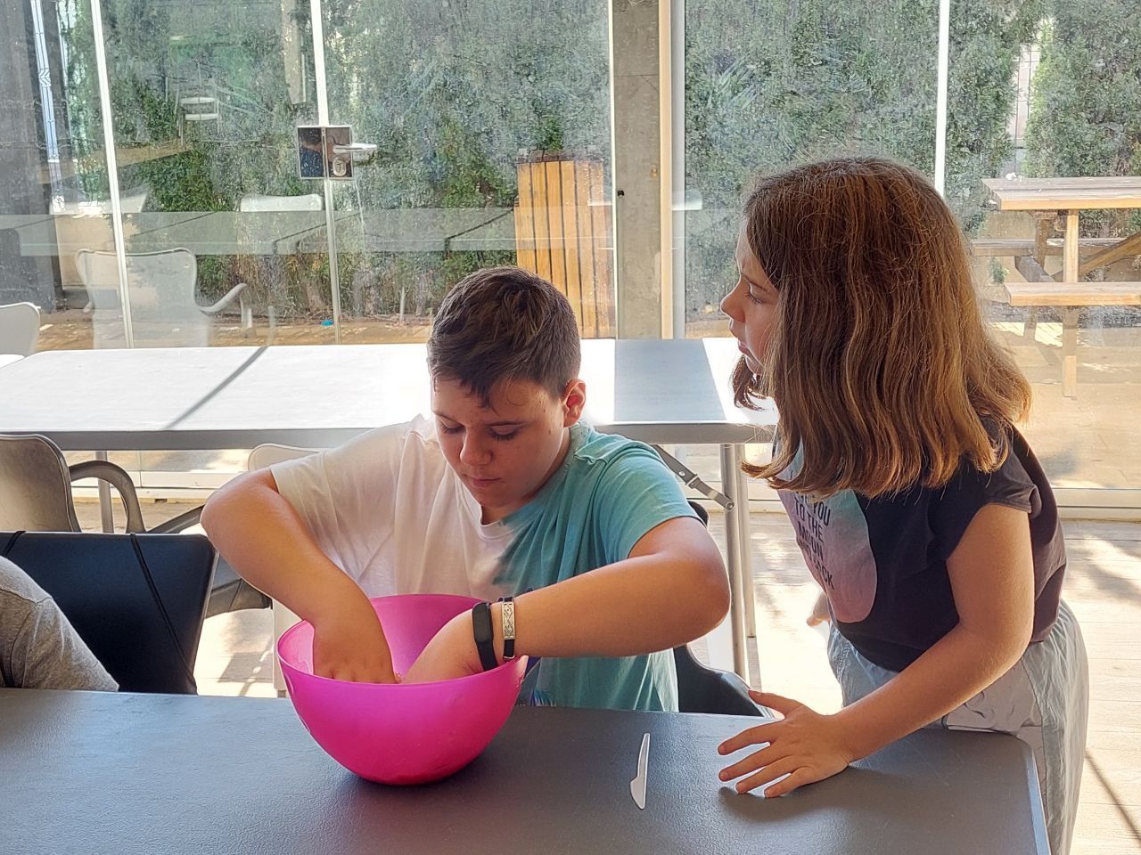 Después del "snack de la mañana, los niños han podido la oportunidad de demostrar sus capacidades culinarias en la actividad "cooking workshop". A partir de ingredientes básicos y siguiendo instrucciones en inglés, los alumnos por grupos, deben crear sus propios postres. Ha sido un tiempo muy entretenido.