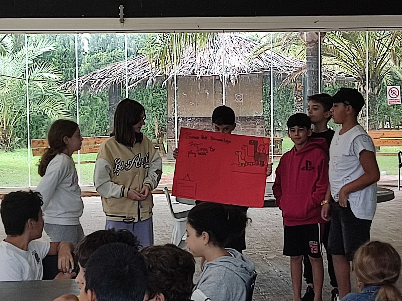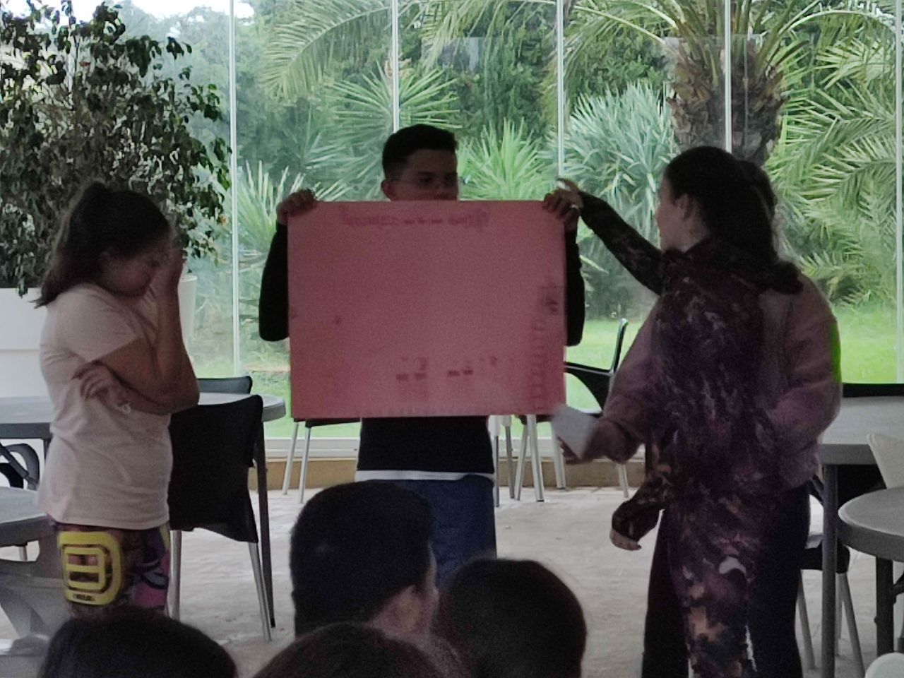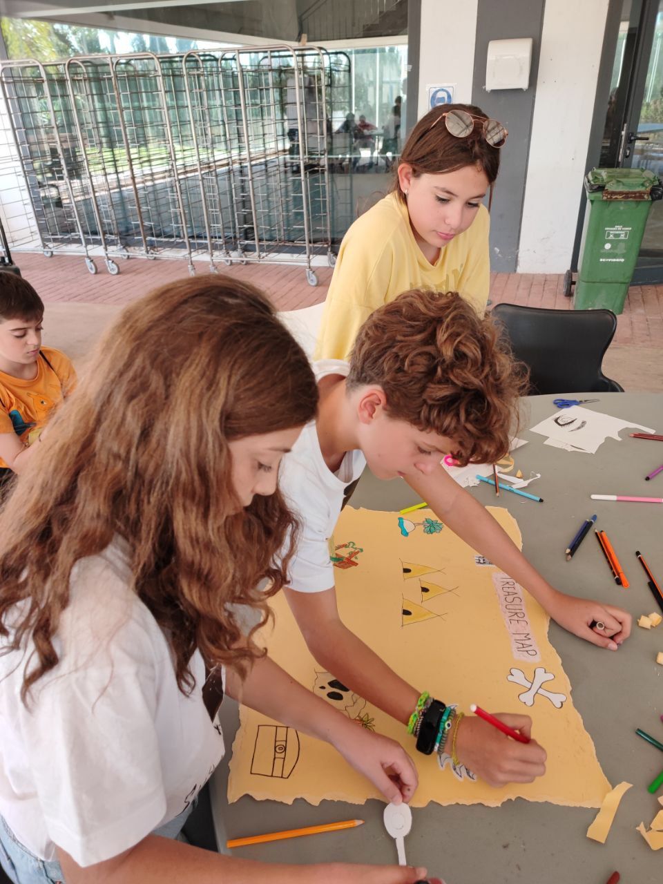 Después de esto, los niños vuelven a las intalaciones del hotel en donde realizan la actividad "Treasure Map". En este espacio los alumnos practican la descripción de lugares y como dar indicaciones en inglés, mientras usan todo su talento para crear un mapa del tesoro.