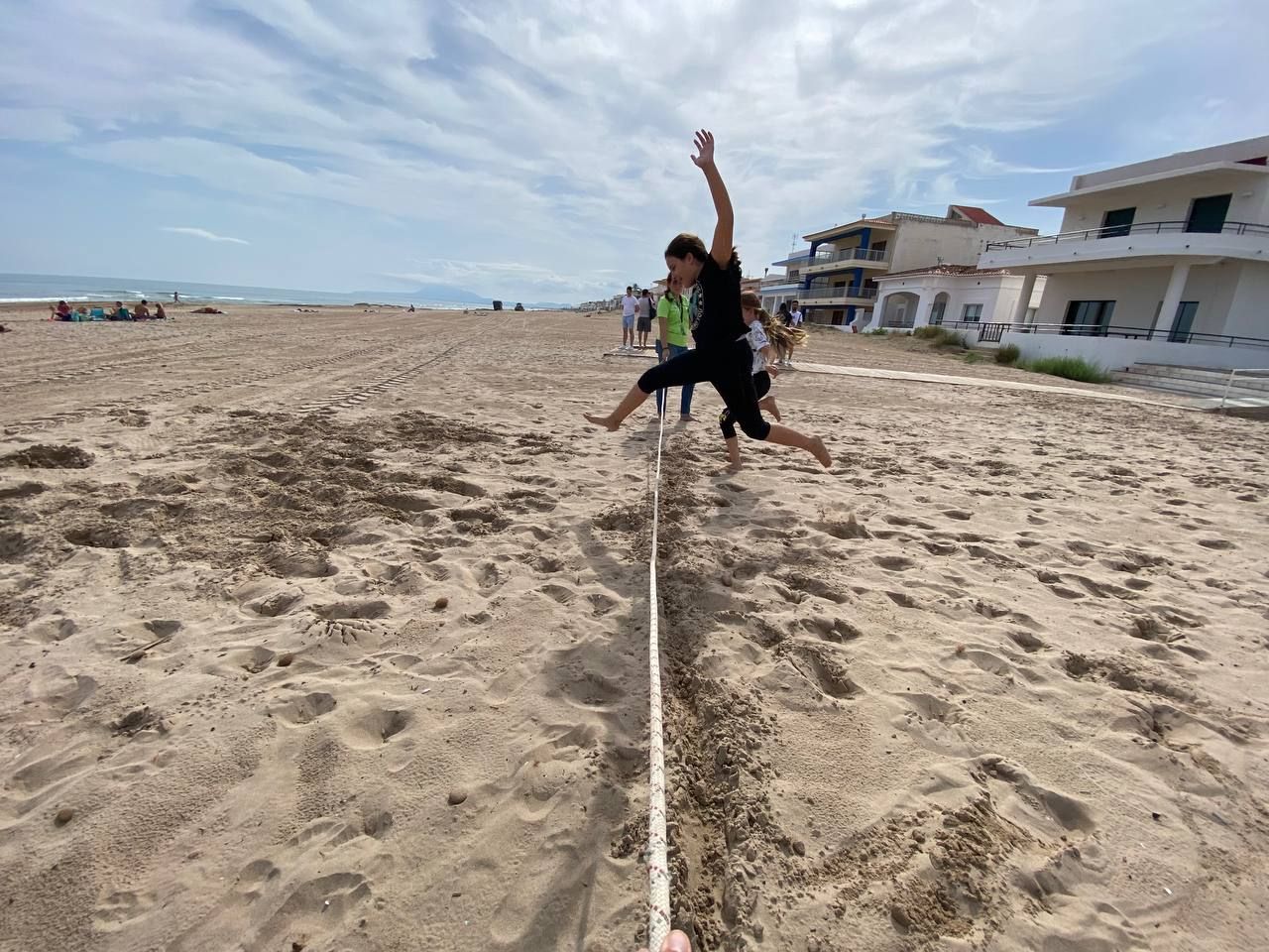 Después de la comida los niños han tenido un tiempo de descanso y posteriormente han podido ir a la playa en donde han realizado la actividad "Ninja Warrior Training". En este tiempo, los alumnos han superado diferentes desafíos propuestos por los profesores de la inmersión quienes durante esta dinámica actúan como "senseis" de los niños.