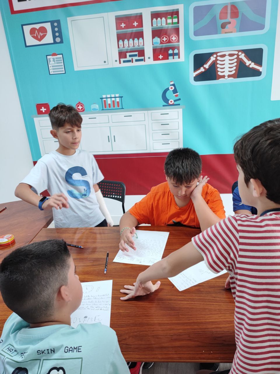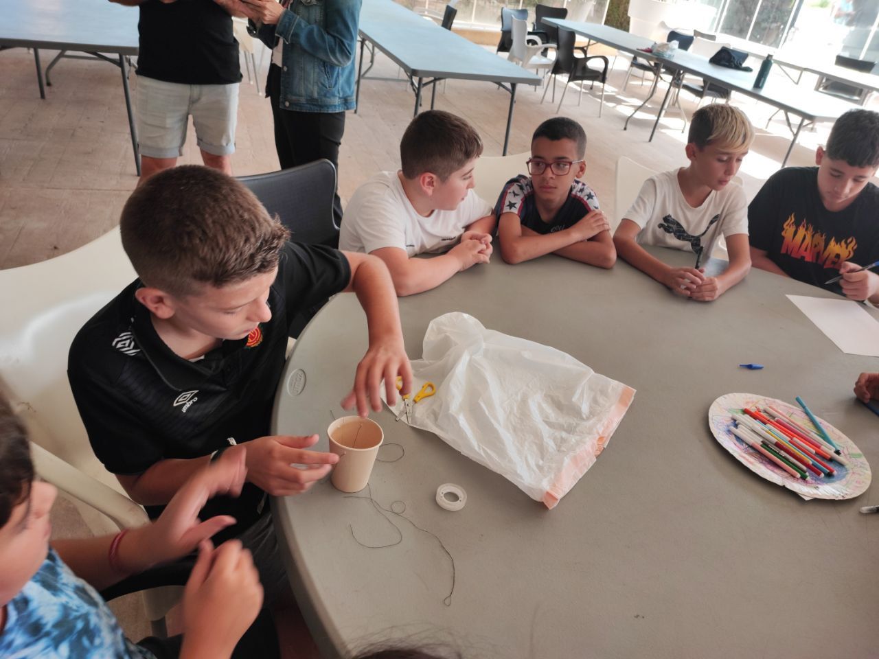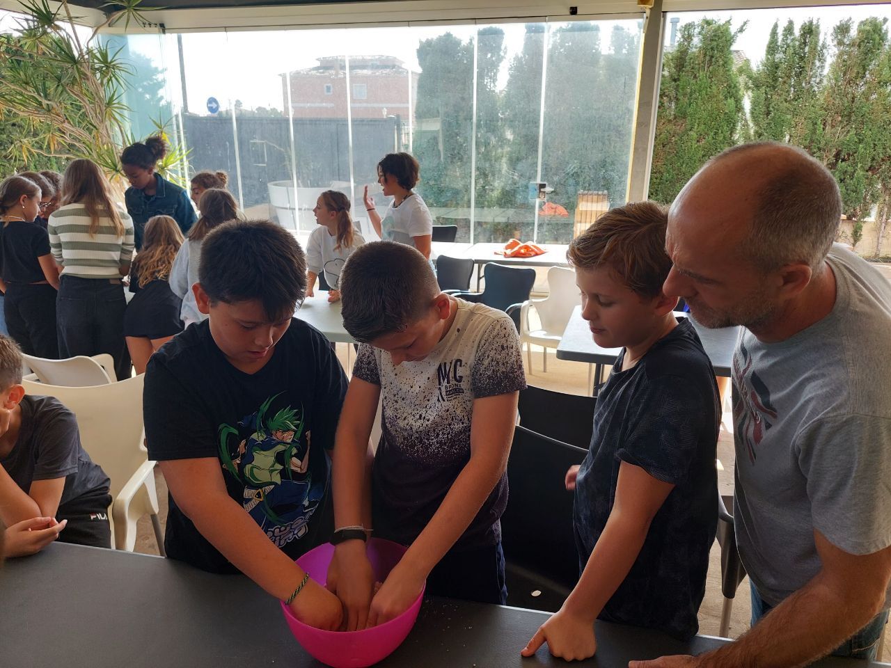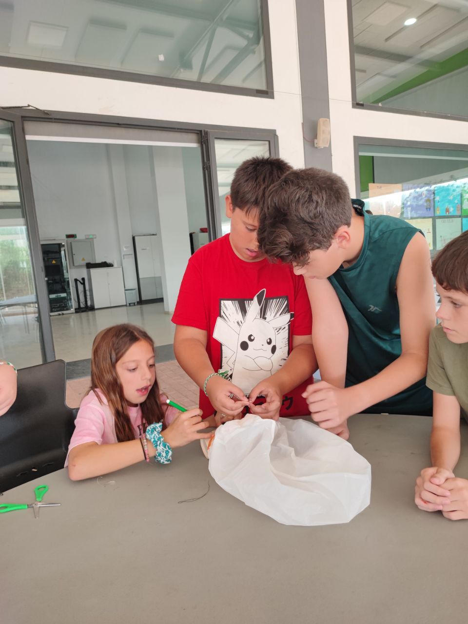 En la siguiente actividad, los alumnos pusieron a prueba su capacidad para resolver problemas, su comunicación escrita y oral en inglés y también su imaginación. "Super Egg"es una de las actividades favoritas de los alumnos de todas las edades, especialmente el momento decisivo del lanzamiento con paracaídas del súper-huevo desde el tejado.