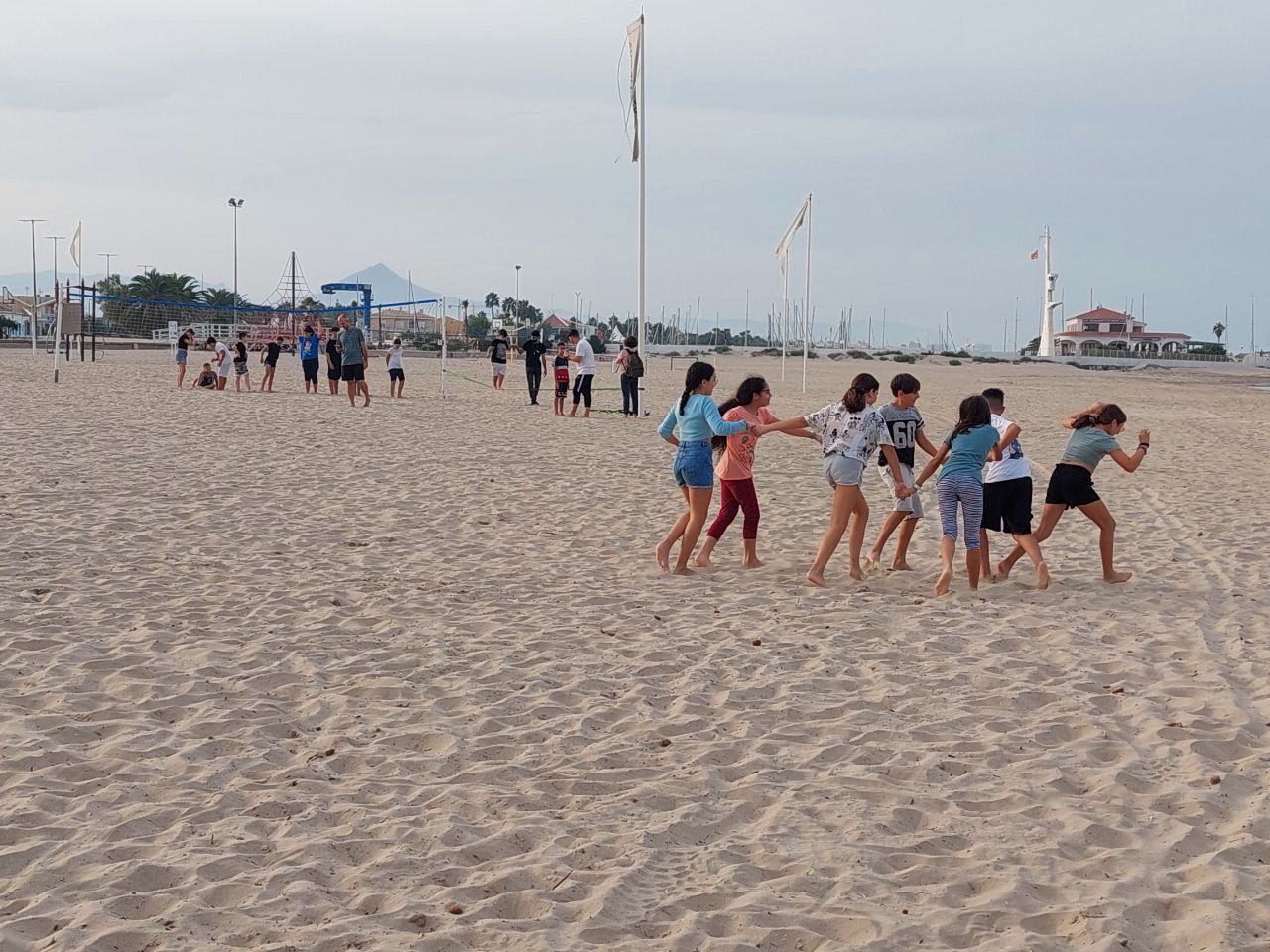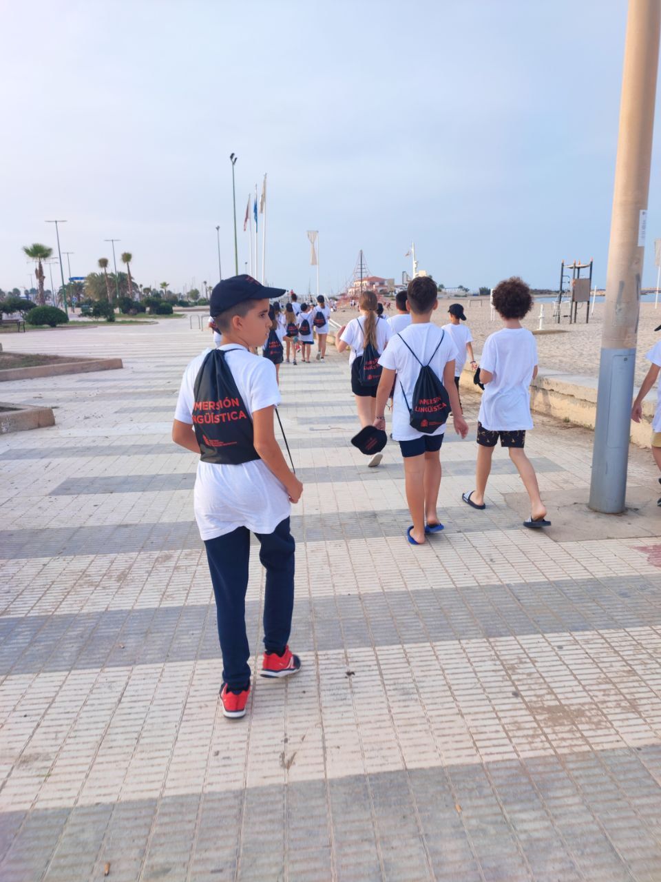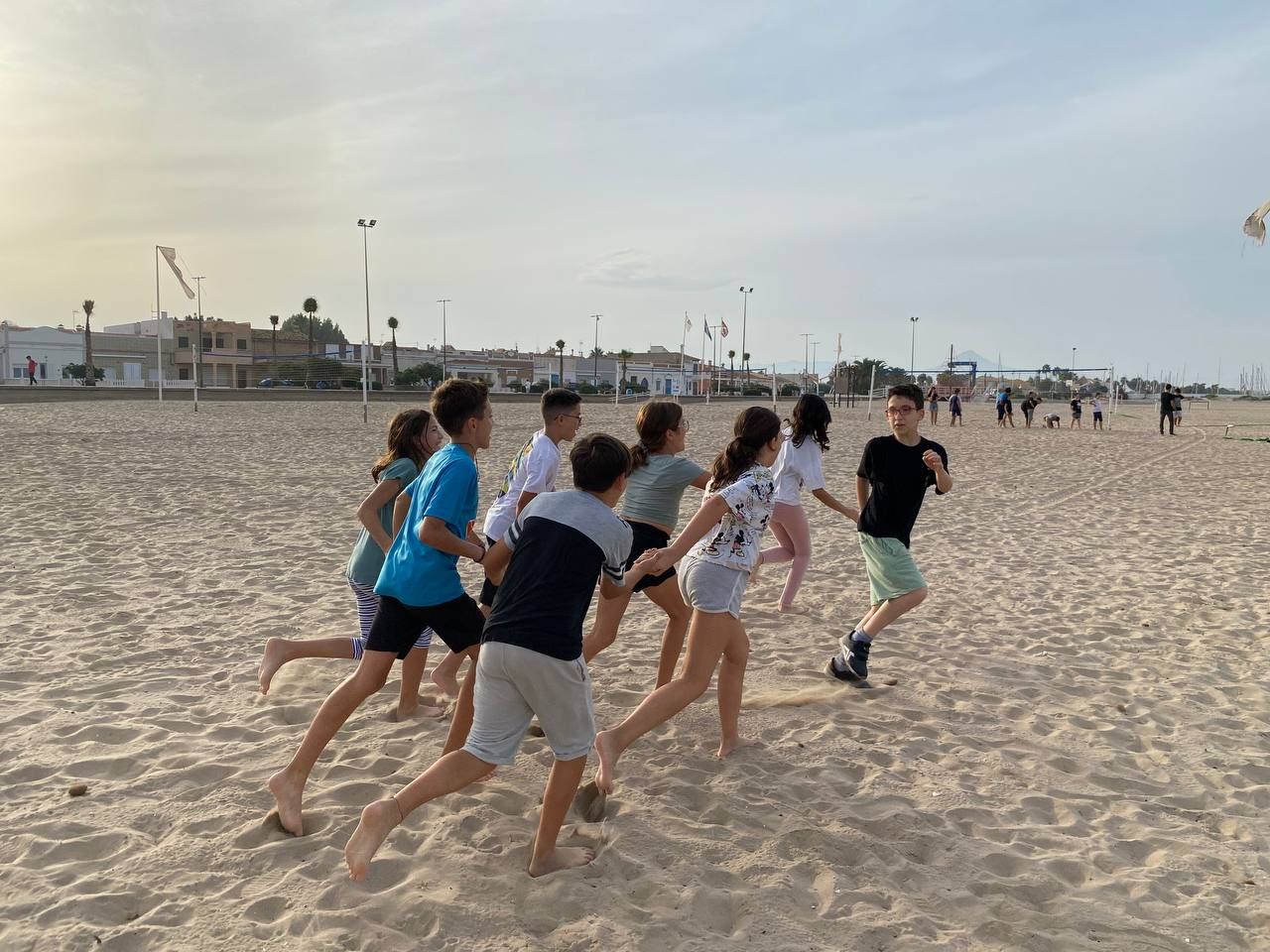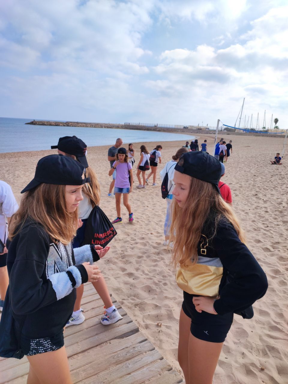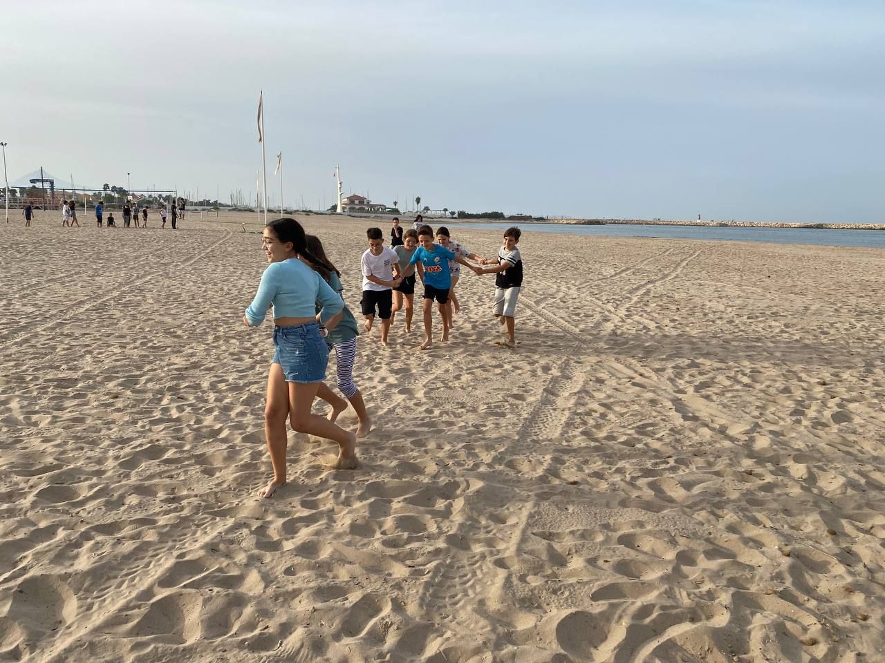 Después de la comida y de las actividades preparadas de antemano por los profesores, los niños salieron a la playa en la búsqueda del tesoro: "Treasure Hunt". Los alumnos organizados por grupos deben encontrar pistas distribuidas a los largo de una sección del paseo marítimo de Oliva. Además, se les hizo entrega de las camisetas y las gorras que se llevarán de recuerdo de la semana del programa de inmersión lingüística.