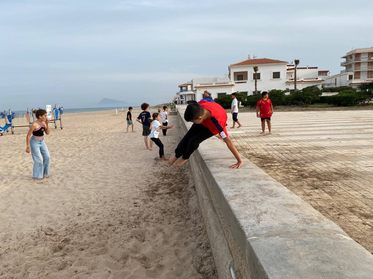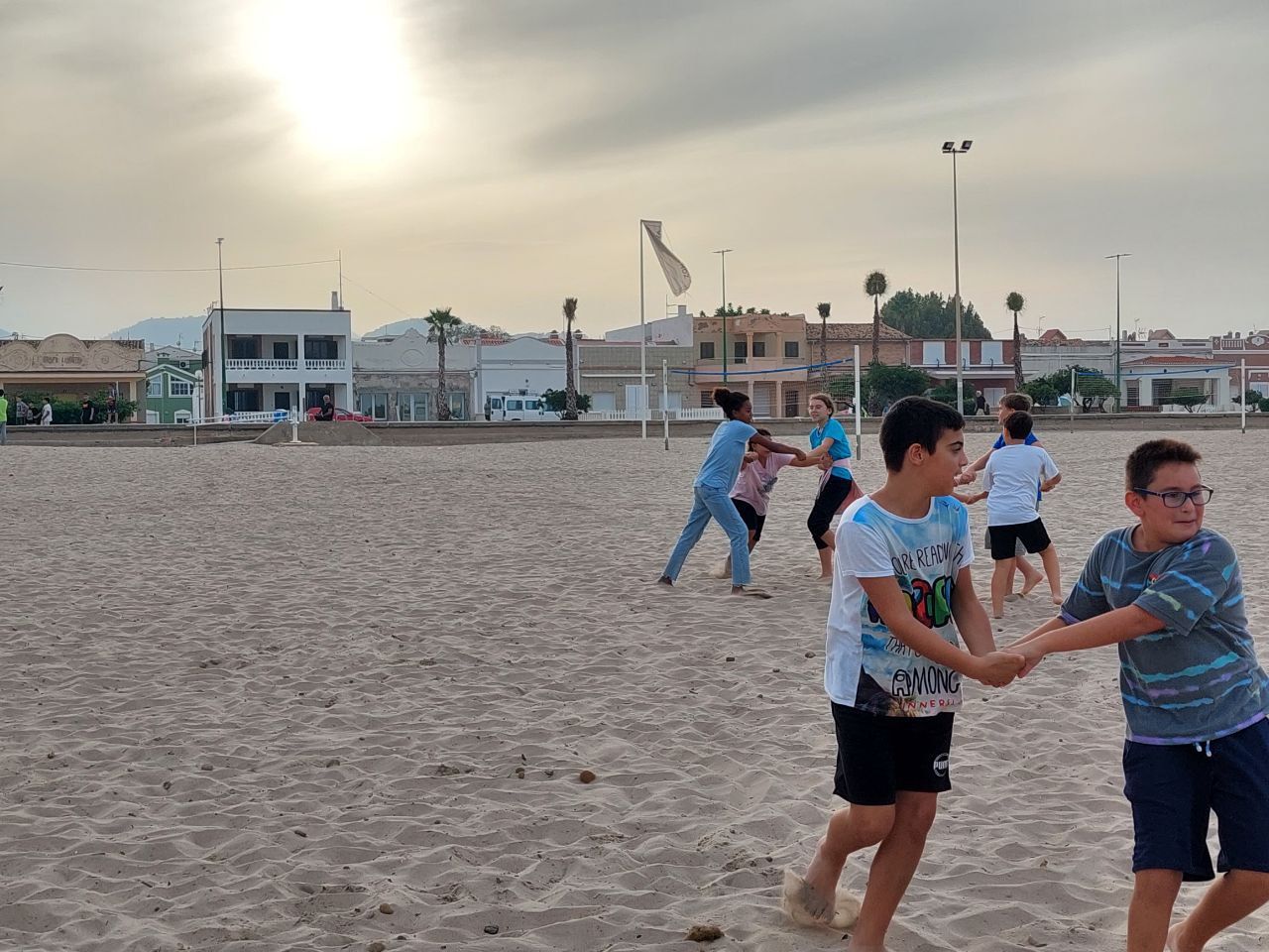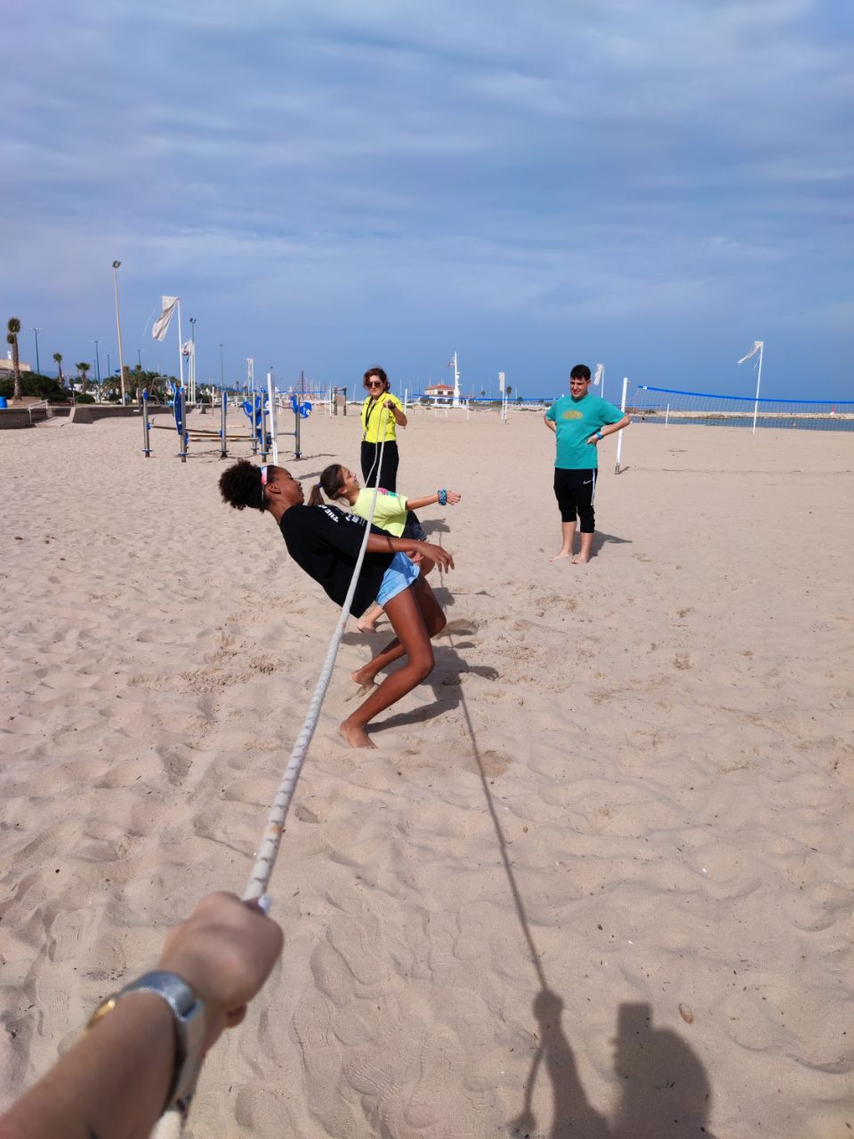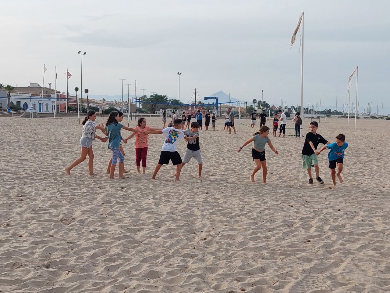 Después de la comida y de las actividades preparadas de antemano por los profesores, los niños salieron a la playa en la búsqueda del tesoro: "Treasure Hunt". Los alumnos organizados por grupos deben encontrar pistas distribuidas a los largo de una sección del paseo marítimo de Oliva. Además, se les hizo entrega de las camisetas y las gorras que se llevarán de recuerdo de la semana del programa de inmersión lingüística.