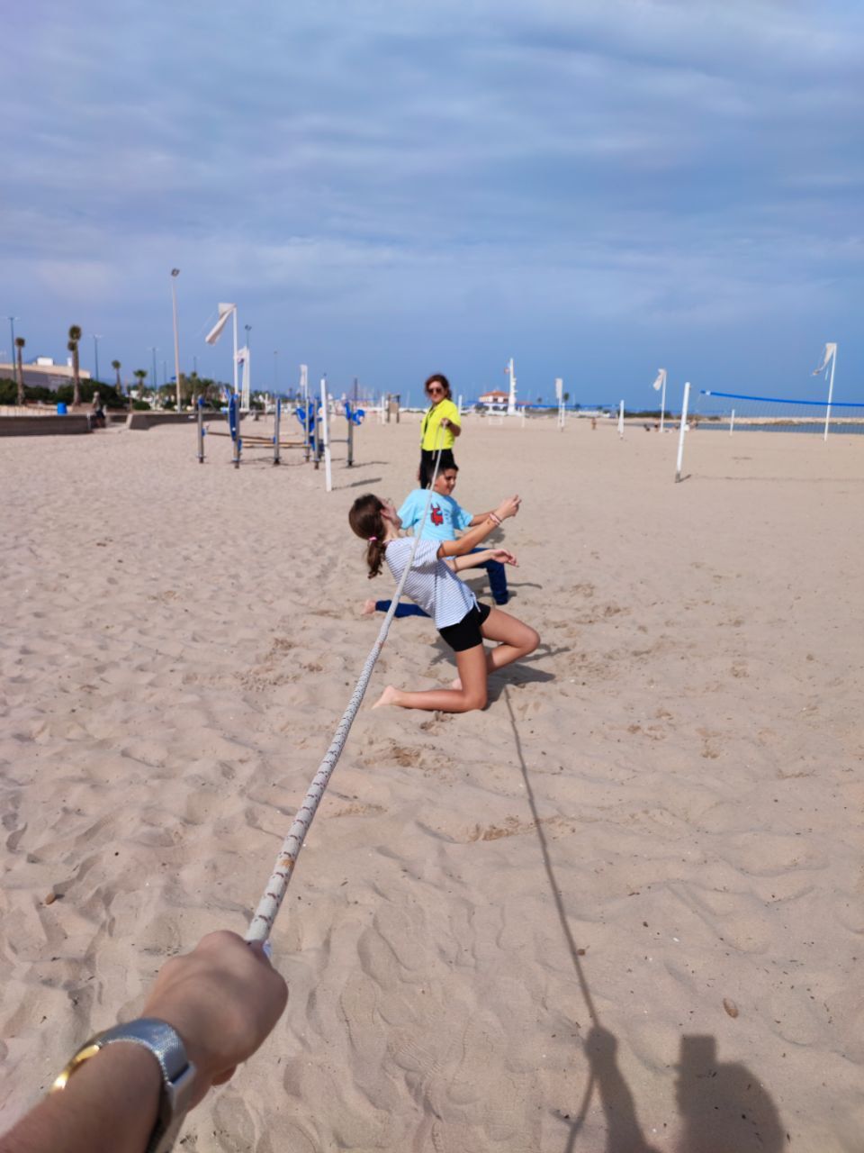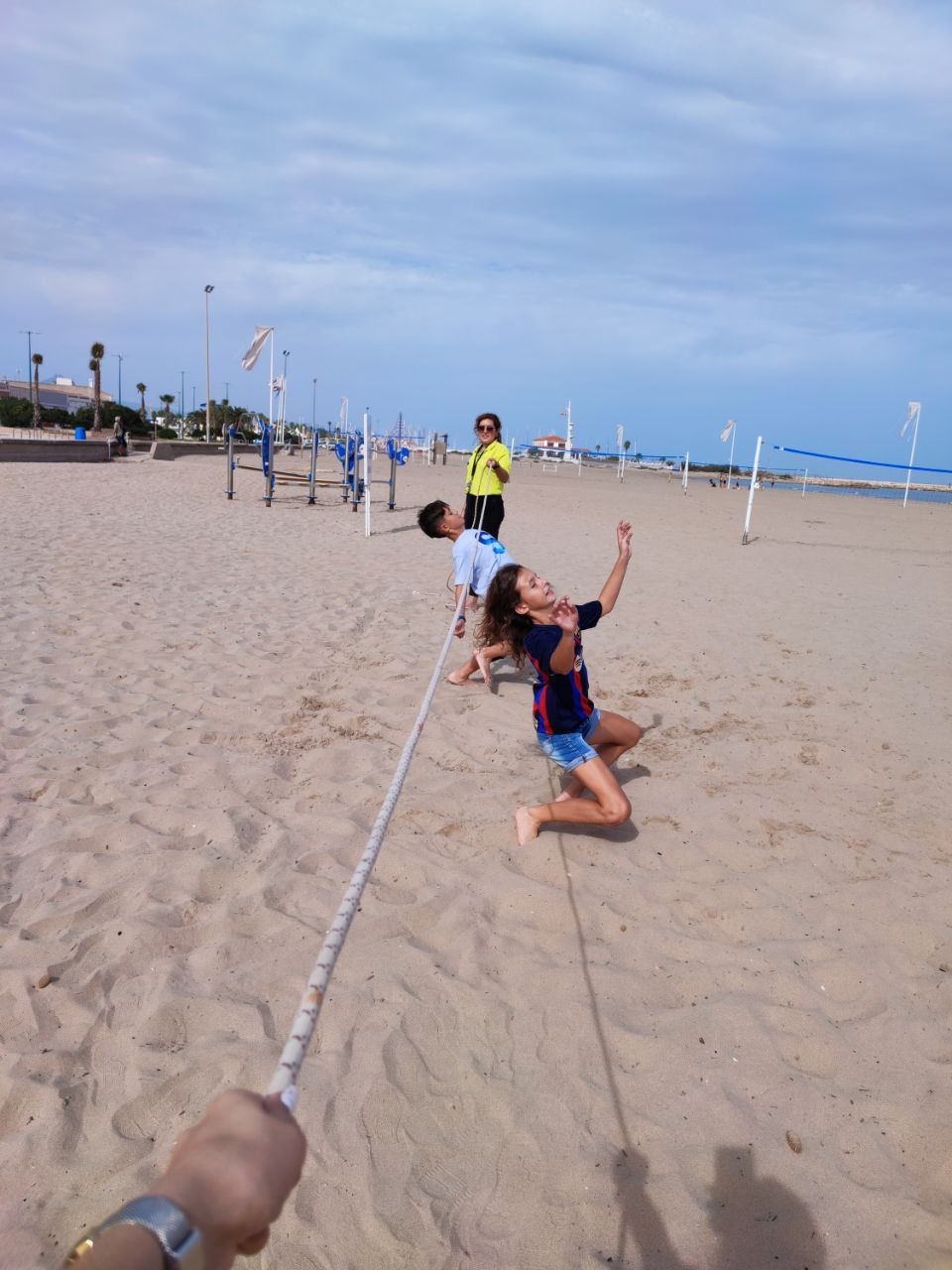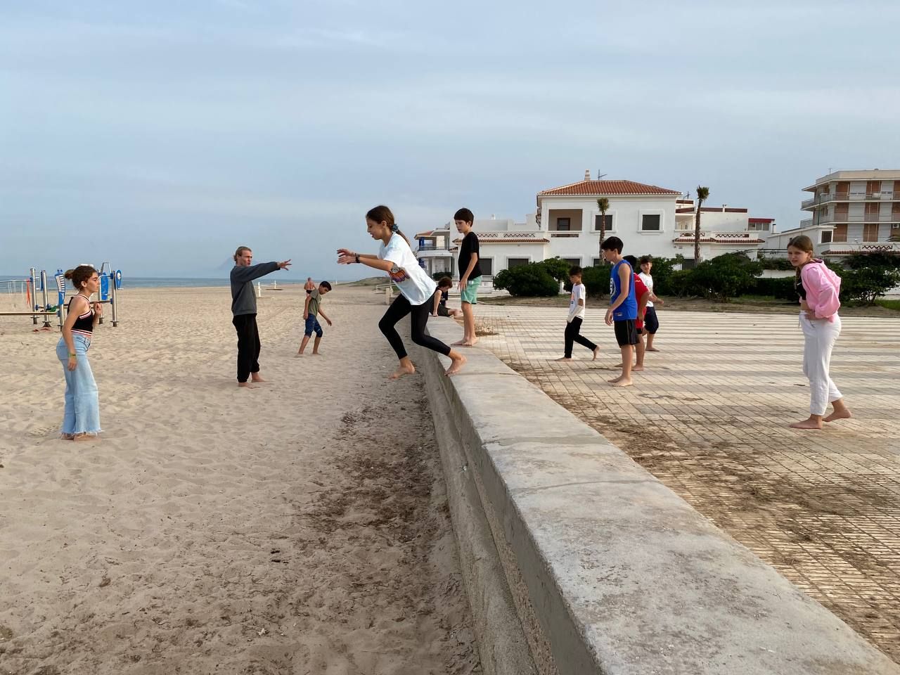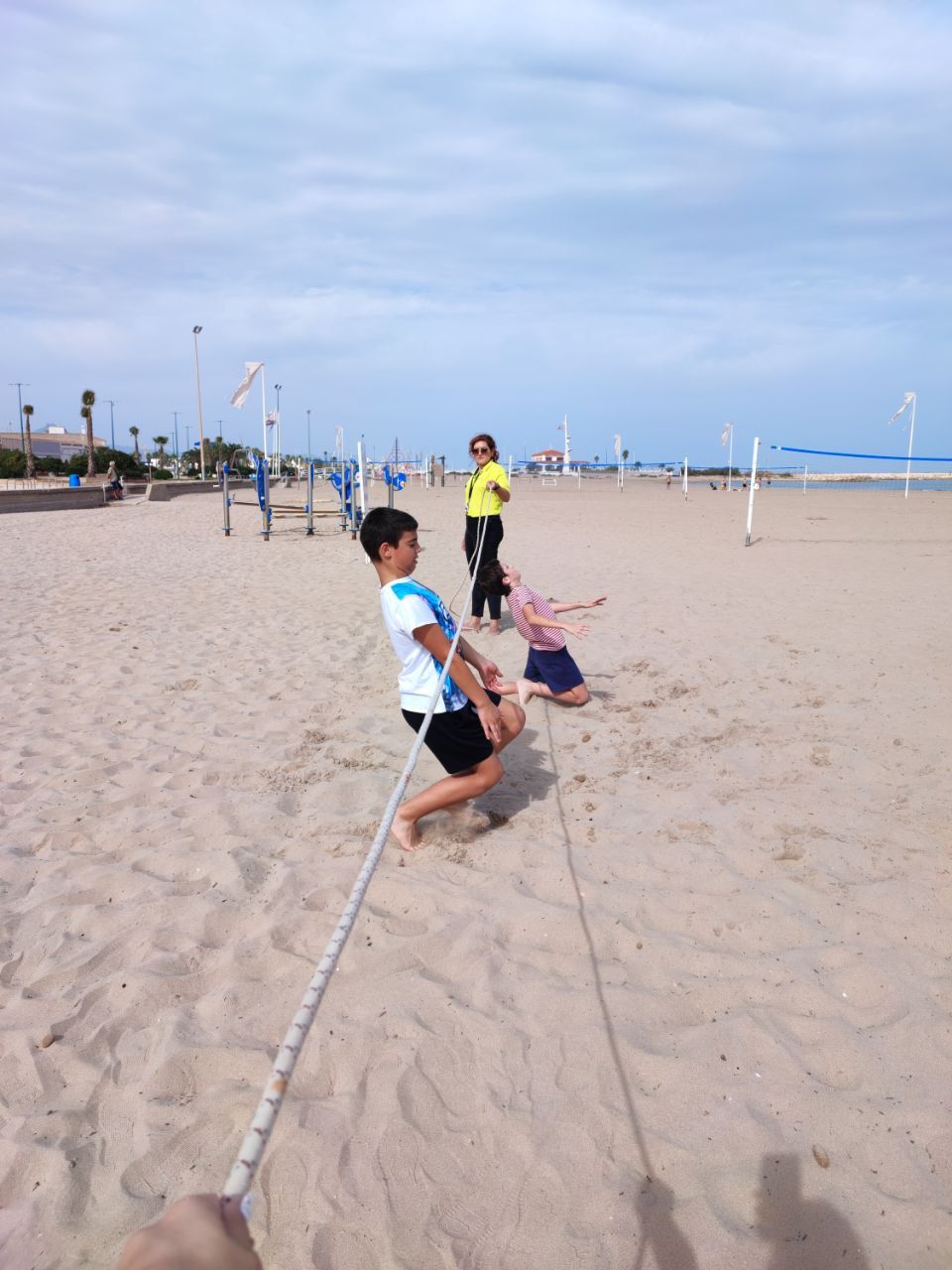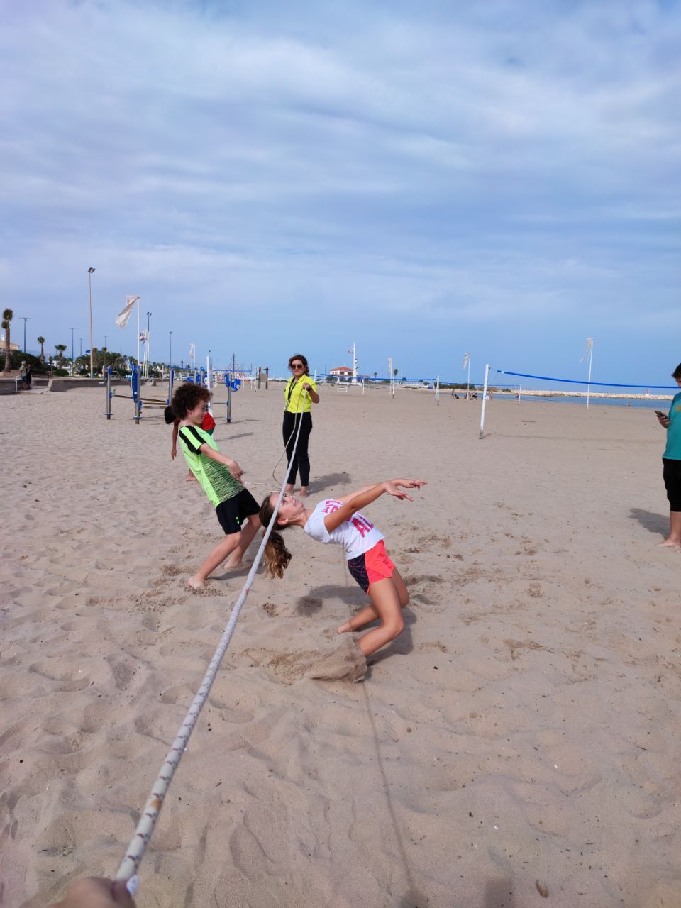 Después de la comida y de las actividades preparadas de antemano por los profesores, los niños salieron a la playa en la búsqueda del tesoro: "Treasure Hunt". Los alumnos organizados por grupos deben encontrar pistas distribuidas a los largo de una sección del paseo marítimo de Oliva. Además, se les hizo entrega de las camisetas y las gorras que se llevarán de recuerdo de la semana del programa de inmersión lingüística.