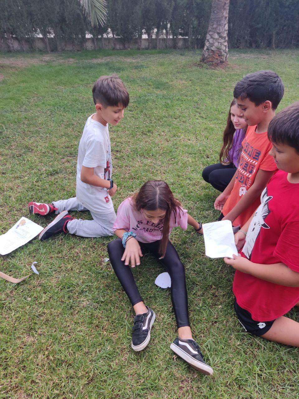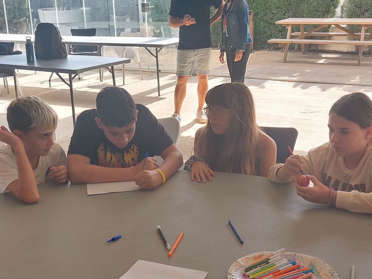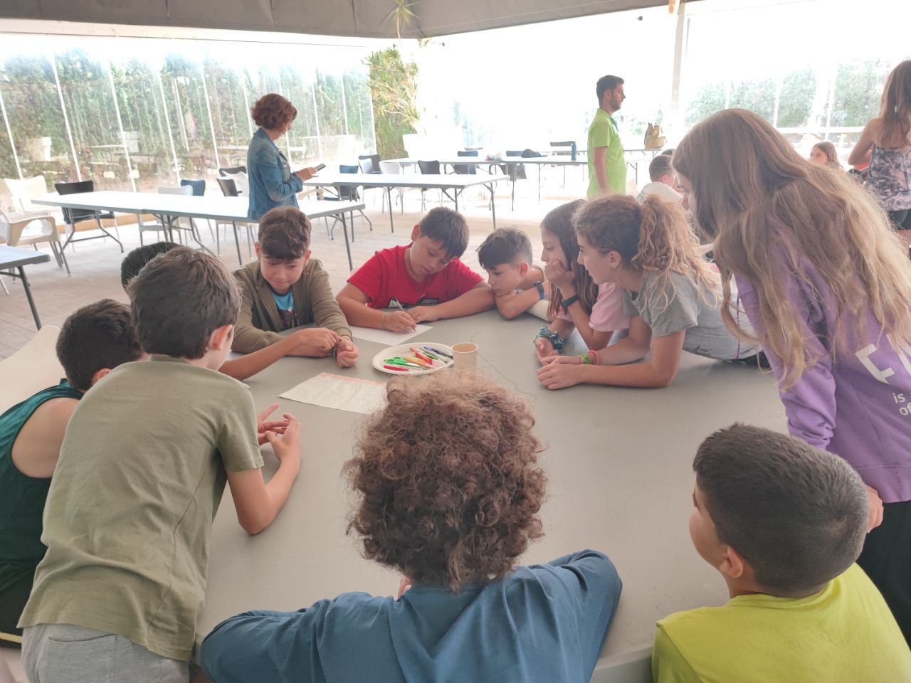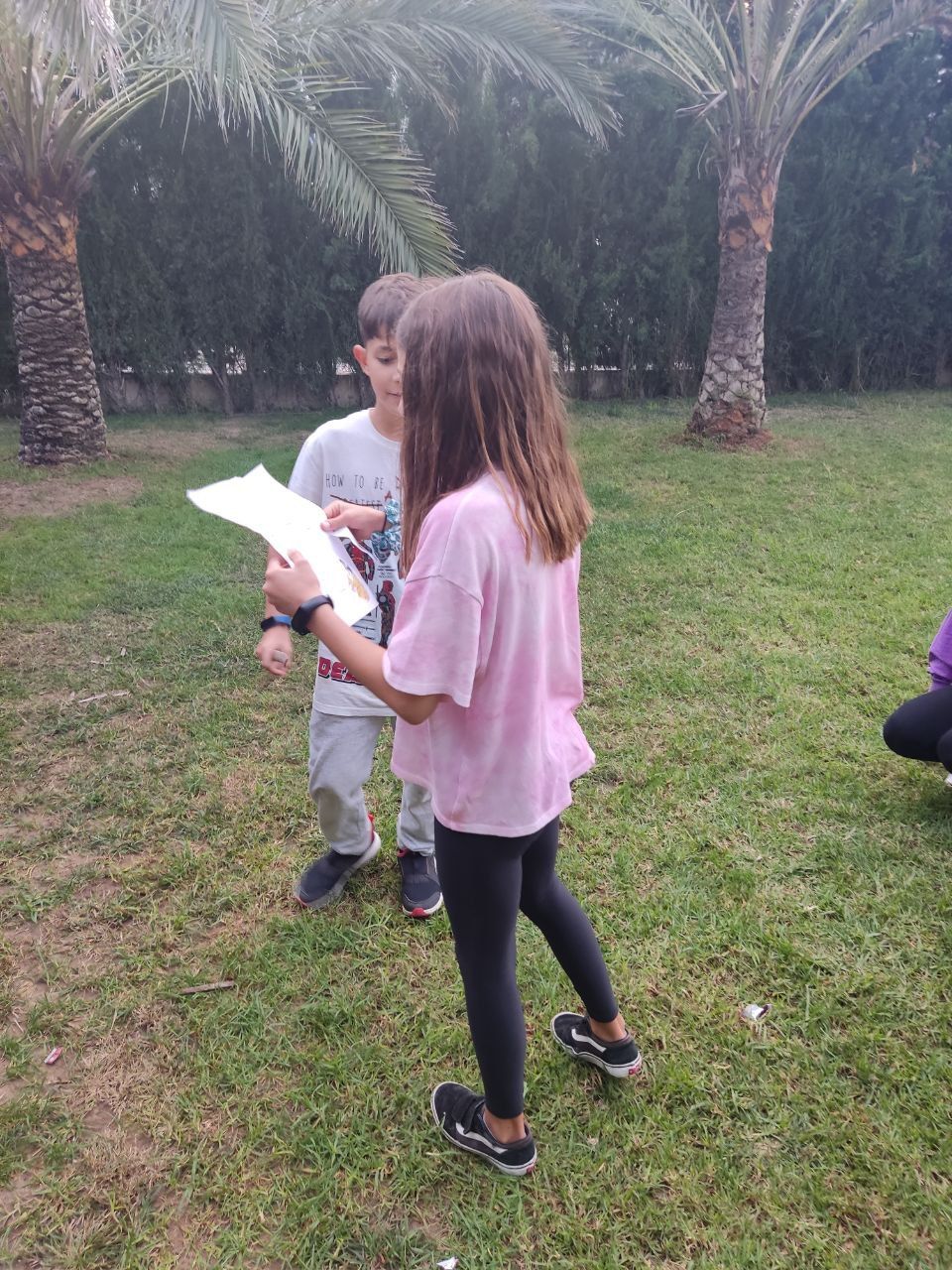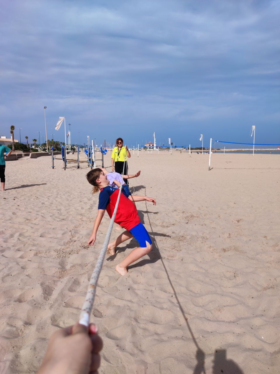 Después de la comida y de las actividades preparadas de antemano por los profesores, los niños salieron a la playa en la búsqueda del tesoro: "Treasure Hunt". Los alumnos organizados por grupos deben encontrar pistas distribuidas a los largo de una sección del paseo marítimo de Oliva. Además, se les hizo entrega de las camisetas y las gorras que se llevarán de recuerdo de la semana del programa de inmersión lingüística.