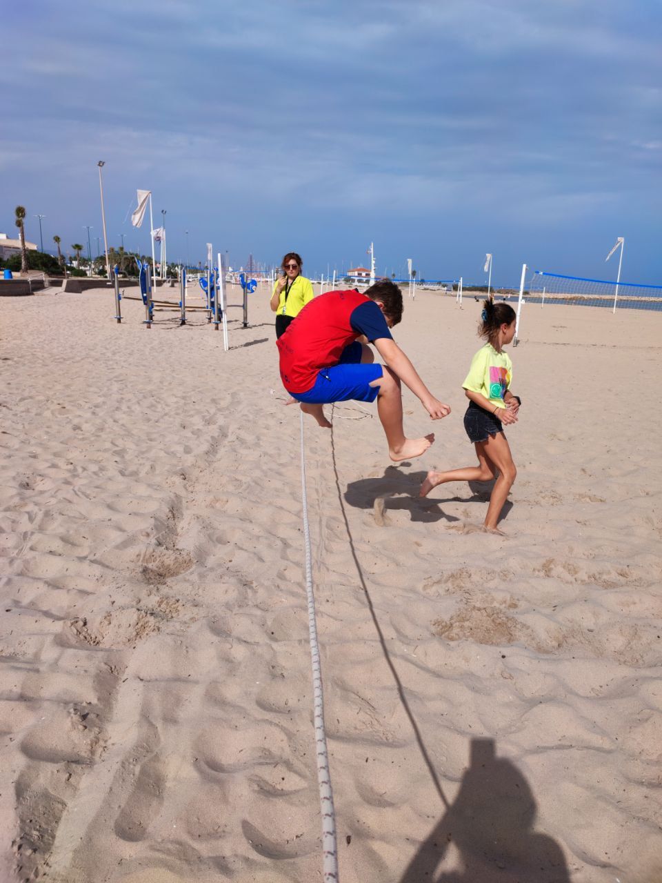 Después de la comida los niños han tenido un tiempo de descanso y posteriormente han podido ir a la playa en donde han realizado la actividad "Ninja Warrior Training". En este tiempo, los alumnos han superado diferentes desafíos propuestos por los profesores de la inmersión quienes durante esta dinámica actúan como "senseis" de los niños