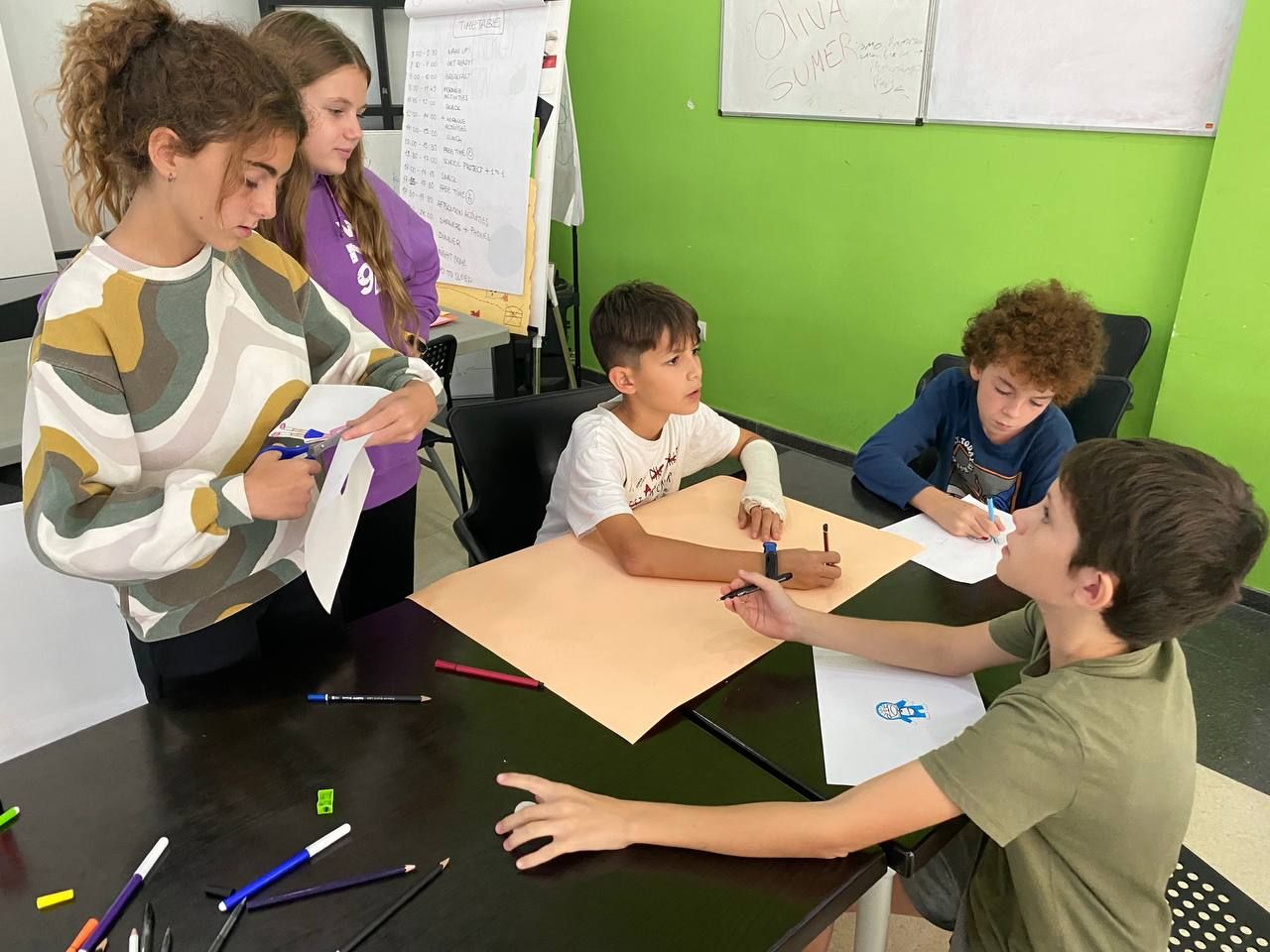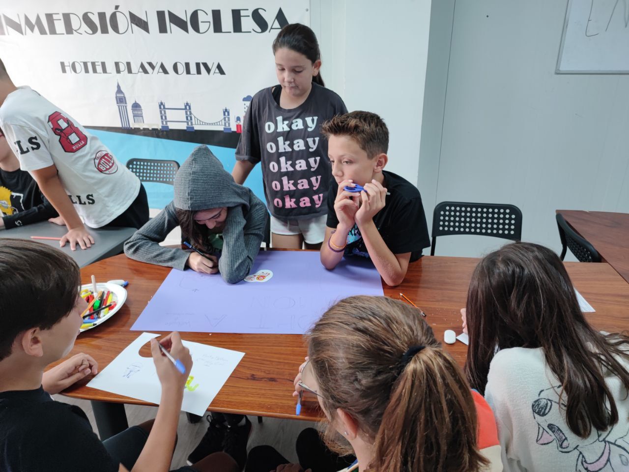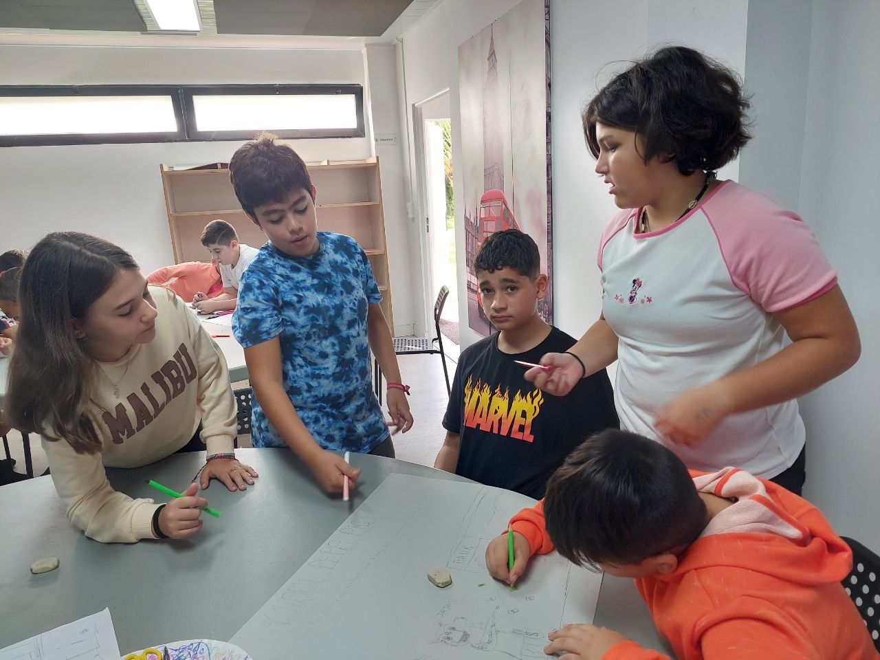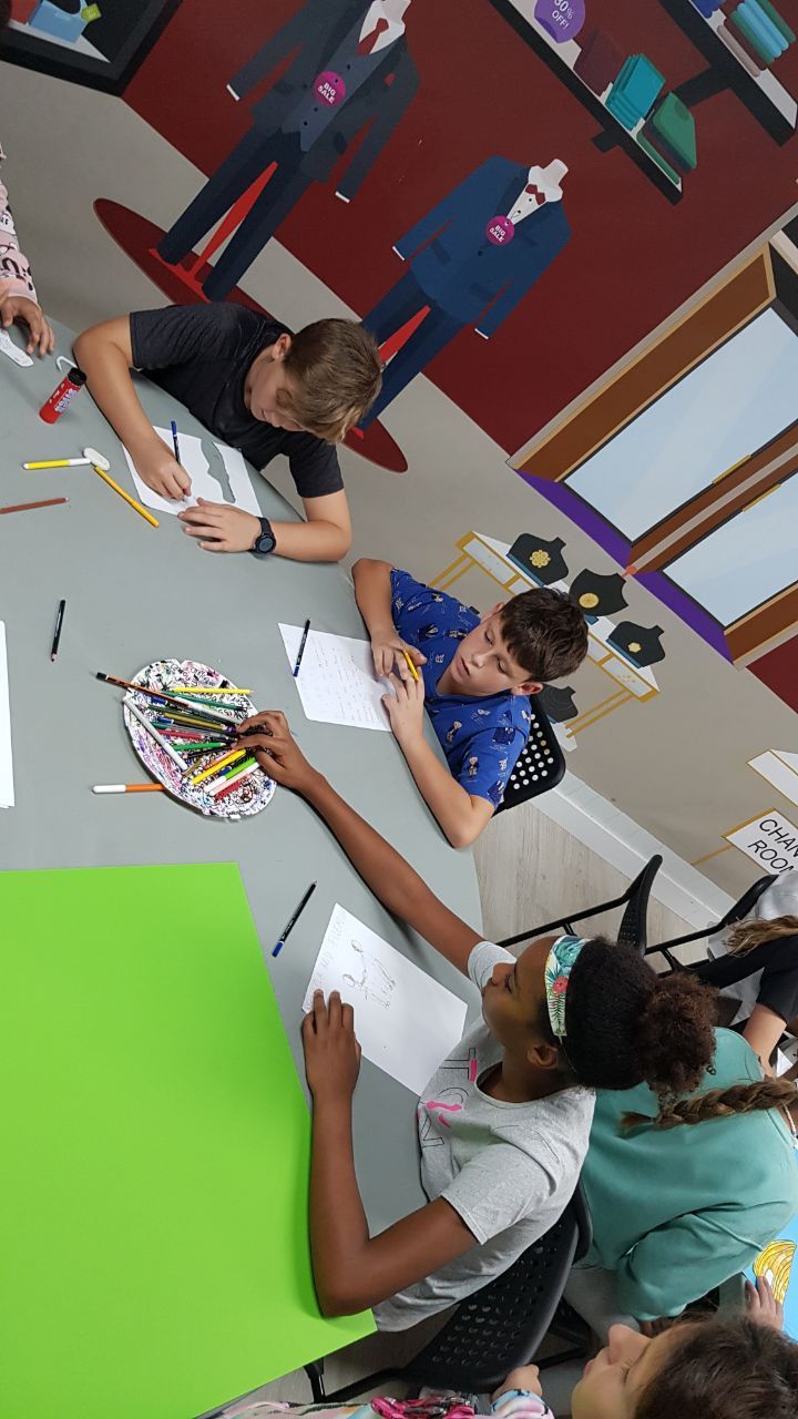 Después de esto, los niños vuelven a las instalaciones del hotel en donde realizan la actividad "Treasure Map". En este espacio los alumnos practican la descripción de lugares y como dar indicaciones en inglés, mientras usan todo su talento para crear un mapa del tesoro.