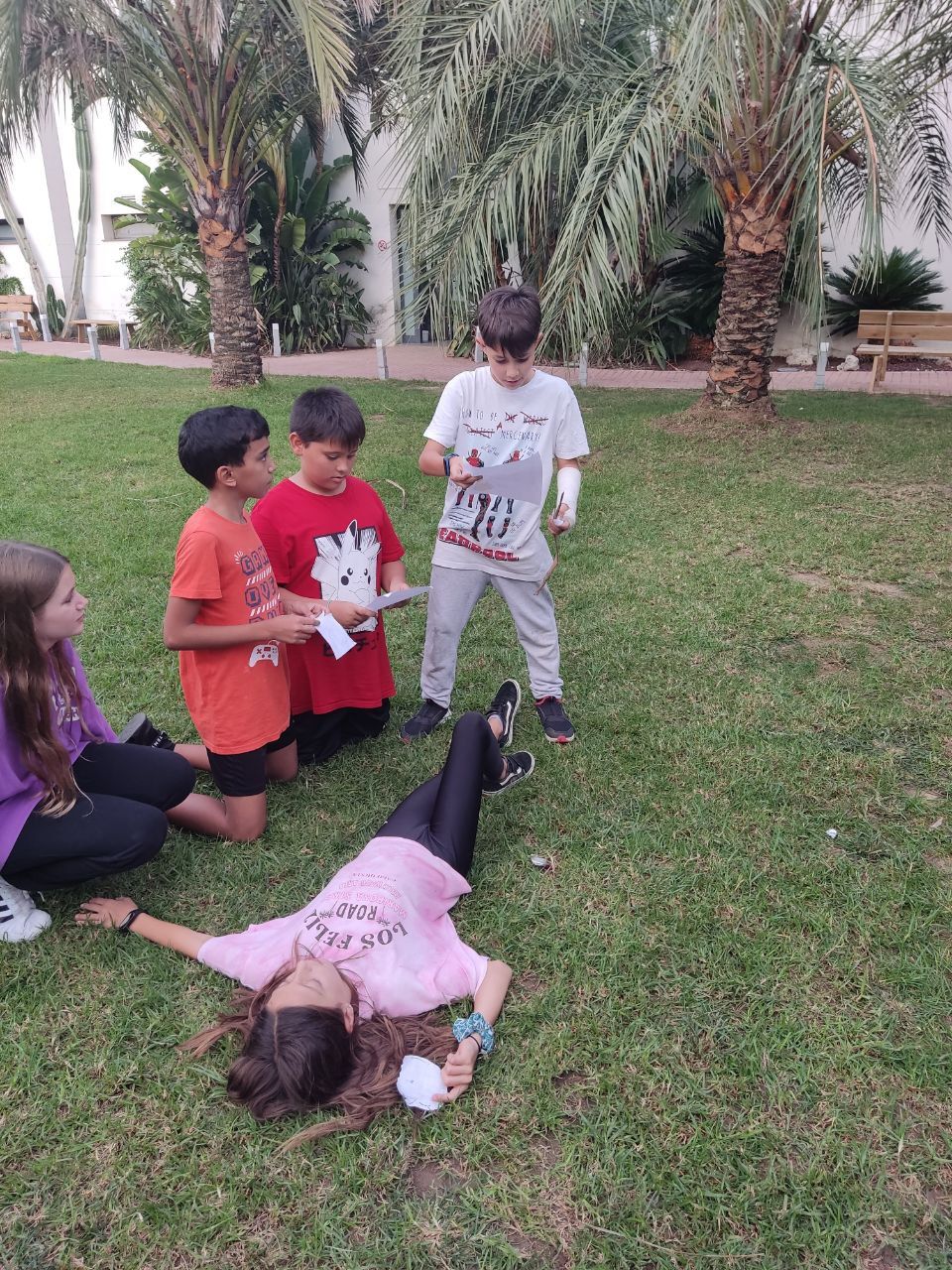 Después de la cena, los alumnos han desarrollado la actividad "Gotham Asylum". Los profesores de la inmersión disfrazados como personajes de "Gotham City" se distribuyen en diferentes zonas del hotel. Los niños deben encontrarles y después de una conversación en inglés, descubrir que enfermedad mental tiene el personaje. Es toda una aventura para los niños y a la vez una oportunidad para practicar su comunicación oral en inglés.
