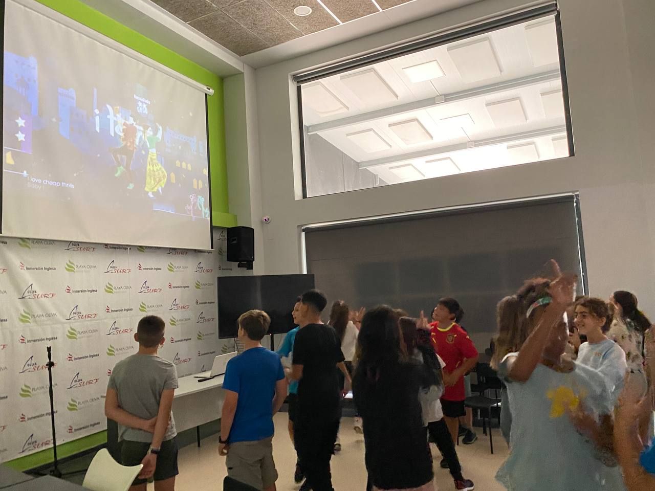 Y luego del tiempo de cena y descanso personal, llega la actividad final de la semana de inmersión lingüística en el Apartotel Oliva Surf: "The Party". Es un tiempo inolvidable para los niños en donde lo pasan de maravilla. Se les enseña el vídeo "Lip Dub" terminado y se despiden de una semana repleta de diversión y aprendizaje.