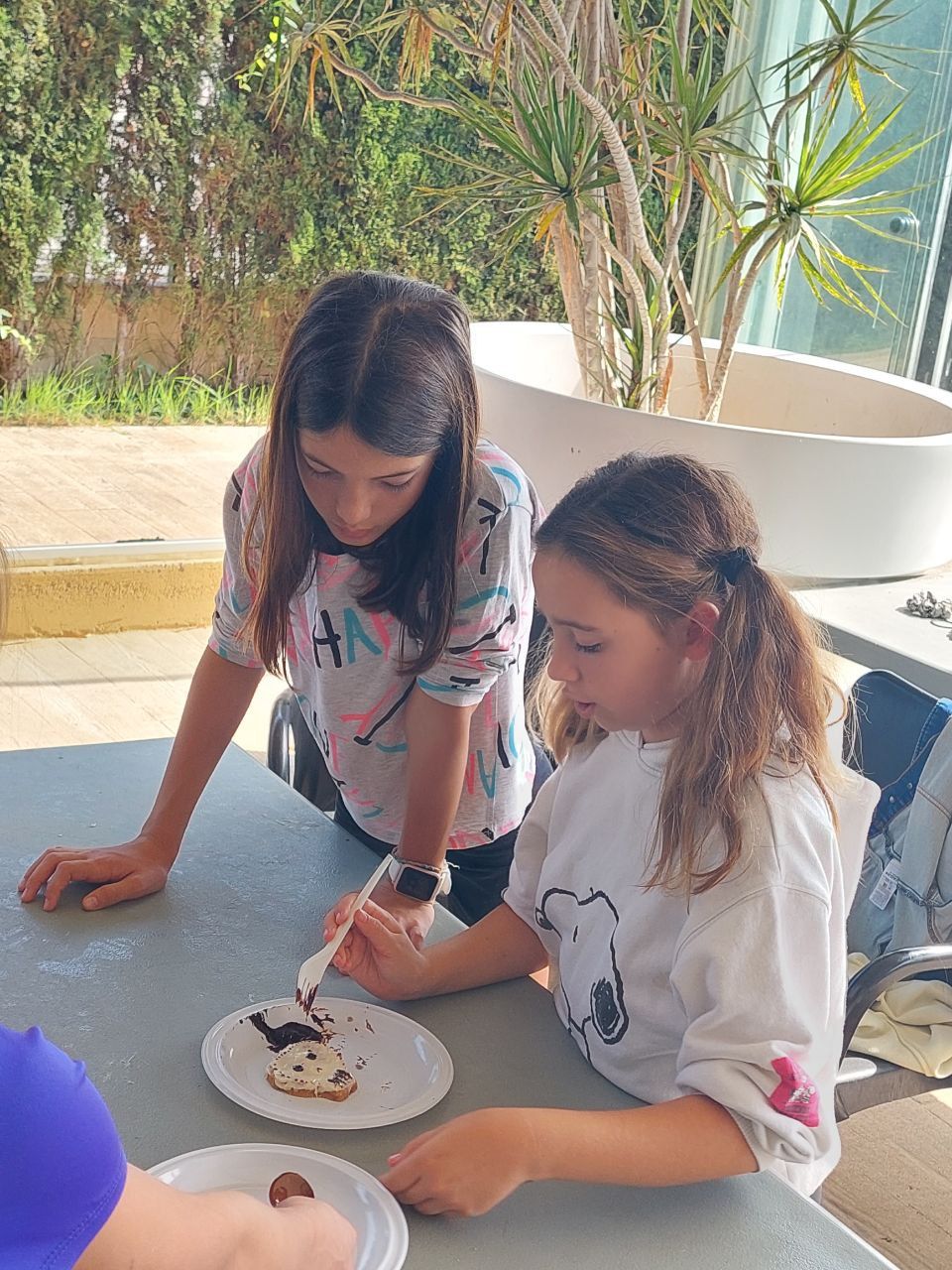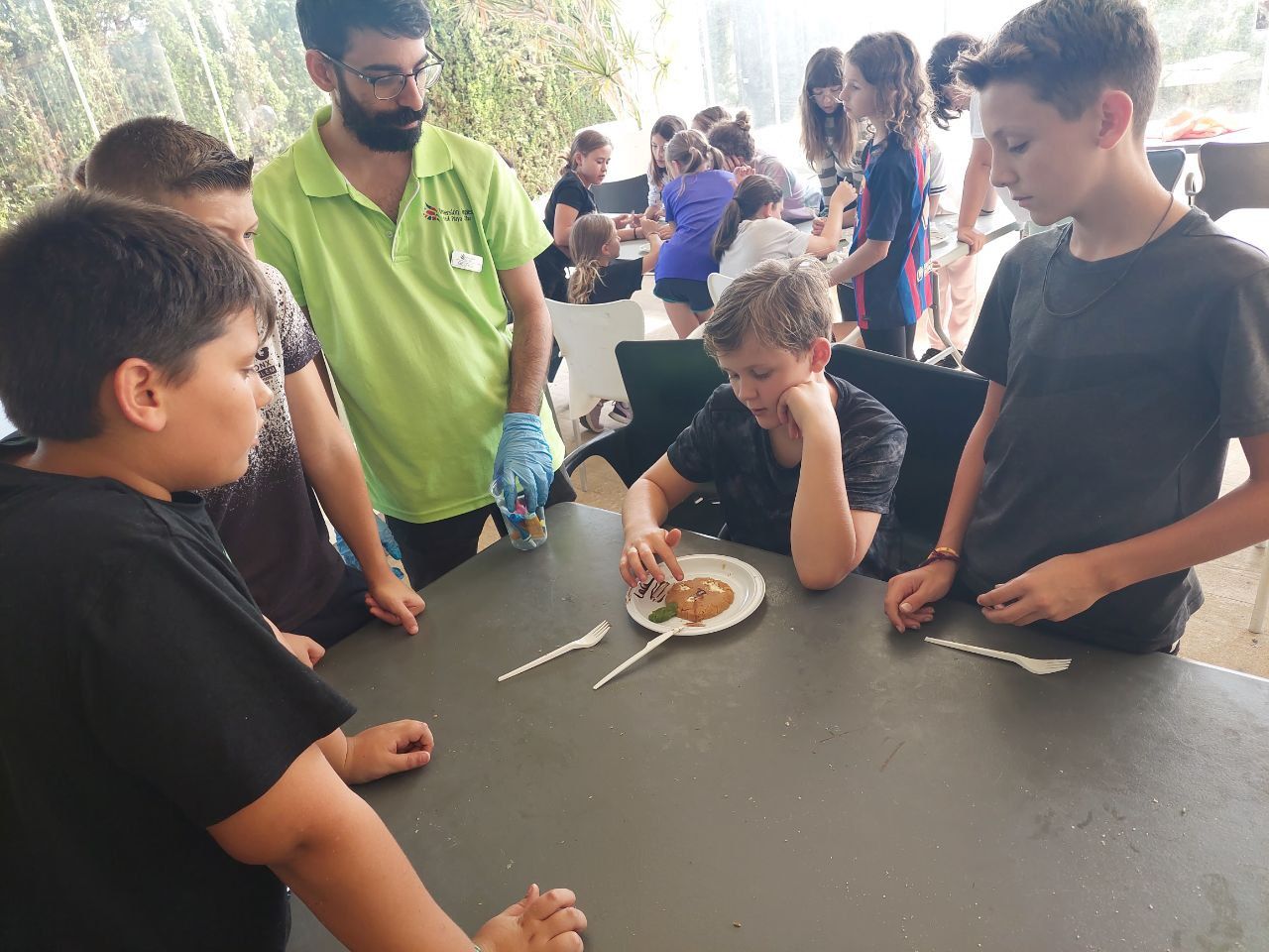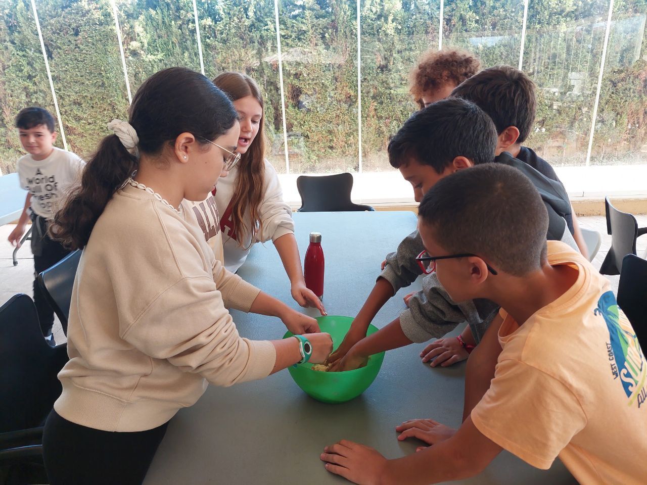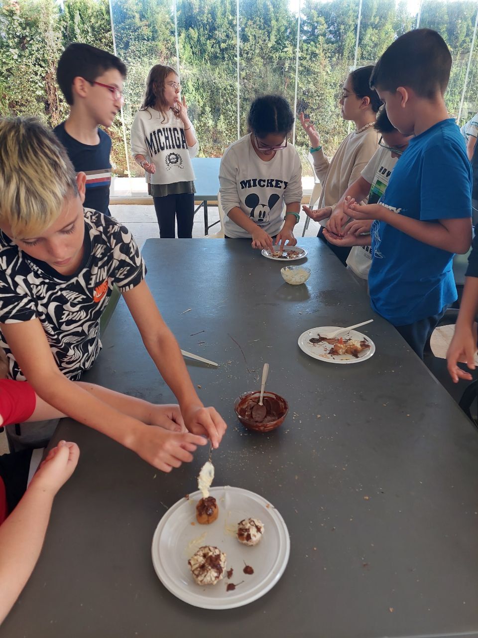 Después del "snack de la mañana, los niños han podido la oportunidad de demostrar sus capacidades culinarias en la actividad "cooking workshop". A partir de ingredientes básicos y siguiendo instrucciones en inglés, los alumnos por grupos, deben crear sus propios postres. Ha sido un tiempo muy entretenido.