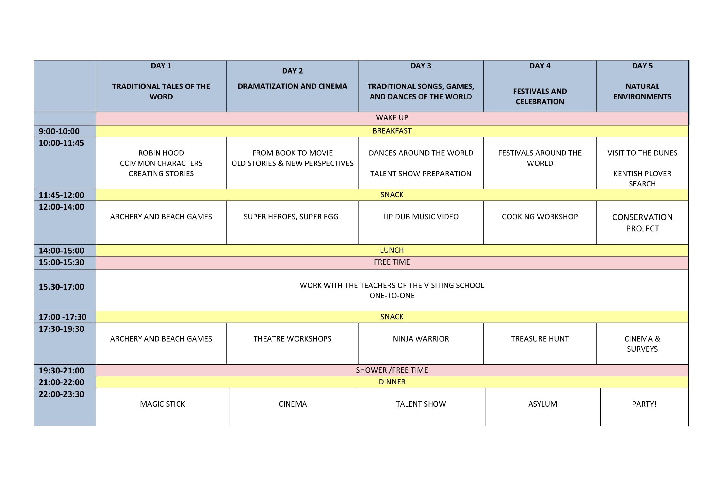 Este es el horario de actividades que seguiremos durante la semana y que marca la rutina de cada día: