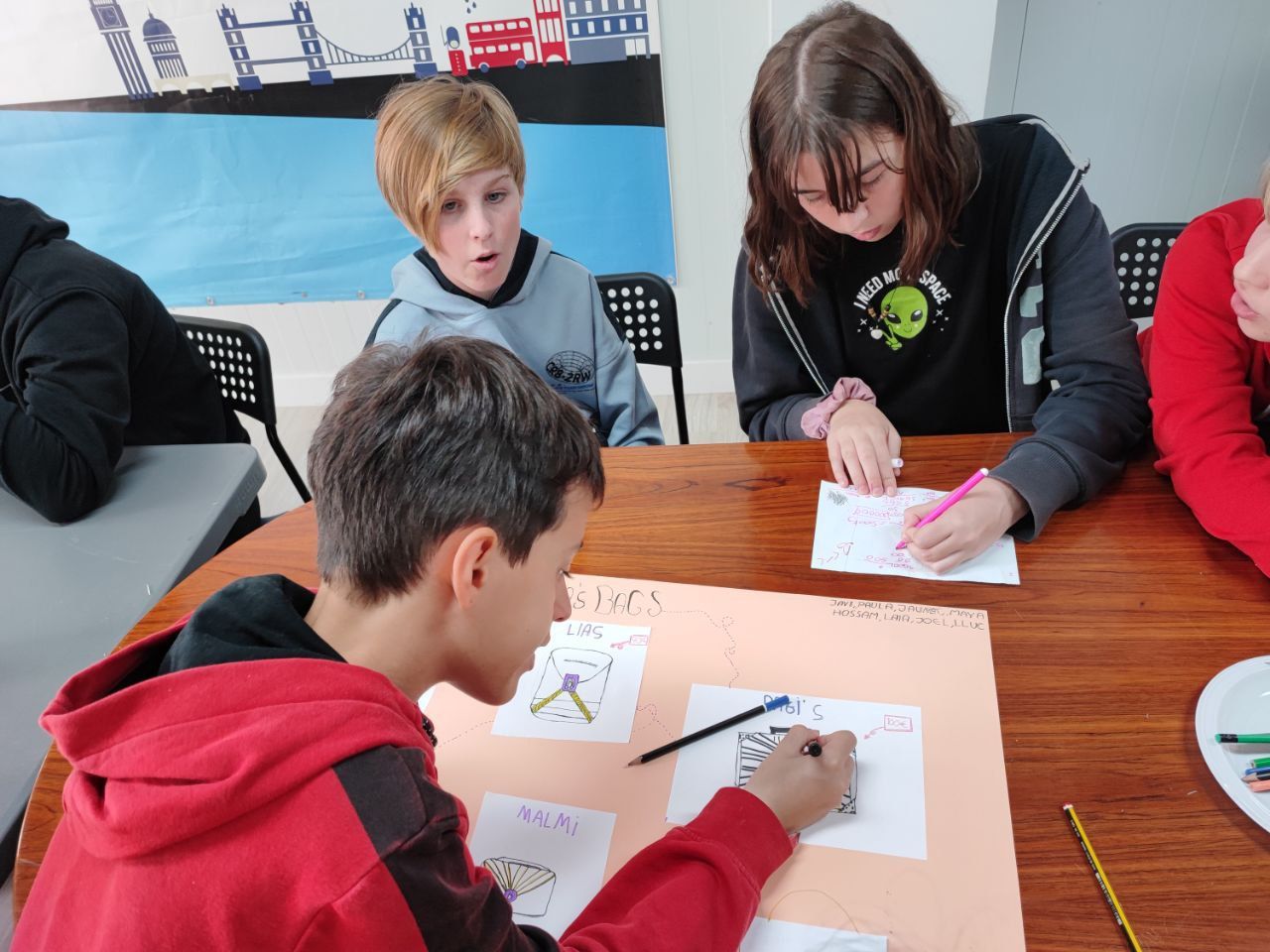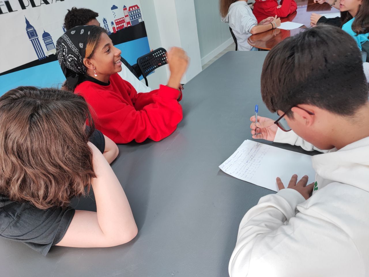 En la siguiente actividad, los alumnos pusieron a prueba su capacidad para resolver problemas, su comunicación escrita y oral en inglés y también su imaginación. "Super Egg"es una de las actividades favoritas de los alumnos de todas las edades, especialmente el momento decisivo del lanzamiento con paracaídas del súper-huevo desde el tejado.