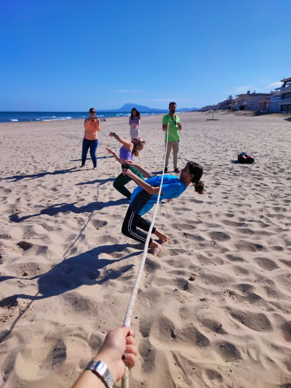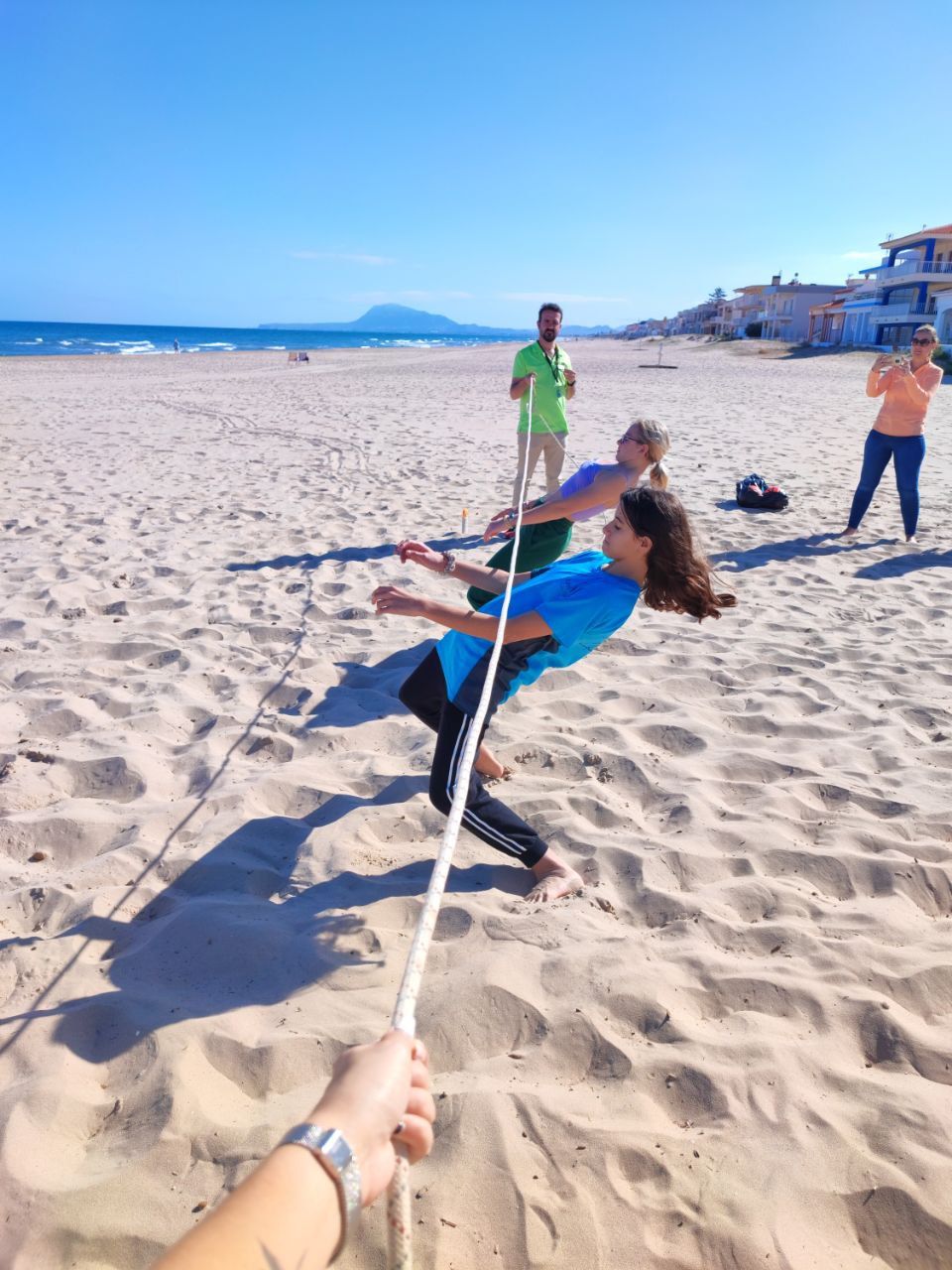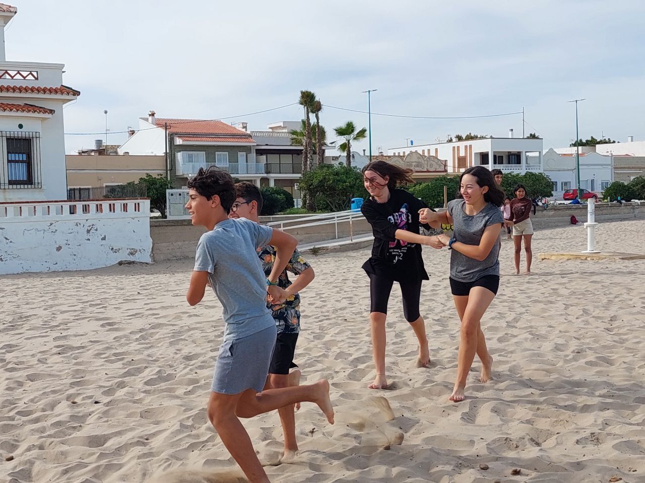 En la primera actividad de la mañana, los jóvenes salieron a la playa en la búsqueda del tesoro: "Treasure Hunt". Los alumnos organizados por grupos deben encontrar pistas distribuidas a los largo de una sección del paseo marítimo de Oliva. Además, se les ha hecho entrega de las camisetas y las gorras que se llevarán de recuerdo de la semana del programa de inmersión lingüística.