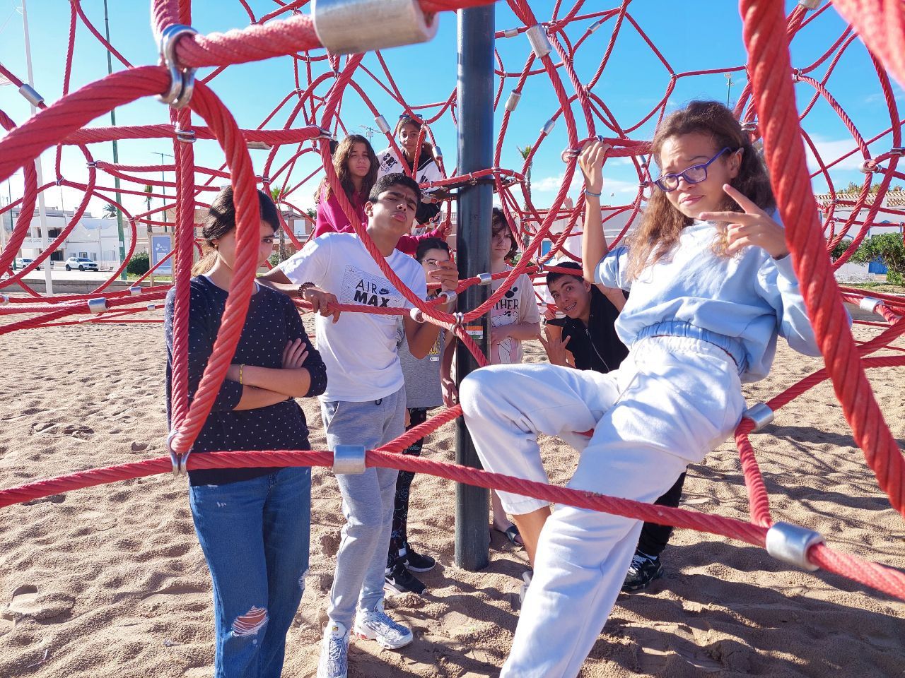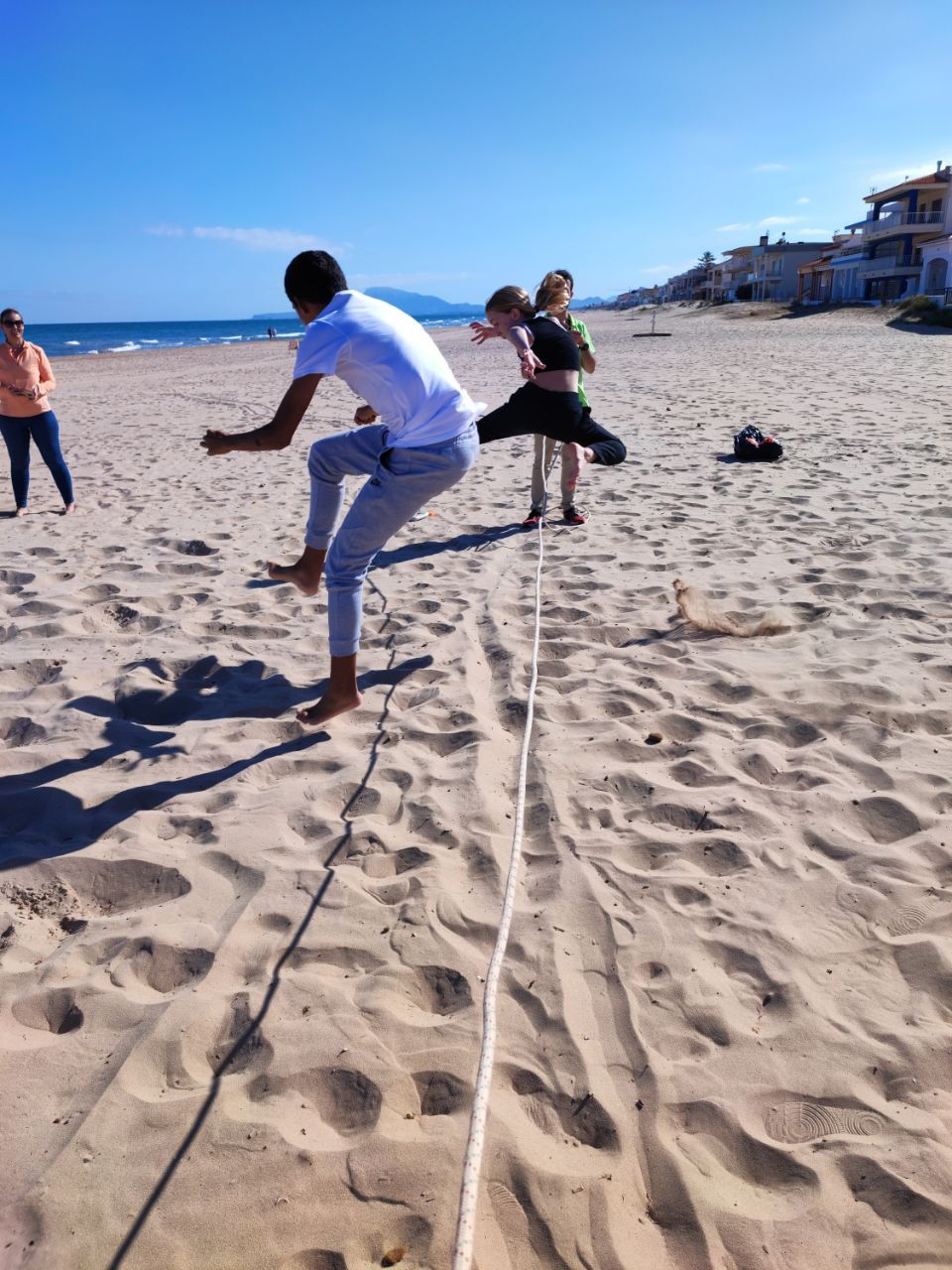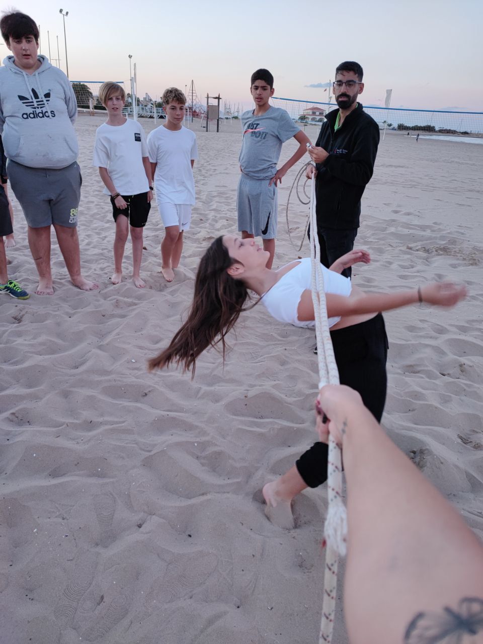 Después de la comida los jóvenes han tenido un tiempo de descanso y posteriormente han podido ir a la playa en donde han realizado la actividad "Ninja Warrior Training". En este tiempo, los alumnos han superado diferentes desafíos propuestos por los profesores de la inmersión quienes durante esta dinámica actúan como "senseis" de los estudiantes.