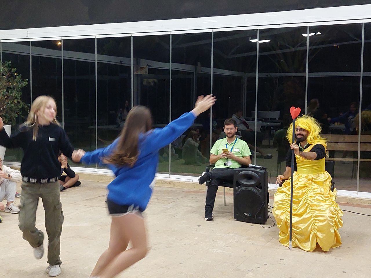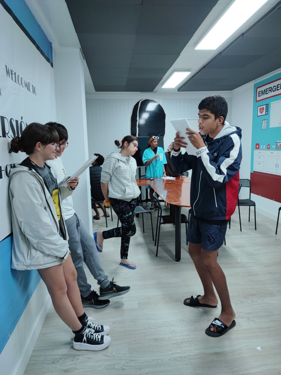 Después de la cena, los alumnos han desarrollado la actividad "Gotham Asylum". Los profesores de la inmersión disfrazados como personajes de "Gotham City" se distribuyen en diferentes zonas del hotel. Los niños deben encontrarles y después de una conversación en inglés, descubrir que enfermedad mental tiene el personaje. Es toda una aventura para los niños y a la vez una oportunidad para practicar su comunicación oral en inglés.