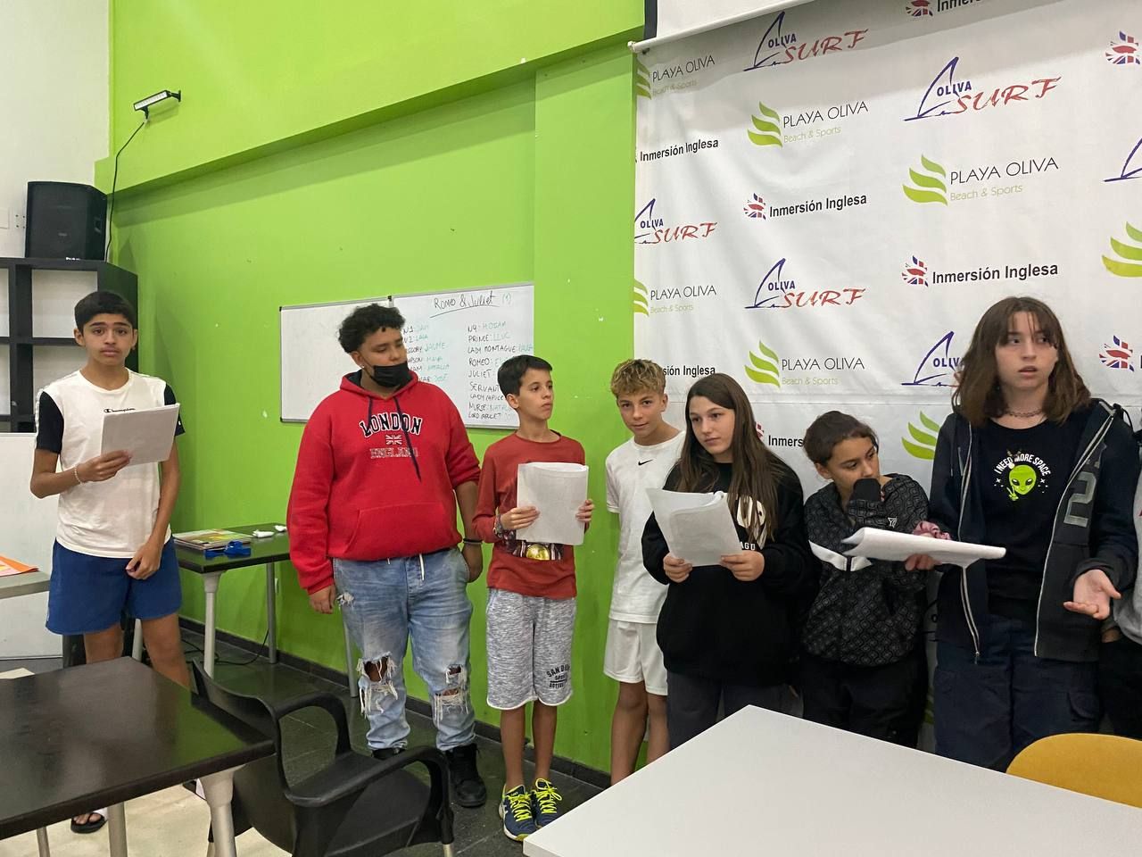 Y luego del tiempo de cena y descanso personal, llega la actividad final de la semana de inmersión lingüística en el Apartotel Oliva Surf: "The Party". Es un tiempo inolvidable para los niños en donde lo pasan de maravilla. Se les enseña el vídeo "Lip Dub" terminado y se despiden de una semana repleta de diversión y aprendizaje.