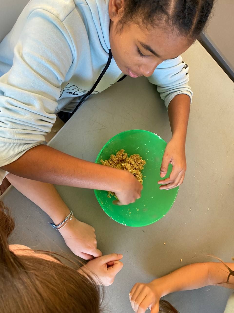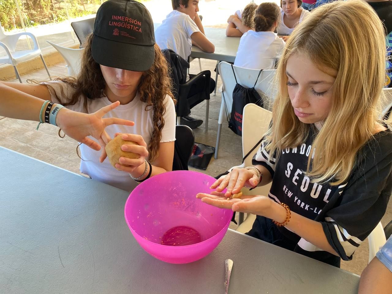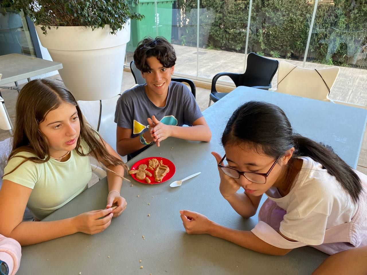 Después de regresar de la busqueda del tesoro, los alumnos han tenido la oportunidad de demostrar sus capacidades culinarias en la actividad "cooking workshop". A partir de ingredientes básicos y siguiendo instrucciones en inglés, los alumnos por grupos, deben crear sus propios postres. Ha sido un tiempo muy entretenido.