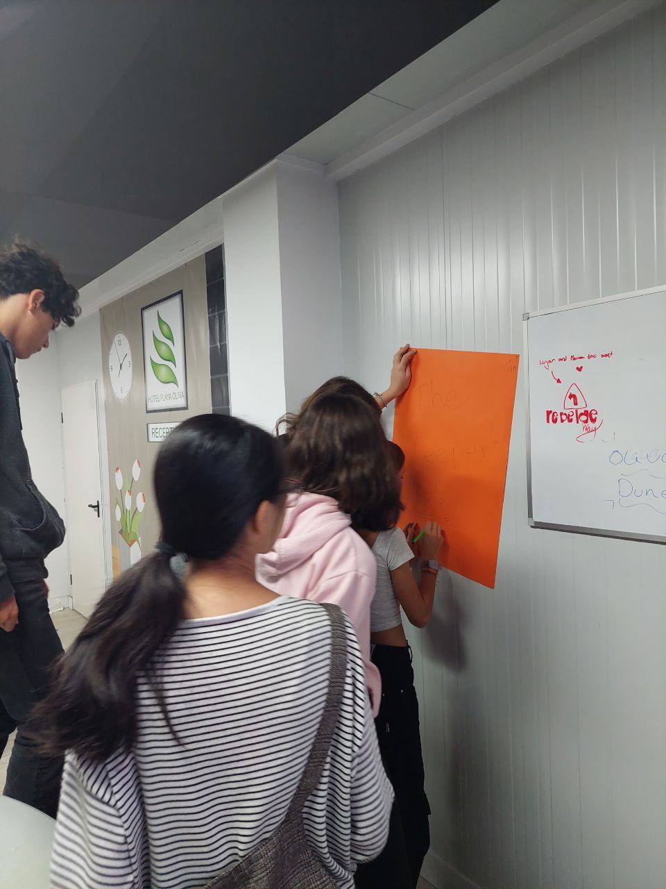 Posteriormente, los alumnos regresan a las instalaciones del hotel en donde realizan la actividad “Conservation Project”. Este es un espacio de reflexión acerca de la importancia de los entornos naturales y su conservación. Es un trabajo realizado en grupos, guiados por los profesores de la inmersión, quienes en todo el tiempo de la actividad les motivan y les ayudan en su realización.
