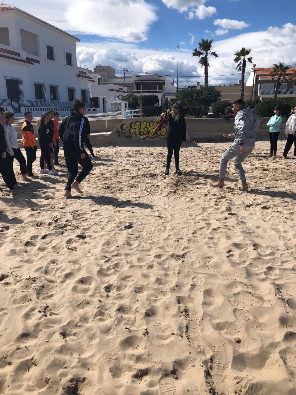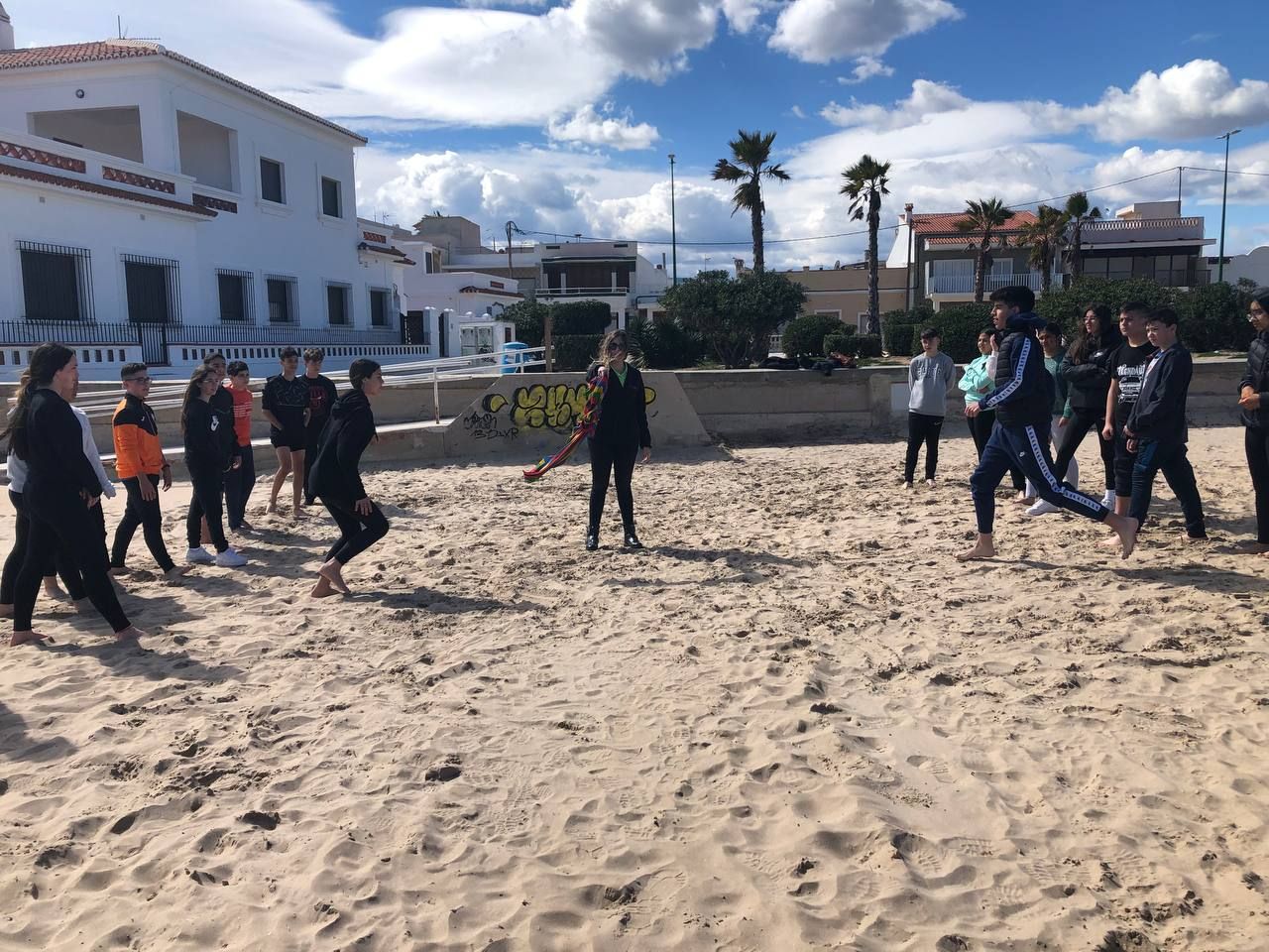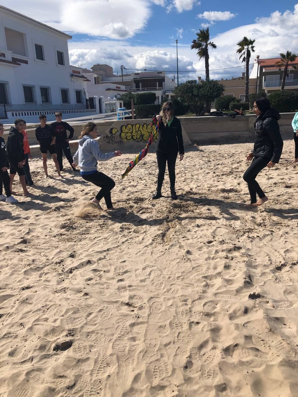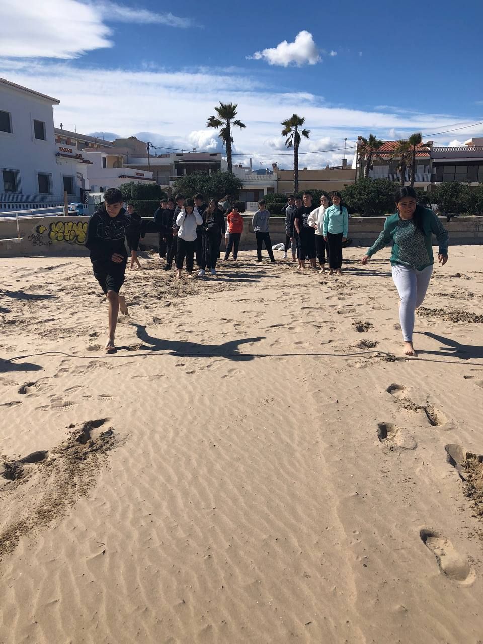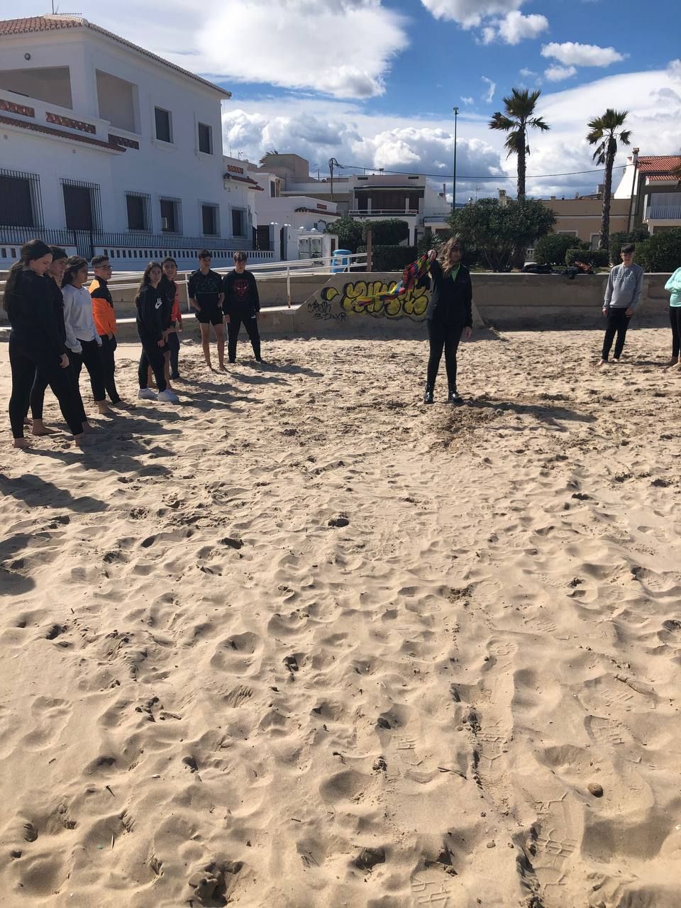 Posteriormente, los alumnos han ido a la playa, acompañados por los profesores de la inmersión a una búsqueda del tesoro o "Treasure Hunt". Los jóvenes deben encontrar pistas escondidas a lo largo del paseo marítimo de la playa en Oliva cercana al hotel y el primer grupo que las encuentre es el ganador.