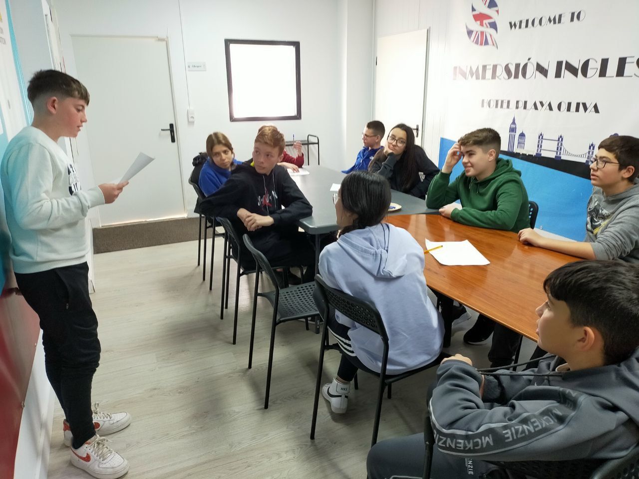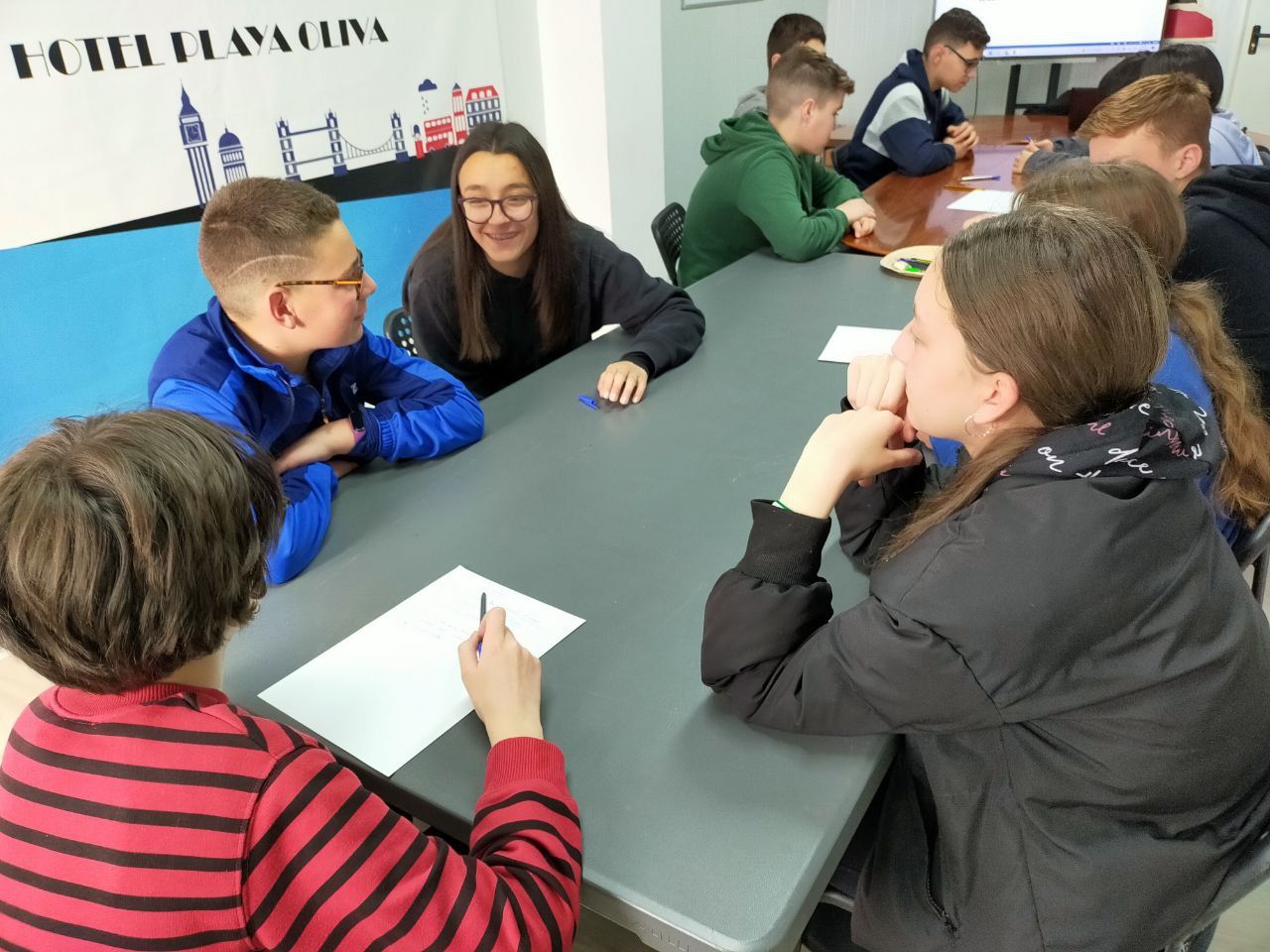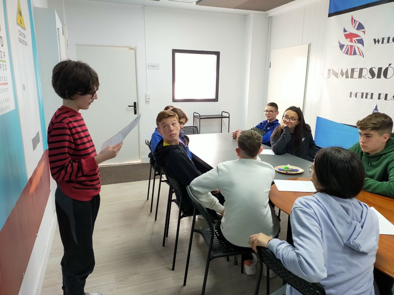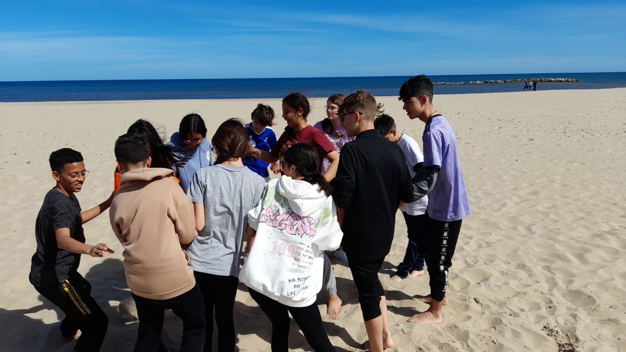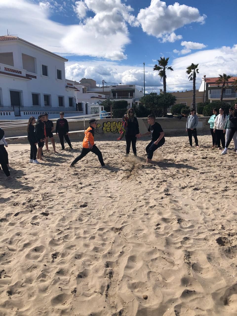 Posteriormente, los alumnos han ido a la playa, acompañados por los profesores de la inmersión a una búsqueda del tesoro o "Treasure Hunt". Los jóvenes deben encontrar pistas escondidas a lo largo del paseo marítimo de la playa en Oliva cercana al hotel y el primer grupo que las encuentre es el ganador.
