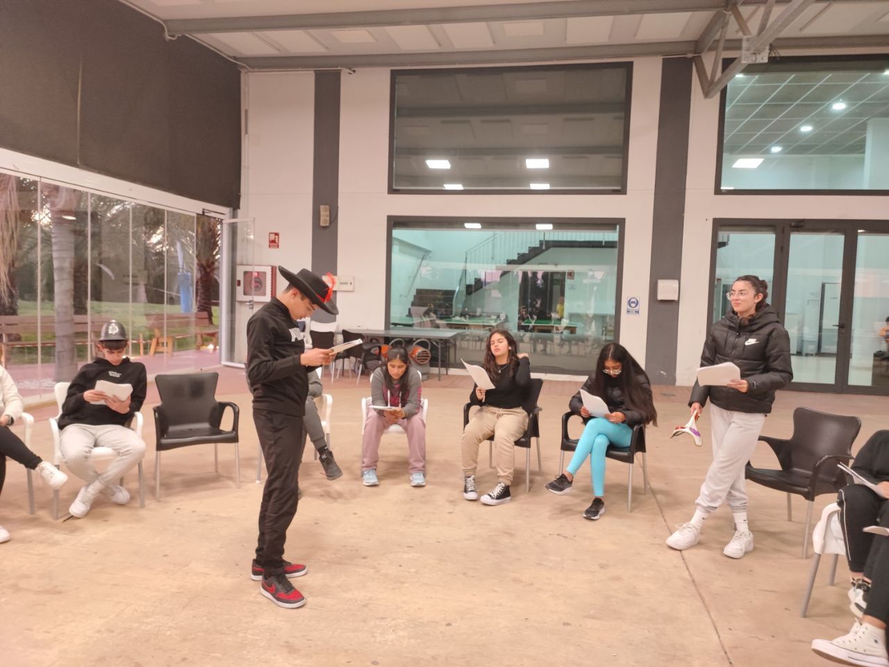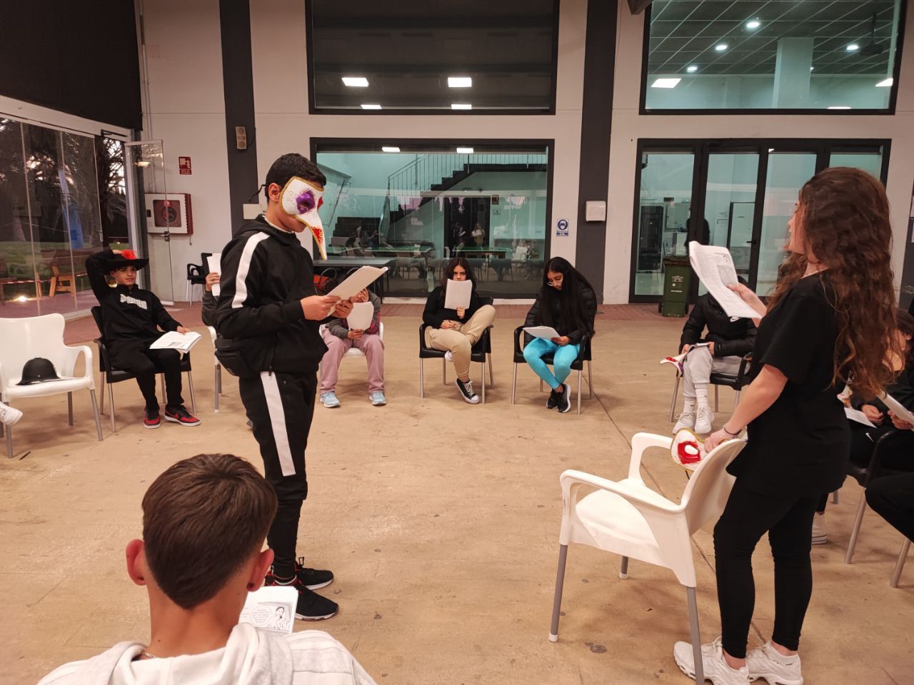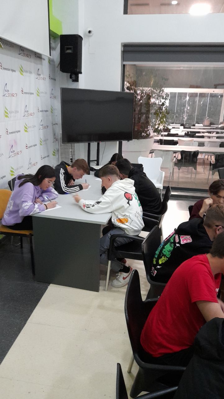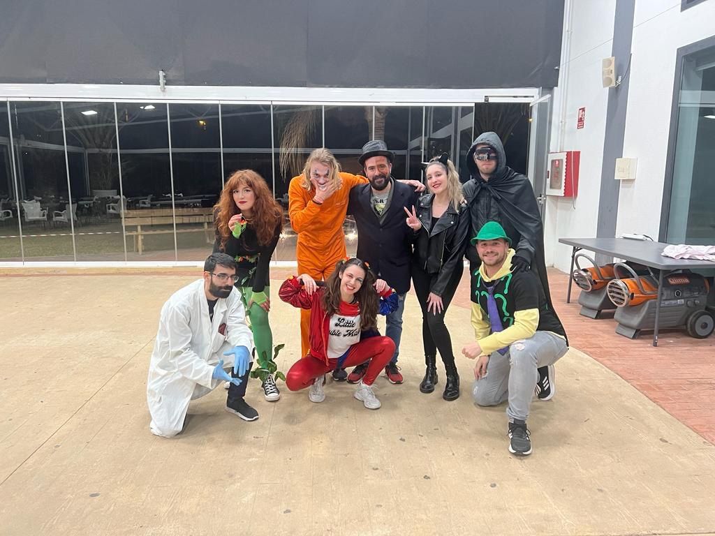 Después de la cena, los alumnos han desarrollado la actividad "Gotham Asylum". Los profesores de la inmersión disfrazados como personajes de "Gotham City" se distribuyen en diferentes zonas del hotel. Los jóvenes deben encontrarles y después de una conversación en inglés, descubrir que enfermedad mental tiene el personaje. Es toda una aventura para los alumnos y a la vez una oportunidad para practicar su comunicación oral en inglés.
