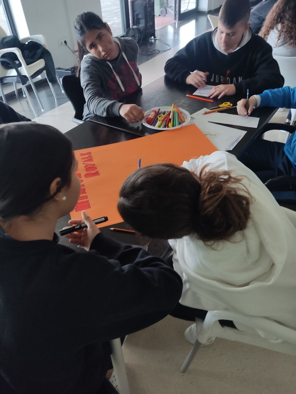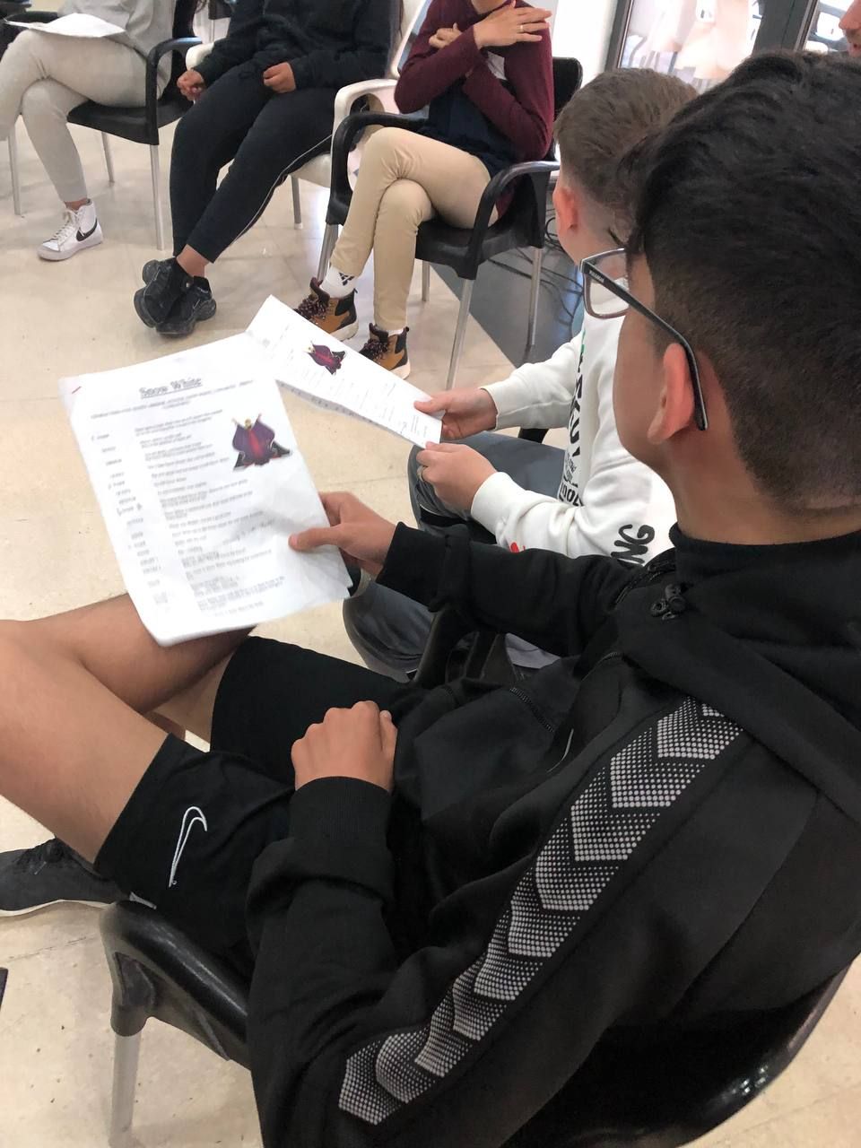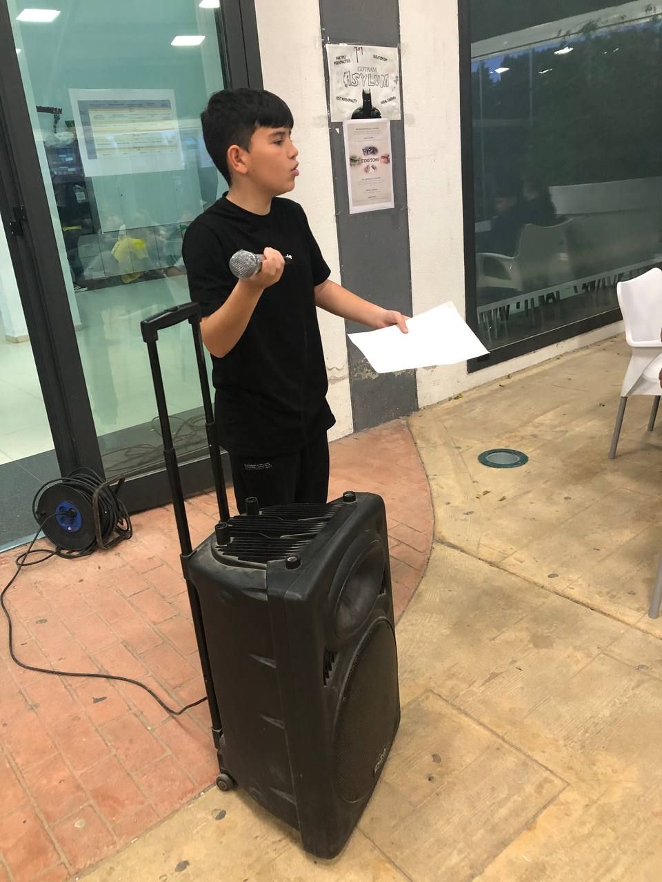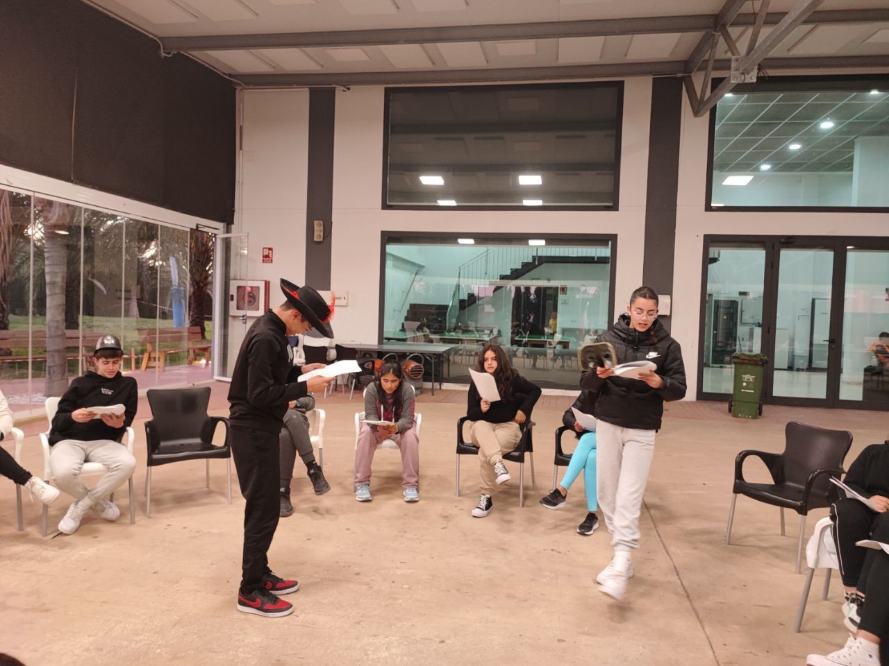 Después de la cena, los alumnos han desarrollado la actividad "Gotham Asylum". Los profesores de la inmersión disfrazados como personajes de "Gotham City" se distribuyen en diferentes zonas del hotel. Los jóvenes deben encontrarles y después de una conversación en inglés, descubrir que enfermedad mental tiene el personaje. Es toda una aventura para los alumnos y a la vez una oportunidad para practicar su comunicación oral en inglés.