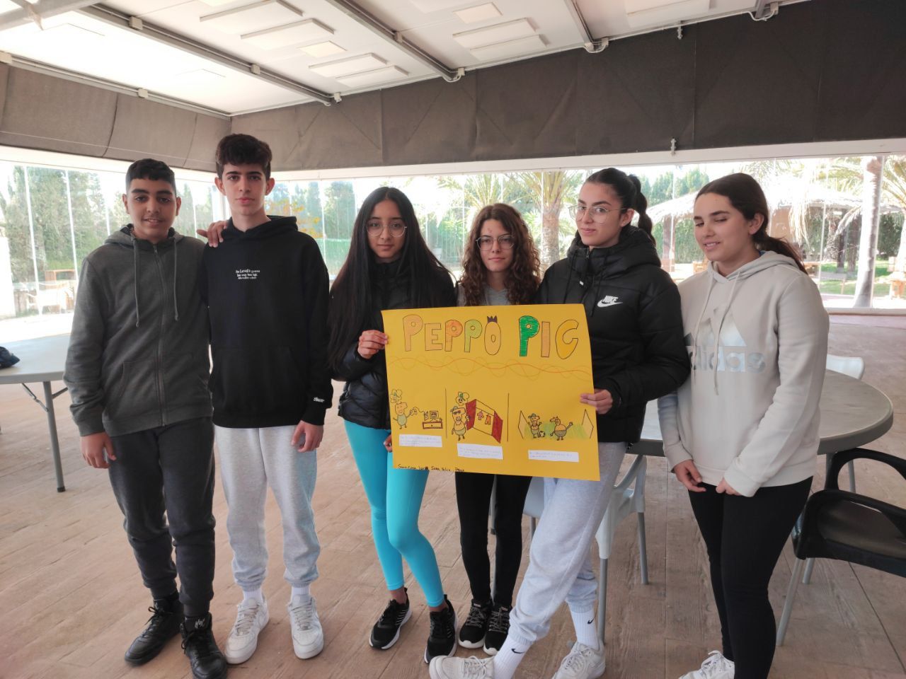 Además les hemos entregado camisetas y gorras como recuerdo de su paso por Oliva y de su participación en el programa de inmersión lingüística.