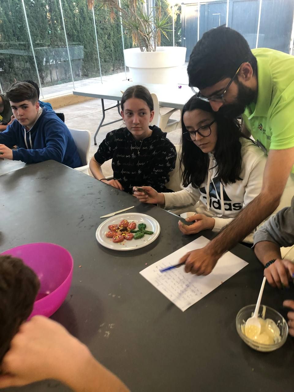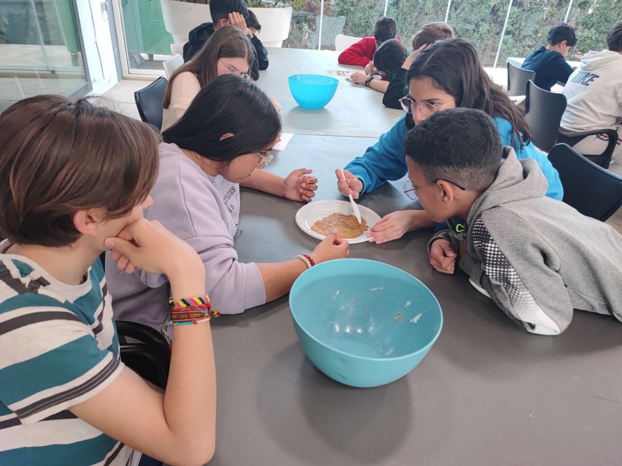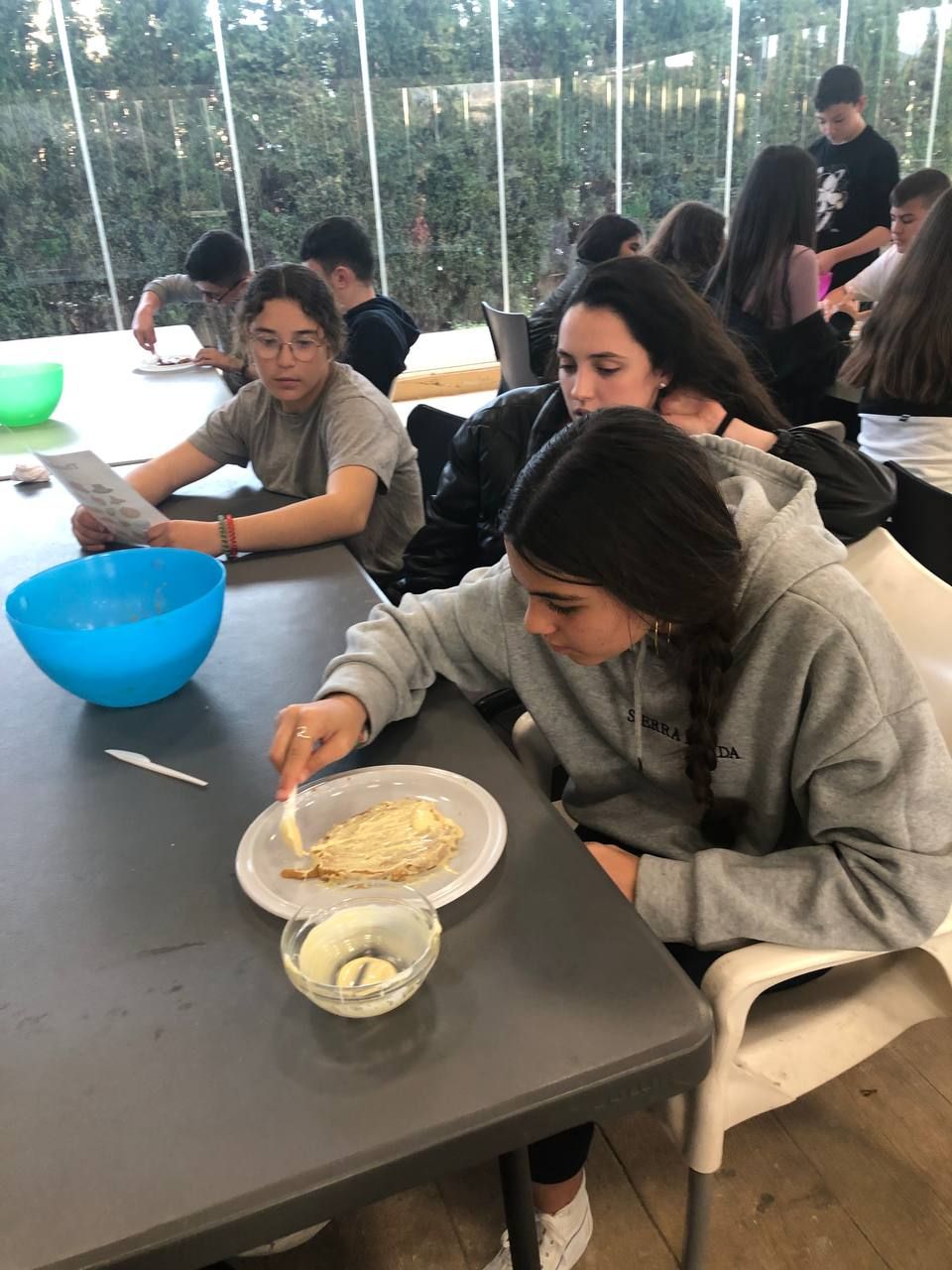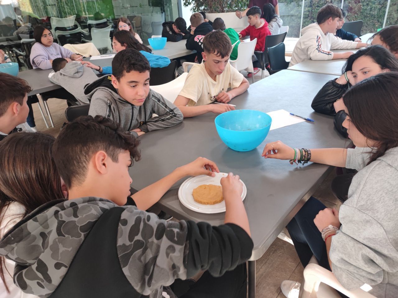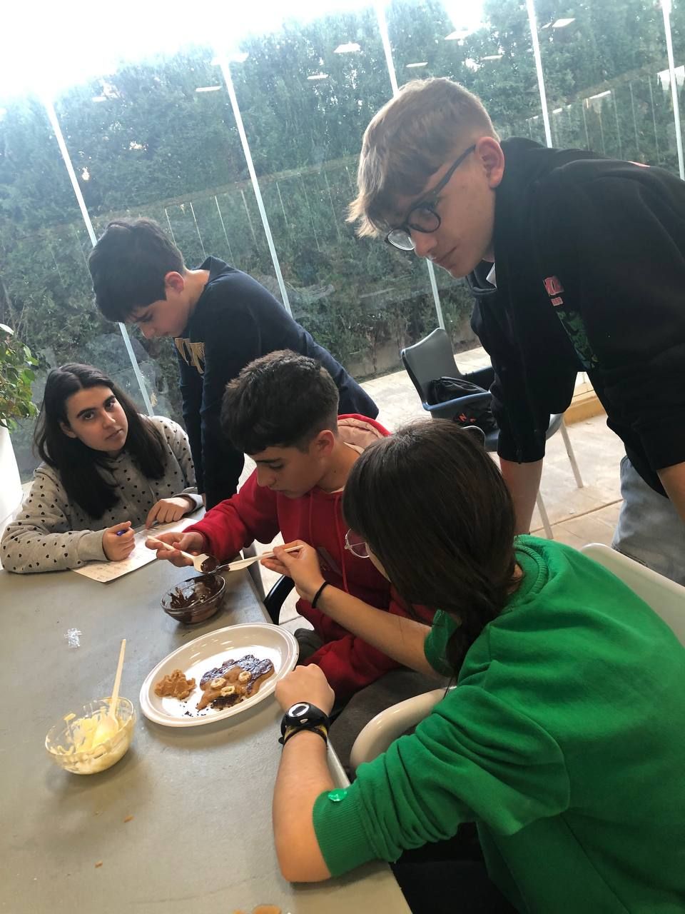 Después de la comida, los jóvenes han podido demostrar todas sus habilidades culinarias en el taller "cooking worshop". Partiendo de una receta base, los alumnos deben preparar y dar forma postres que ellos mismos podrán disfrutar al siguiente día. Lo han disfrutado mucho.