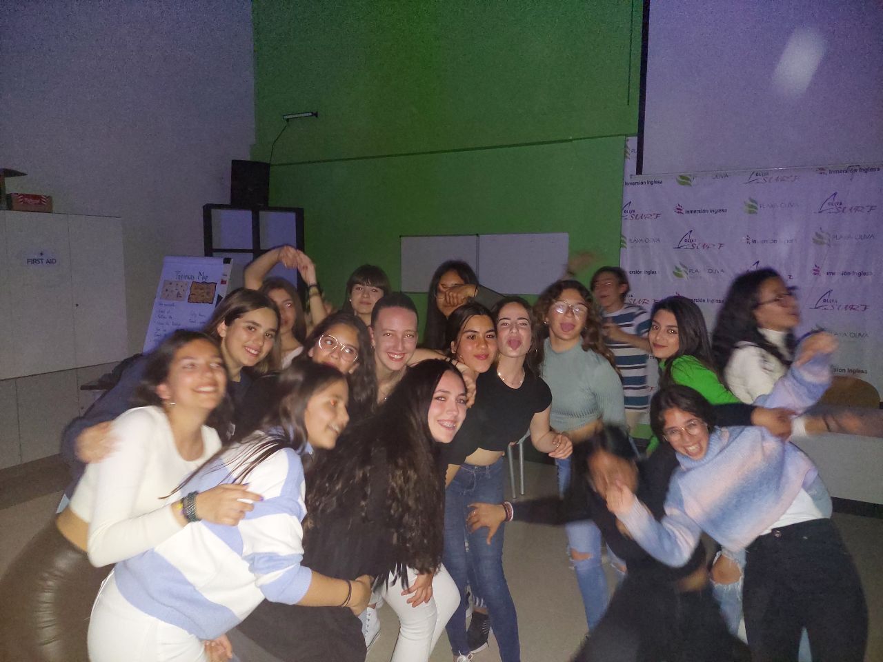 Y luego del tiempo de cena y descanso personal, llega la actividad final de la semana de inmersión lingüística en el Apartotel Oliva Surf: "The Party". Es un tiempo de celebración y despedida para los participantes del programa de inmersión lingüística. Se les enseña el vídeo "Lip Dub" terminado y se finaliza así una semana repleta de diversión y aprendizaje.