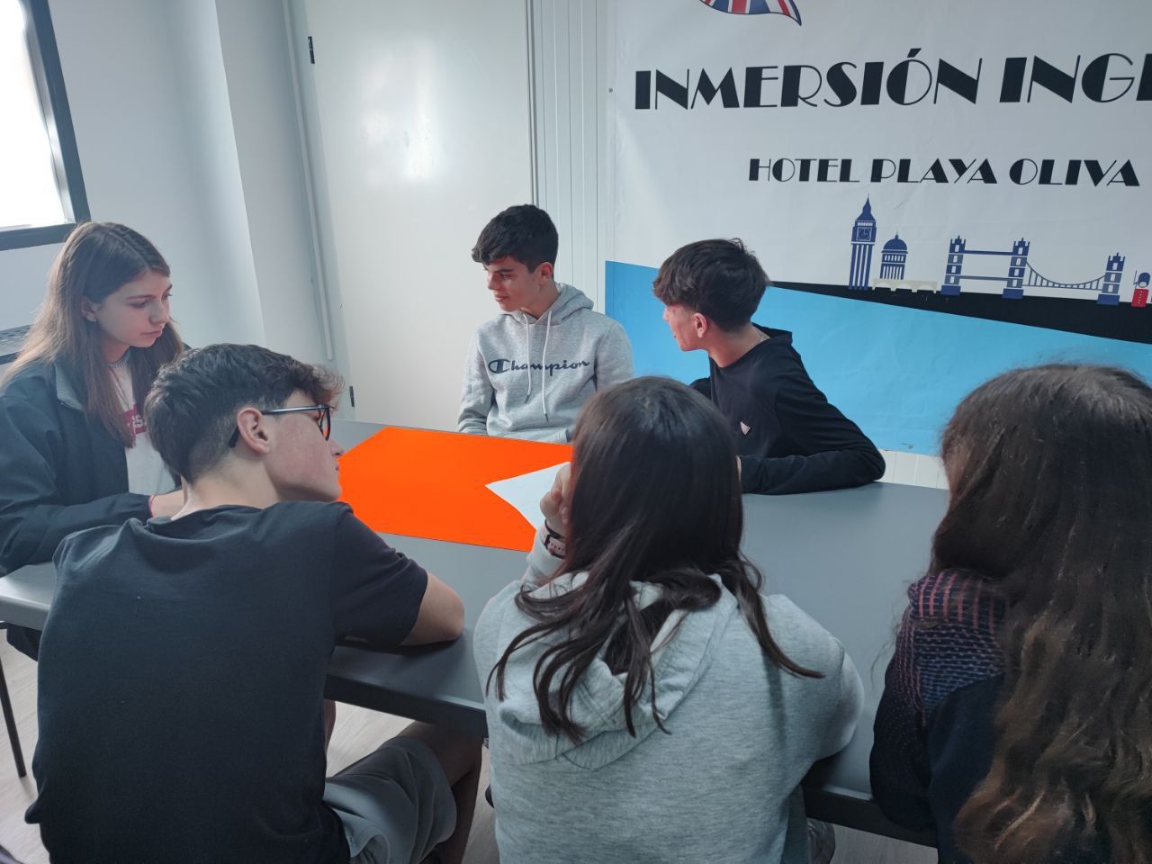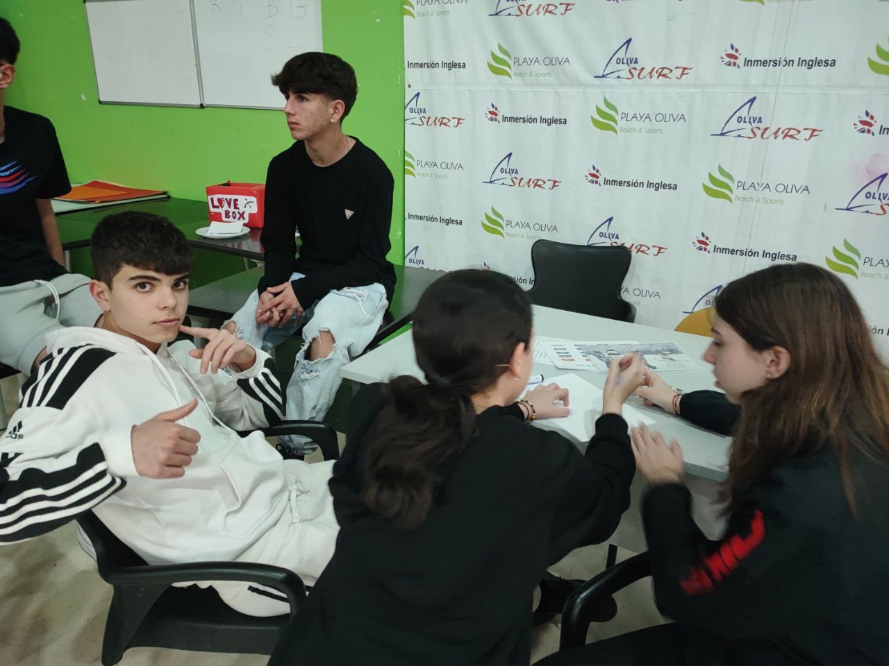 Posteriormente, los alumnos han ido a la playa, acompañados por los profesores de la inmersión a una búsqueda del tesoro o "Treasure Hunt". Los jóvenes deben encontrar pistas escondidas a lo largo del paseo marítimo de la playa en Oliva cercana al hotel y el primer grupo que las encuentre es el ganador.