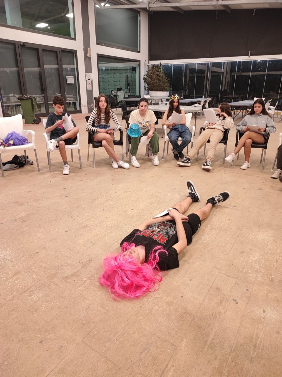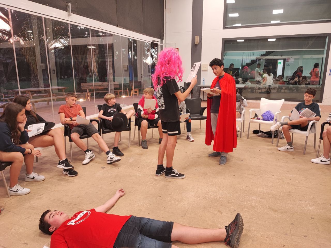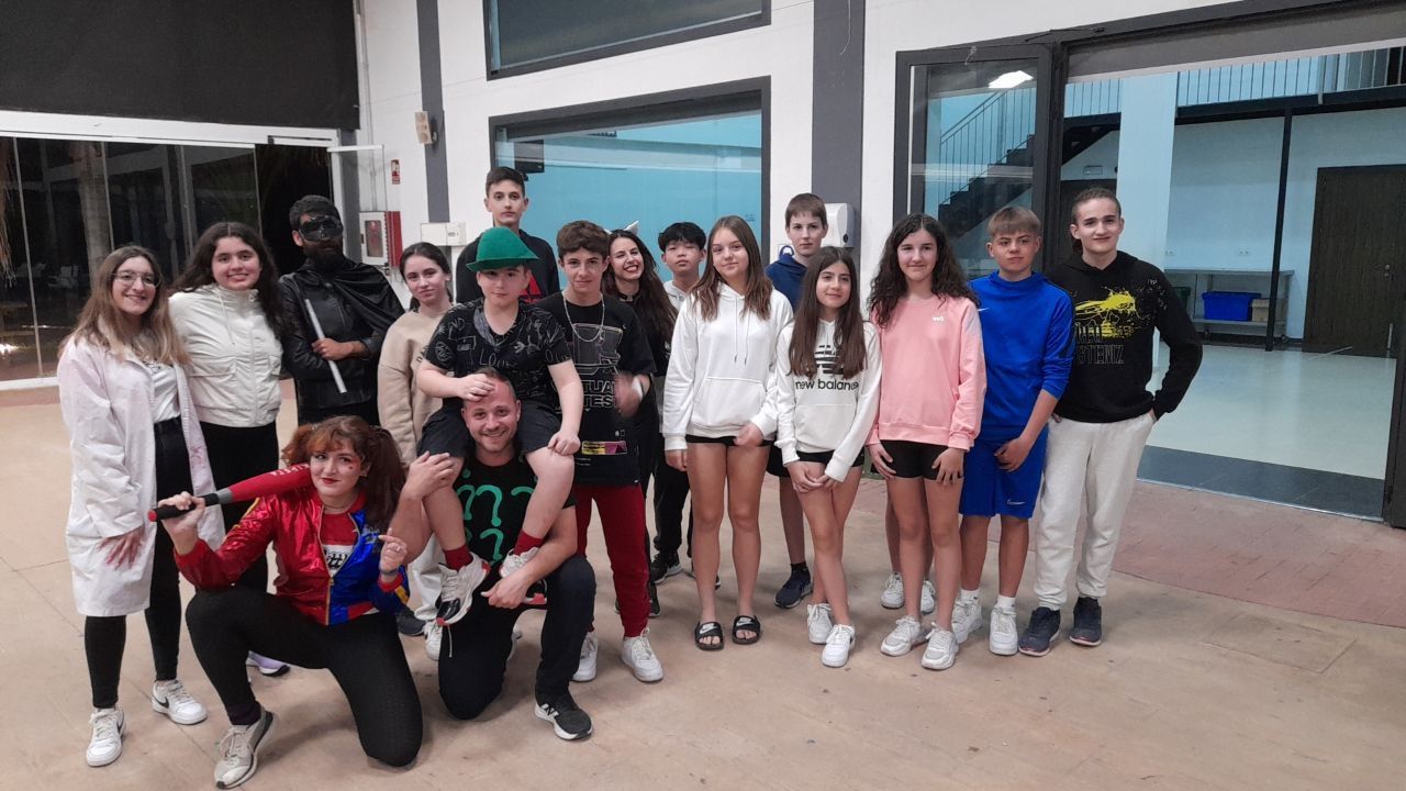 Después de la cena, los alumnos han desarrollado la actividad "Gotham Asylum". Los profesores de la inmersión disfrazados como personajes de "Gotham City" se distribuyen en diferentes zonas del hotel. Los jóvenes deben encontrarles y después de una conversación en inglés, descubrir que enfermedad mental tiene el personaje. Es toda una aventura para los alumnos y a la vez una oportunidad para practicar su comunicación oral en inglés.